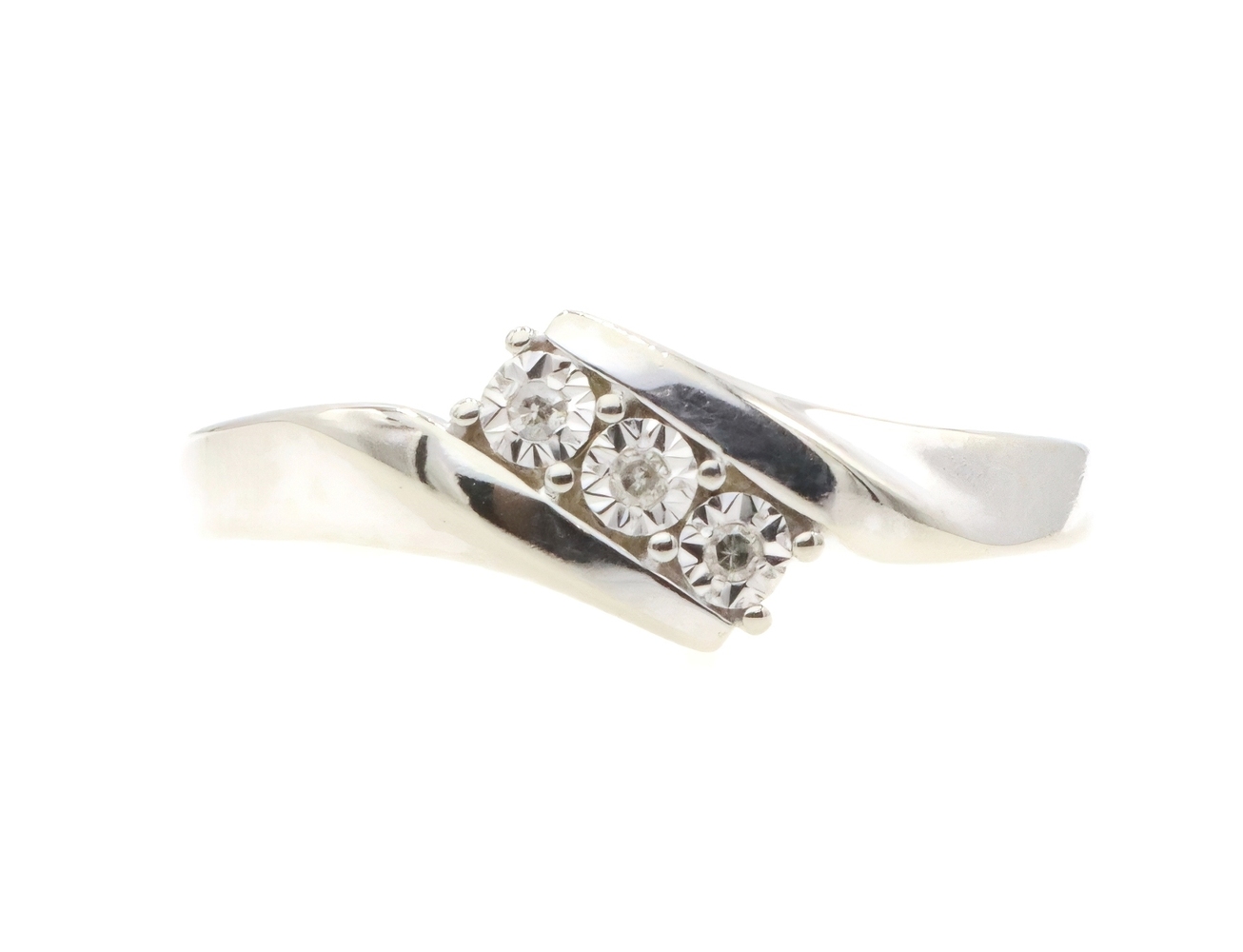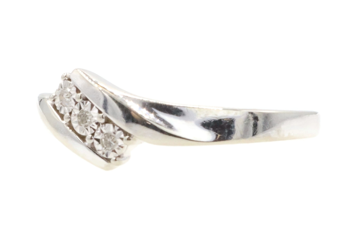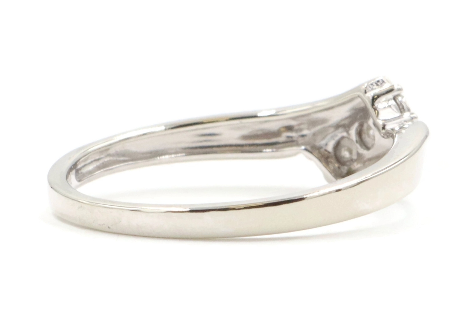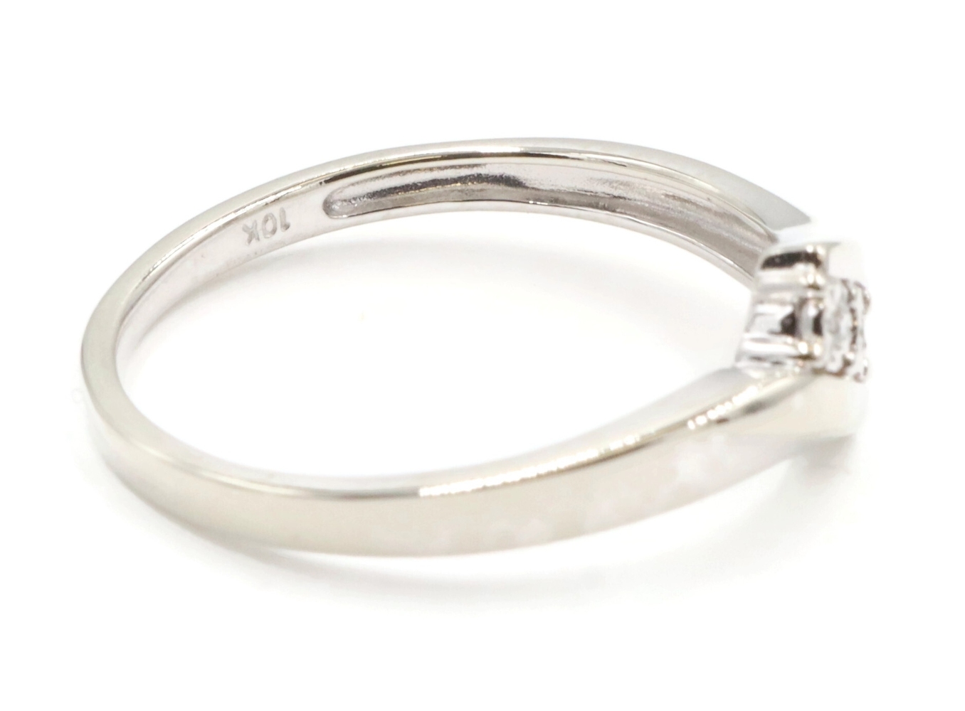 0.03 ctw Round Diamond 10KT White Gold Diagonal Women's Estate Ring 1.54g. This ring is a size 6.5.