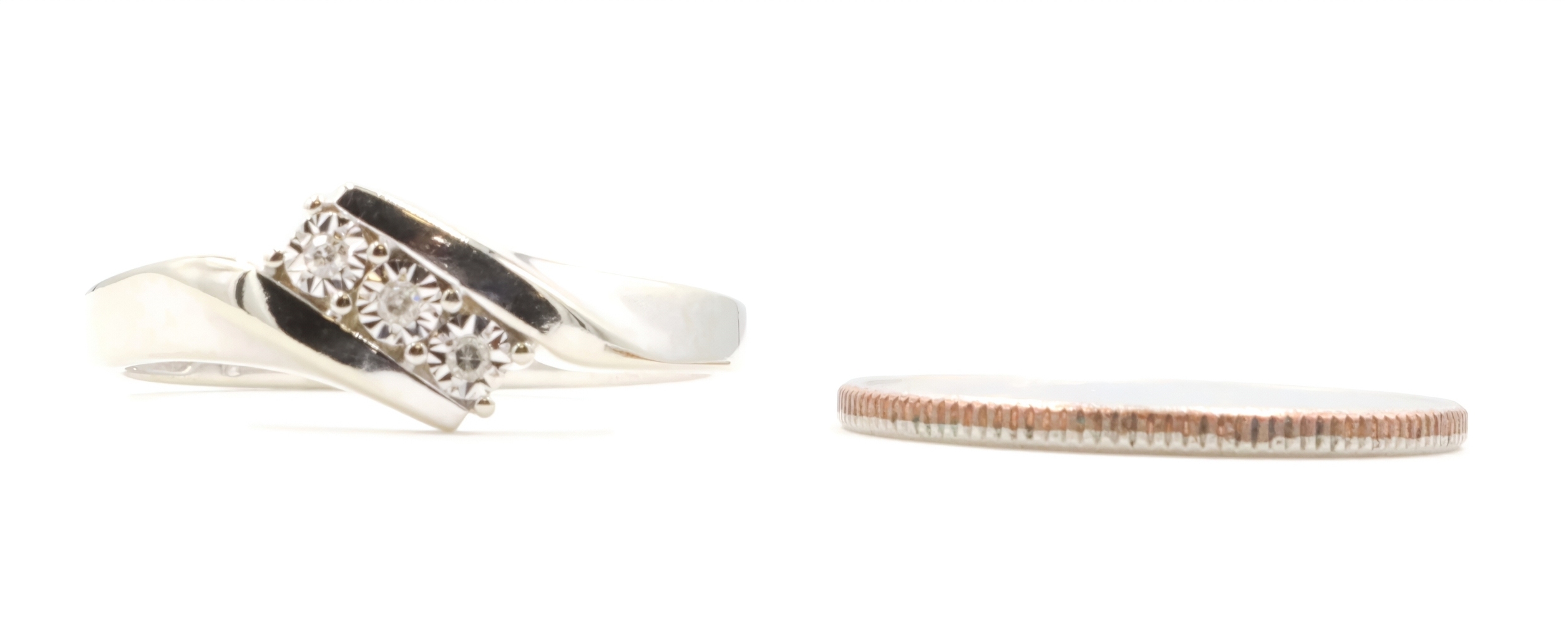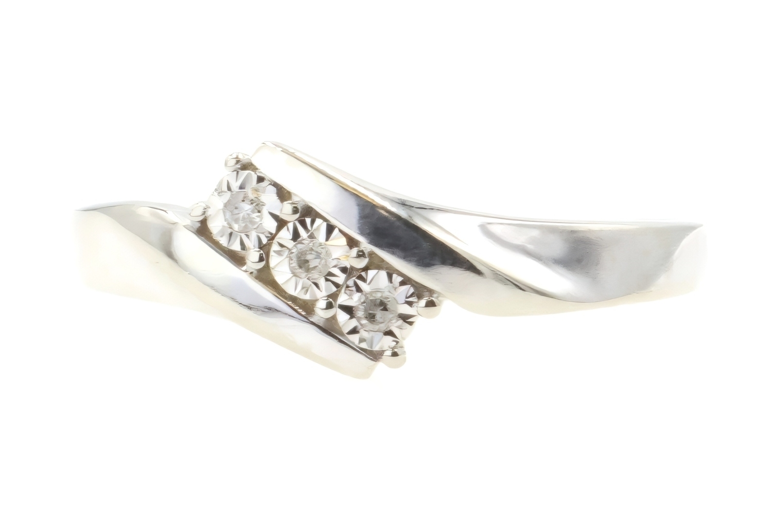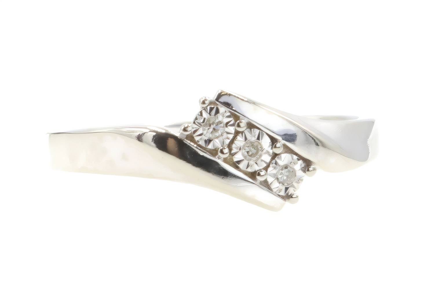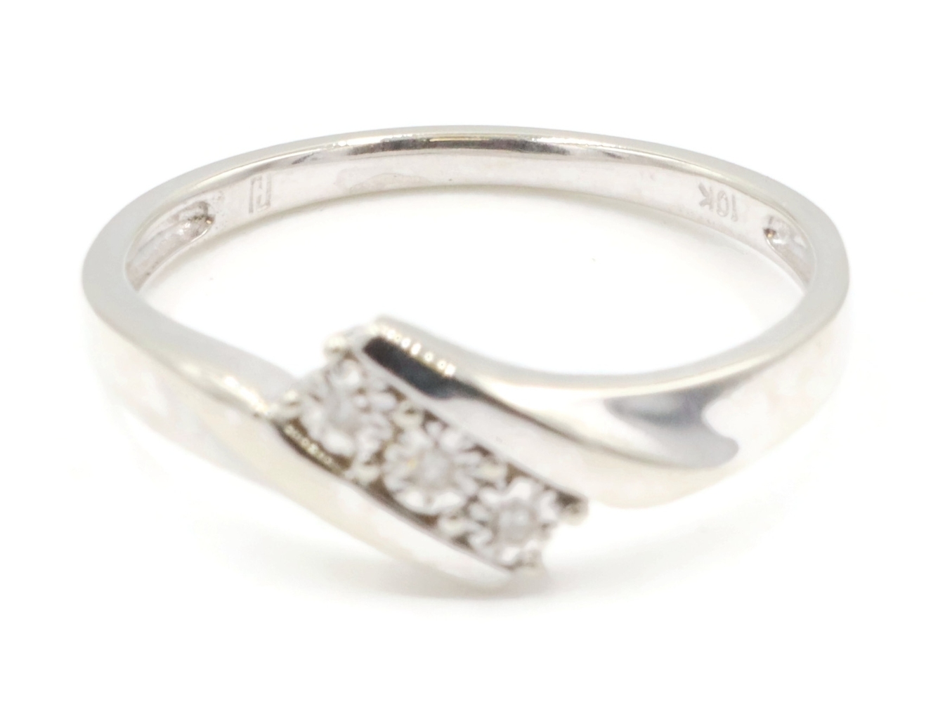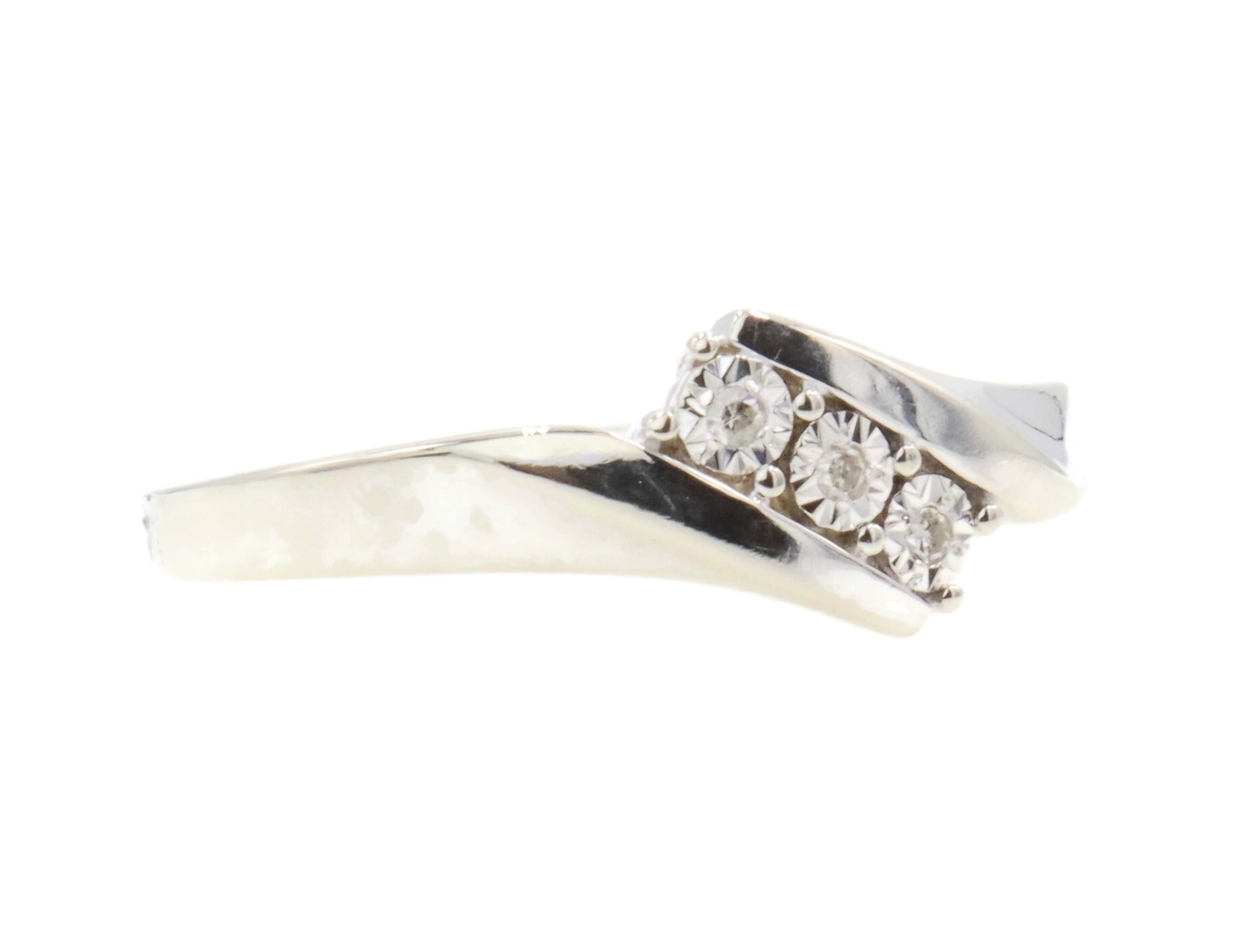 0.03 ctw Round Diamond 10KT White Gold Diagonal Women's Estate Ring 1.54g | USA Pawn