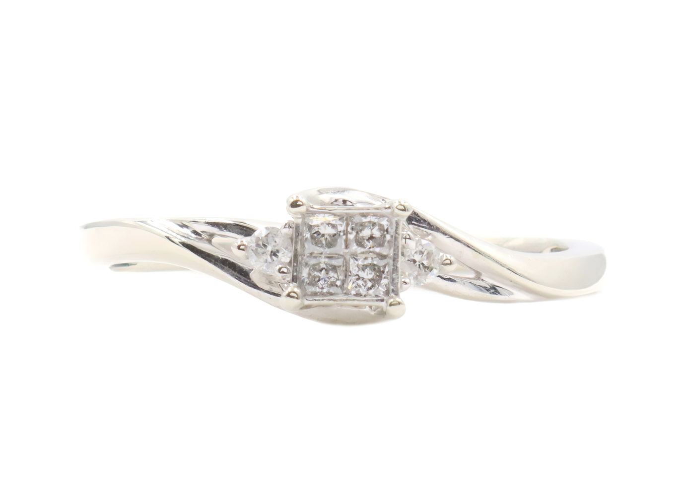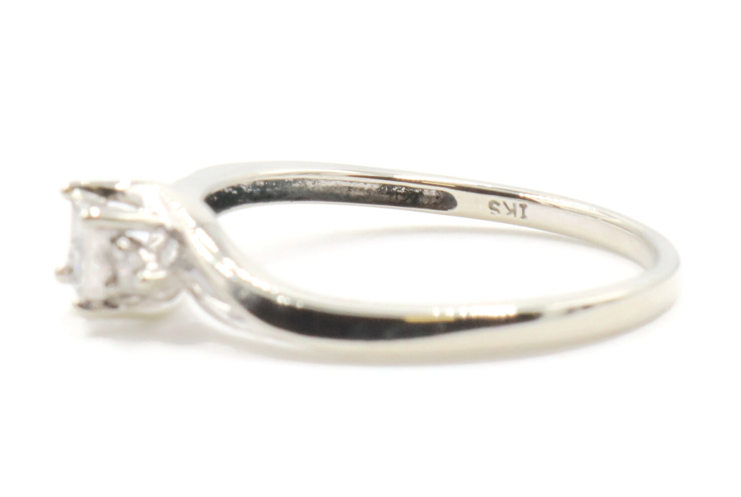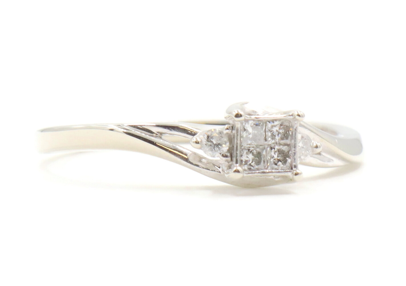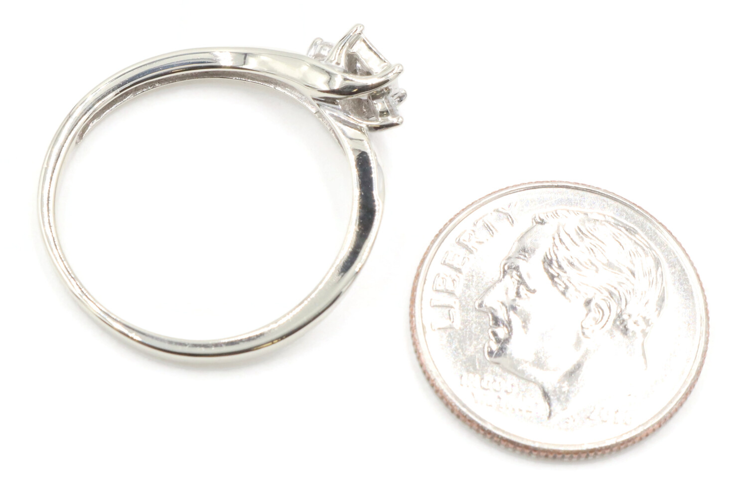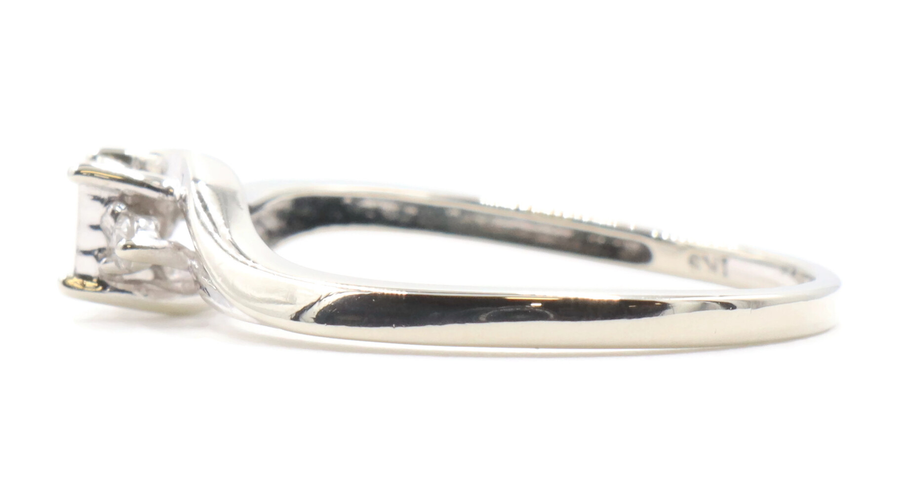 0.10 ctw Princess & Round Diamonds Past Present & Future 10KT White Gold Ring. This ring is a size 7.5.