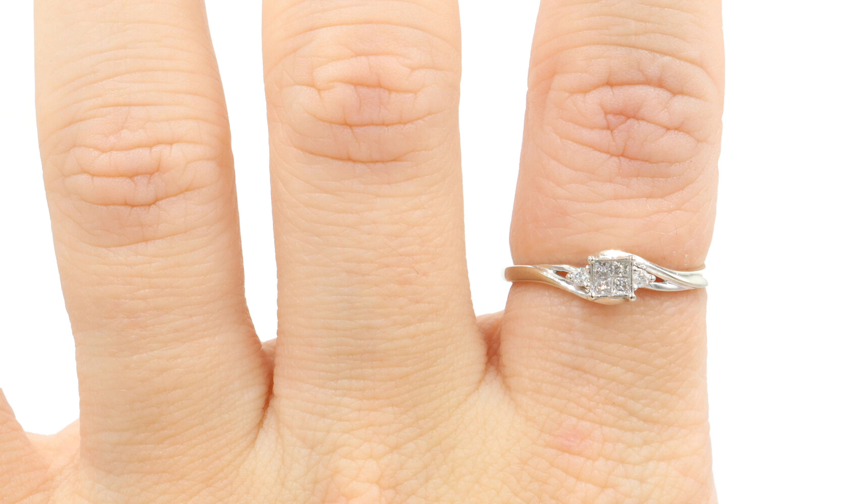 0.10 ctw Princess & Round Diamonds Past Present & Future 10KT White Gold Ring | USA Pawn