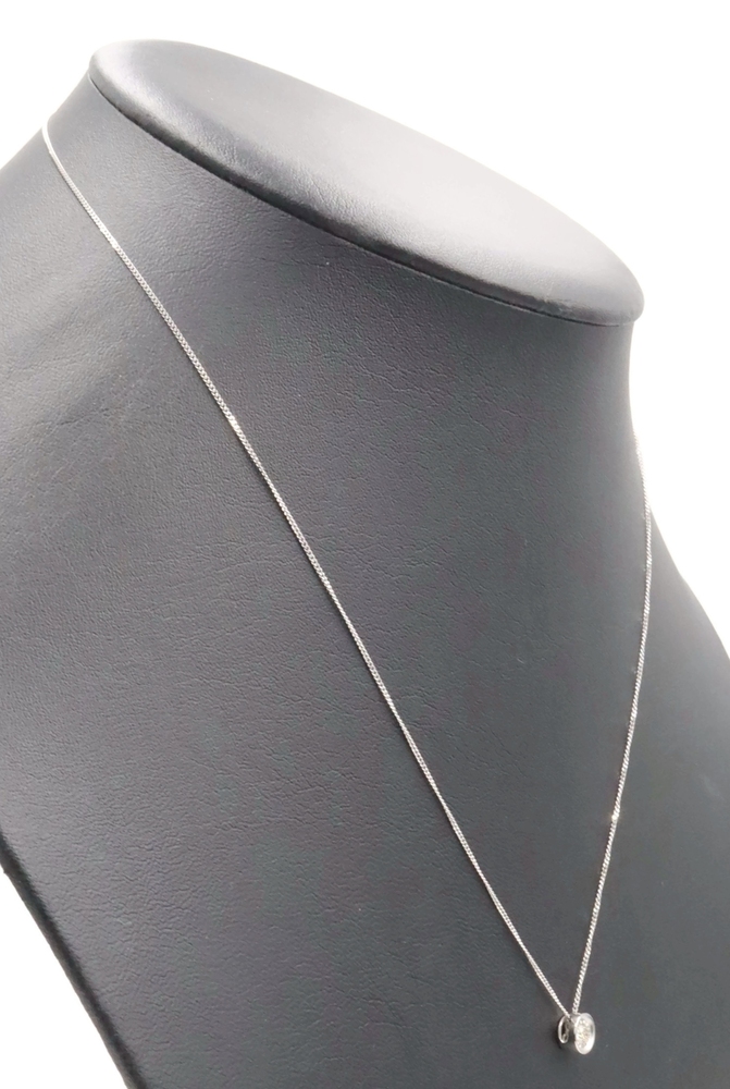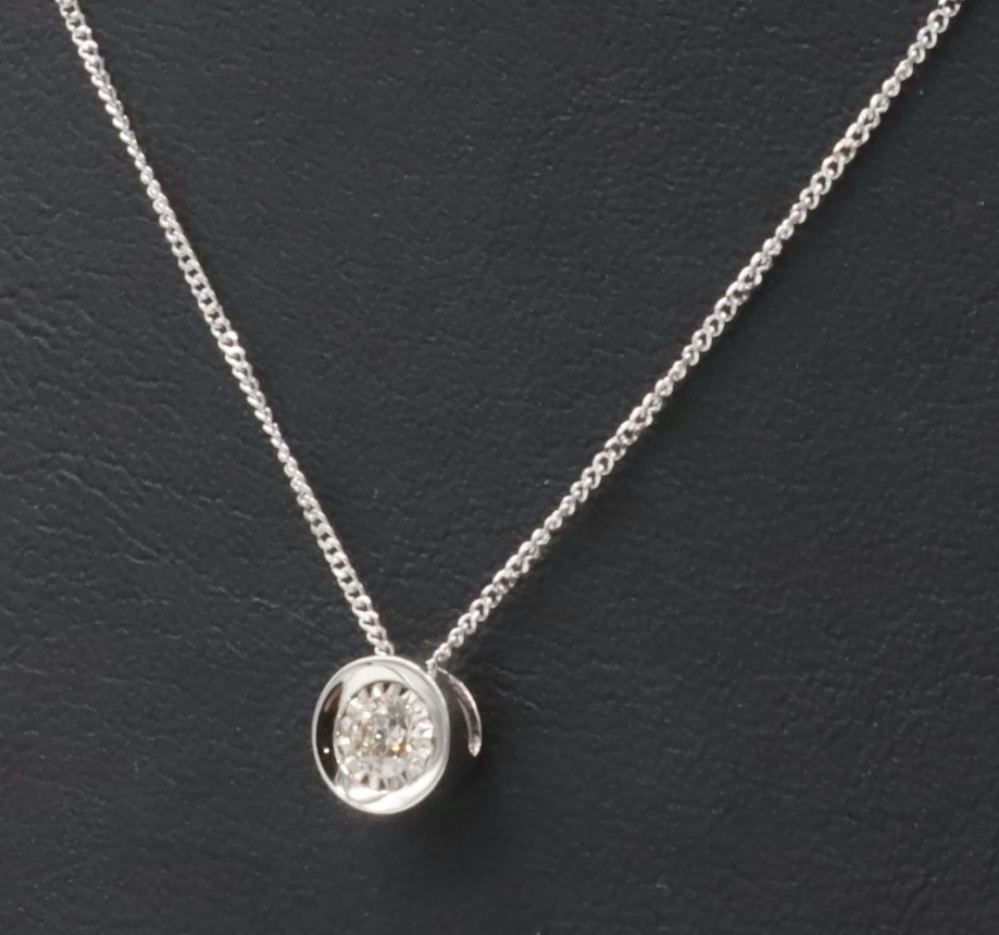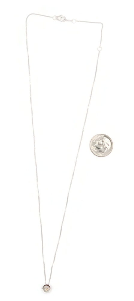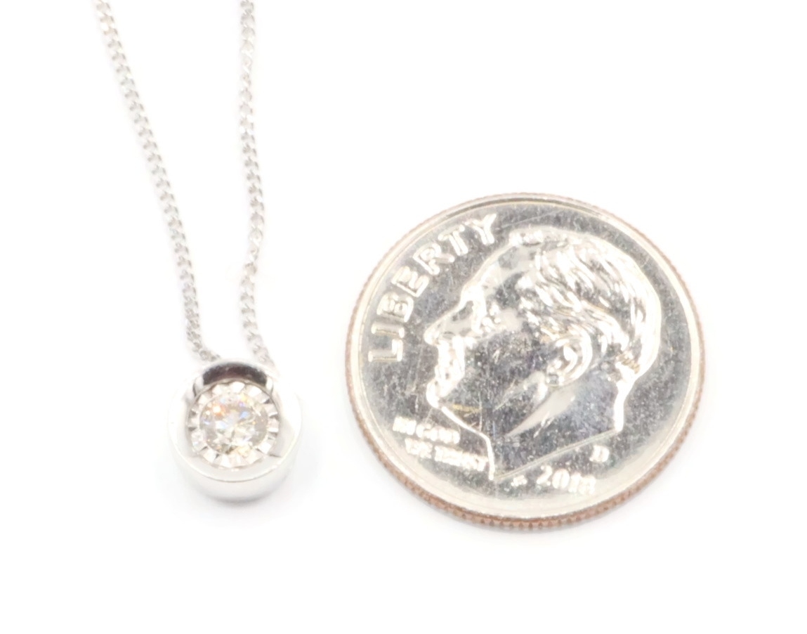 0.15 ctw Round Diamond Solitaire 10KT White Gold Bezel Pendant on 19" Necklace | USA Pawn