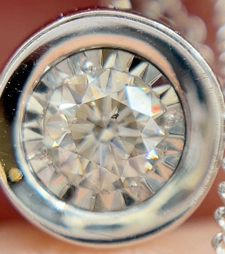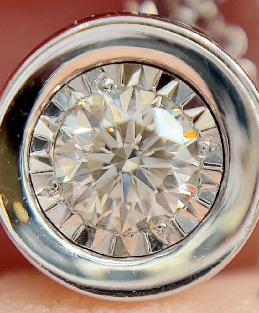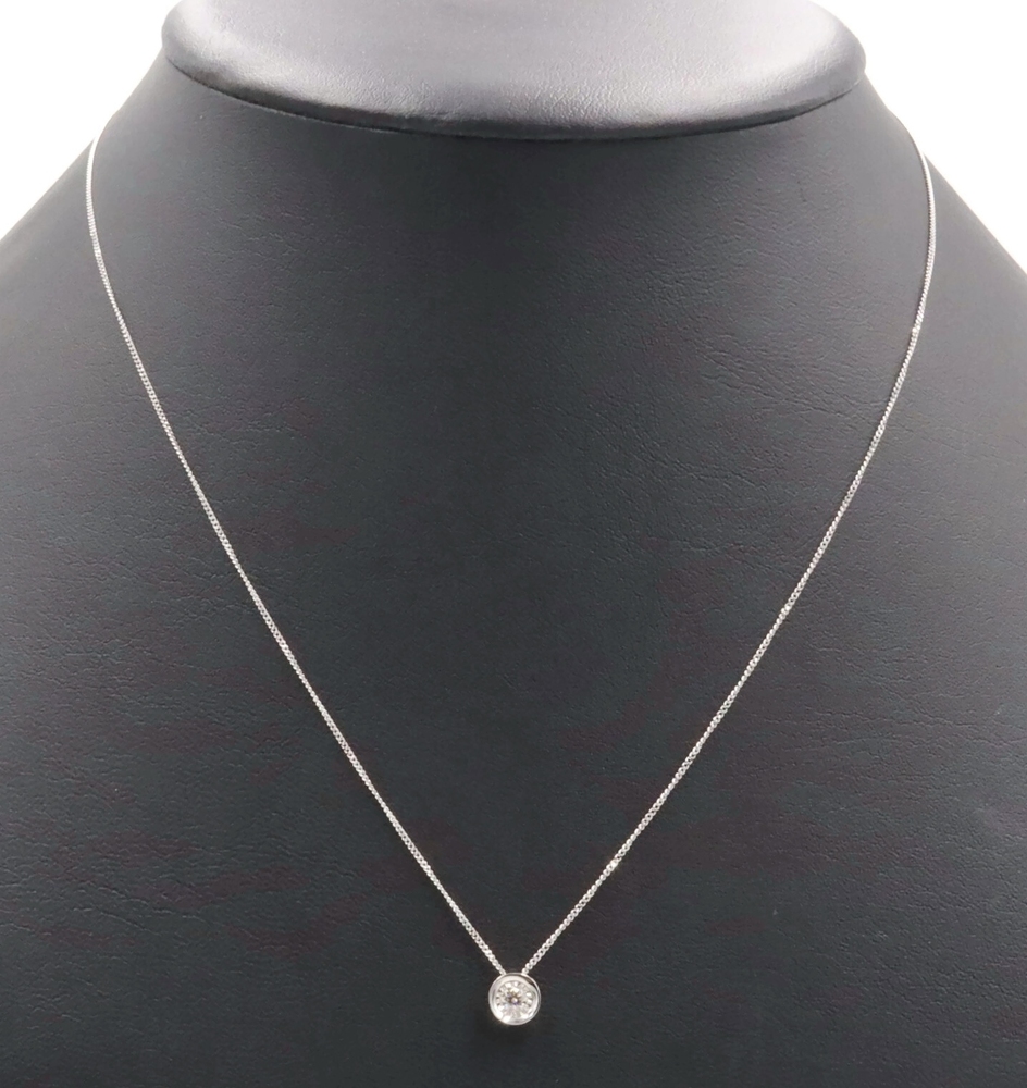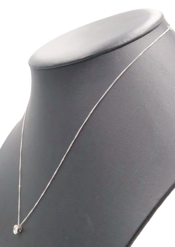 0.15 ctw Round Diamond Solitaire 10KT White Gold Bezel Pendant on 19" Necklace | USA Pawn