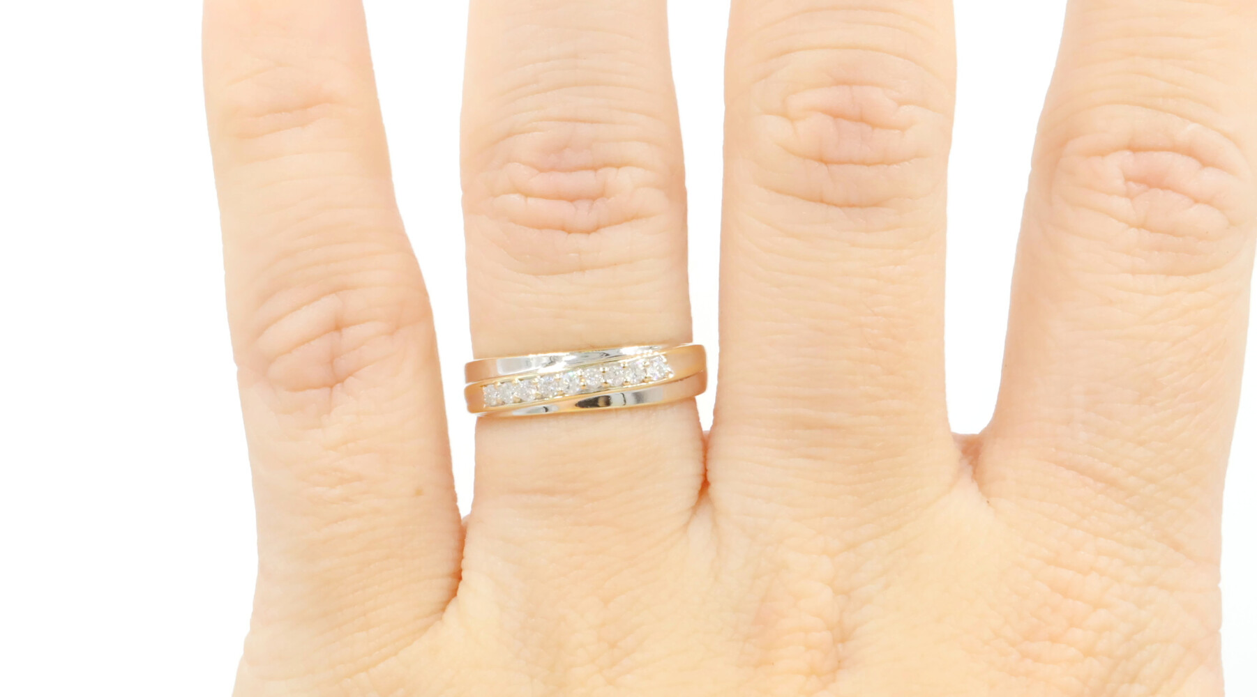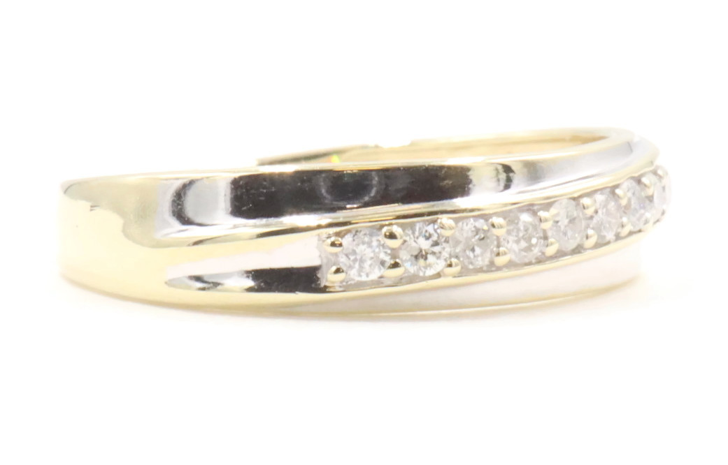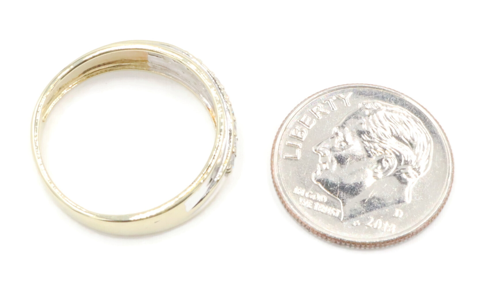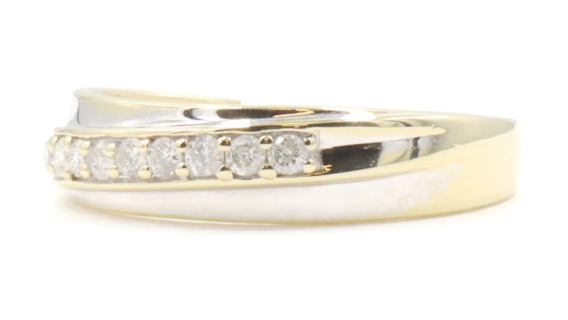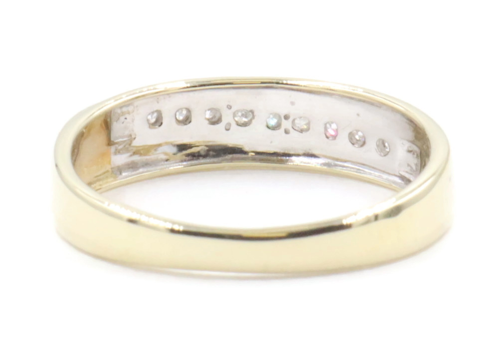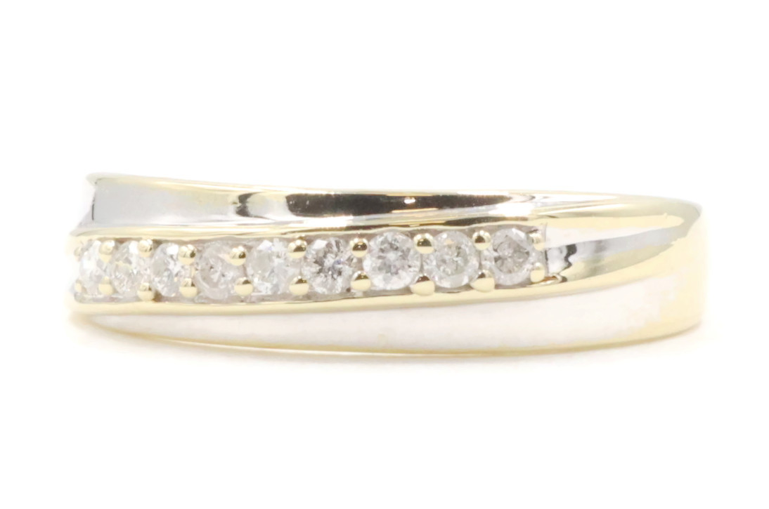 0.18 ctw Round Diamond Diagonal 10KT Yellow & White Gold 4.8mm Wedding Band Ring. This ring is a size 6 3/4.