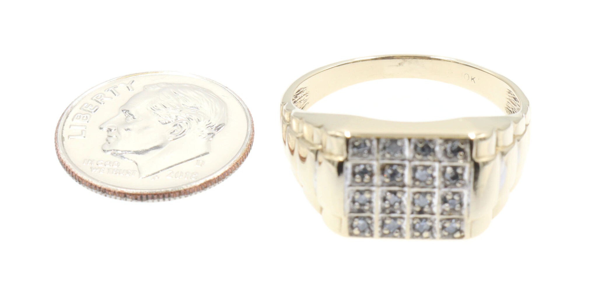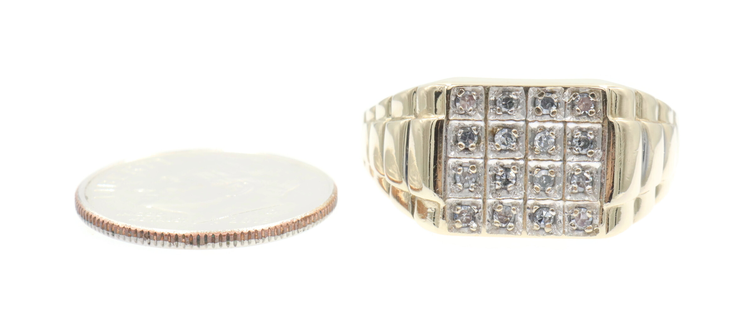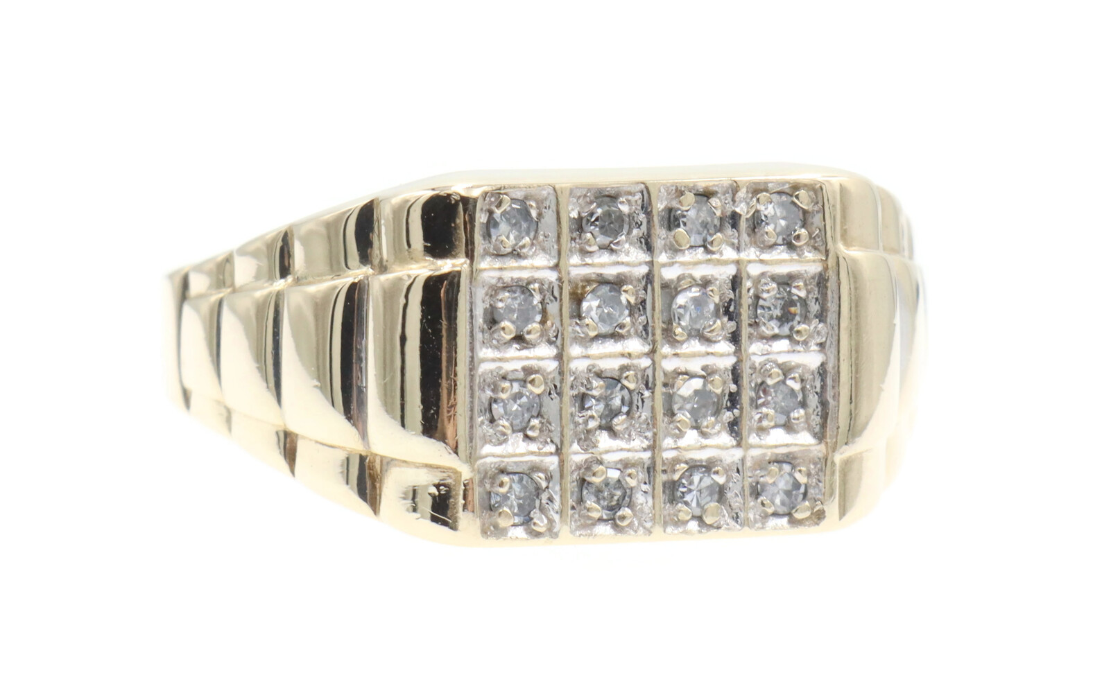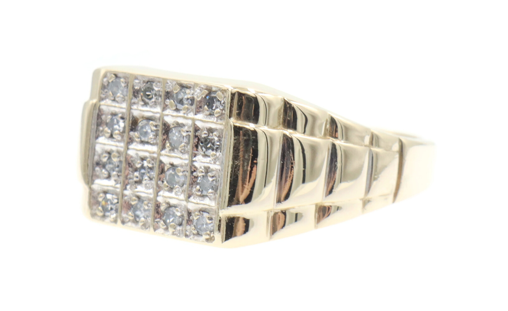 0.24 Ctw Single Cut Diamond 10KT Gold Rectangular Cluster Watch Band Ring 3.88g | USA Pawn