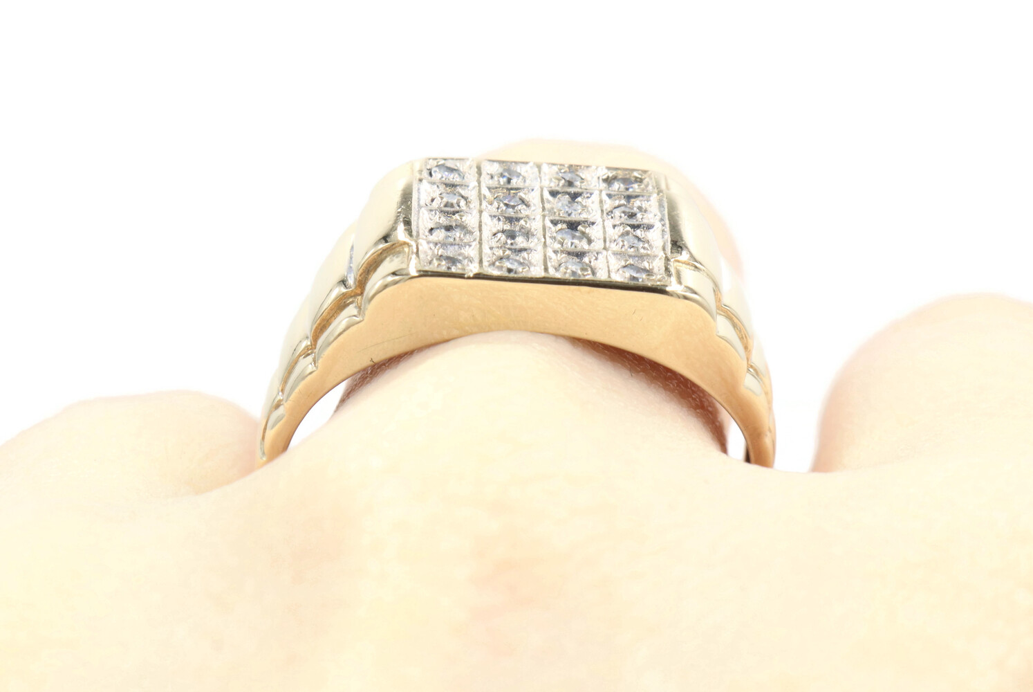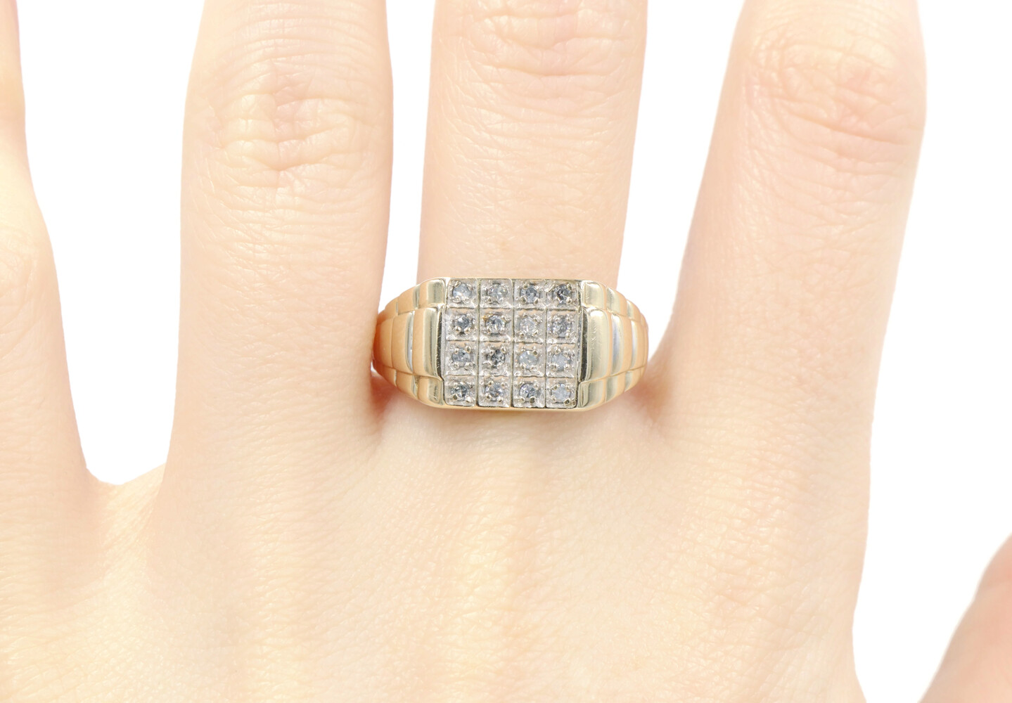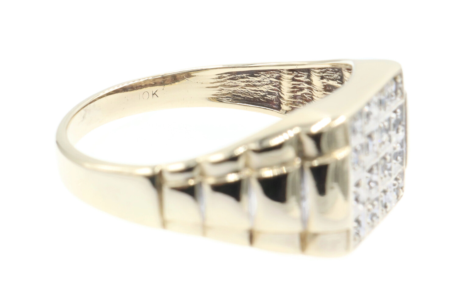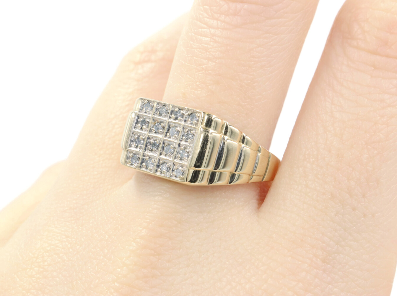 0.24 Ctw Single Cut Diamond 10KT Gold Rectangular Cluster Watch Band Ring 3.88g | USA Pawn