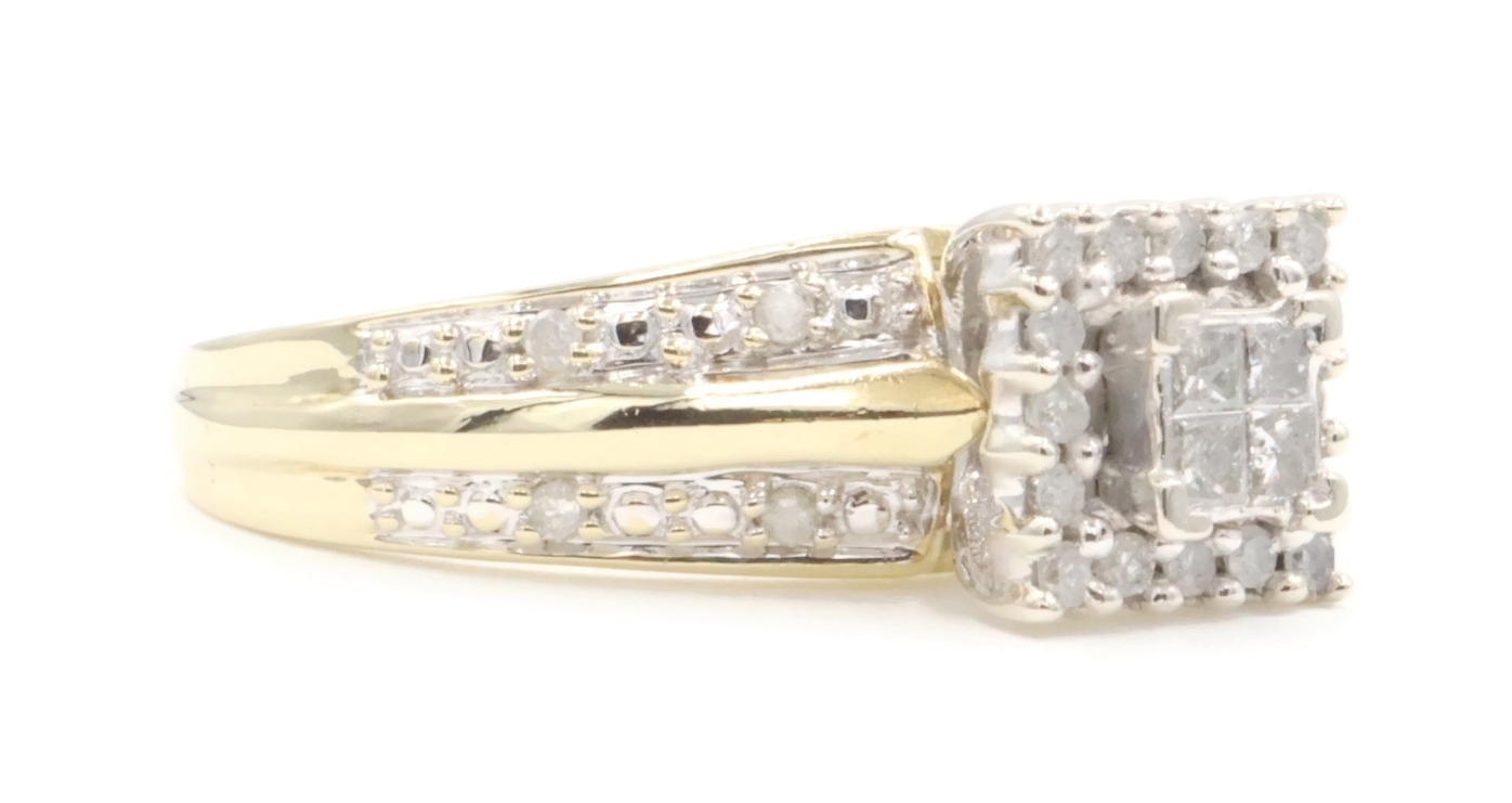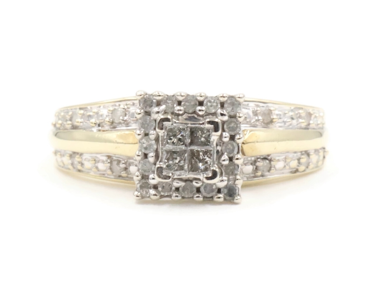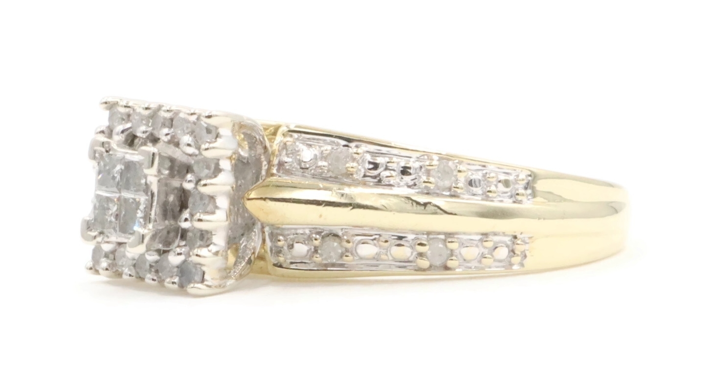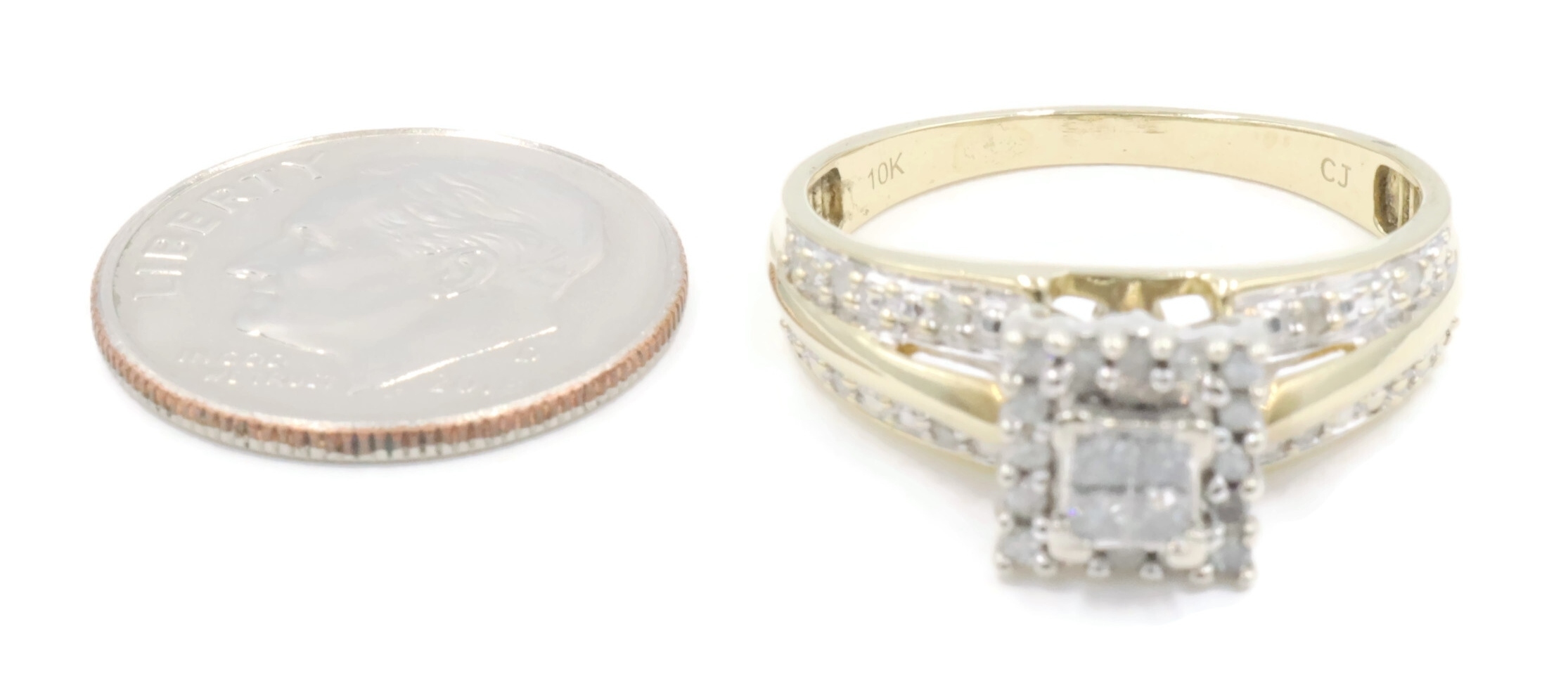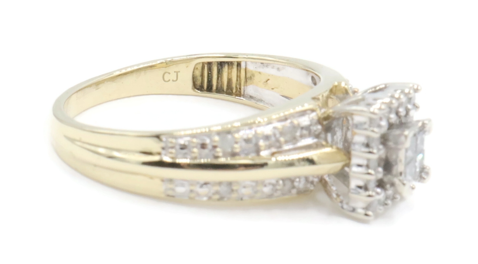 0.30 Ctw Princess & Round Diamond 10KT Gold Square Cluster Halo Ring by CJ 3.3g. This ring is a size 6.