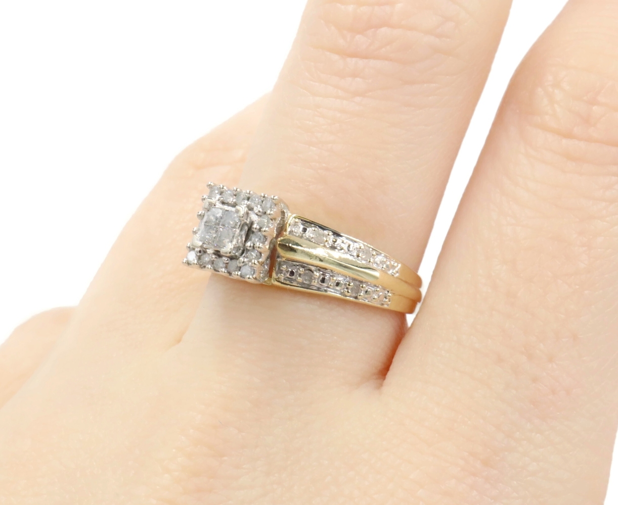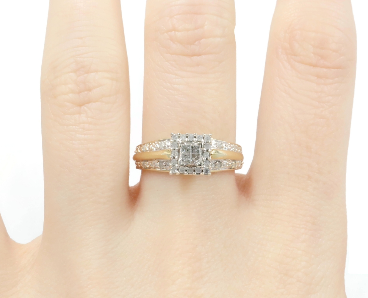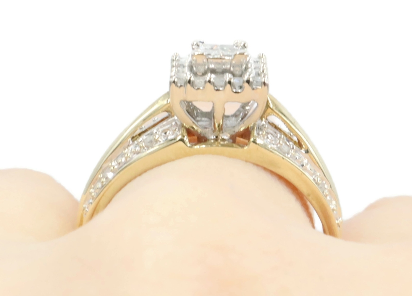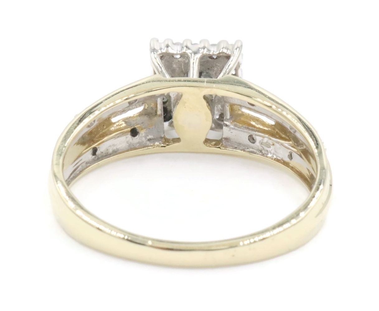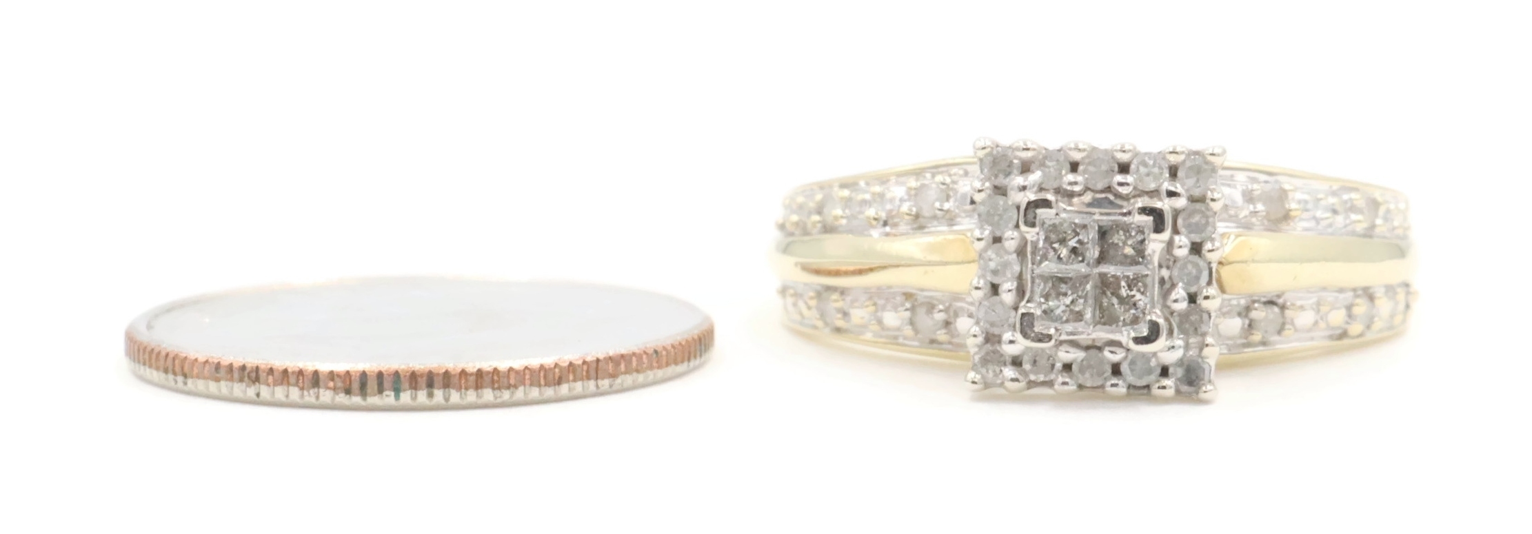 0.30 Ctw Princess & Round Diamond 10KT Gold Square Cluster Halo Ring by CJ 3.3g. This ring is a size 6.
