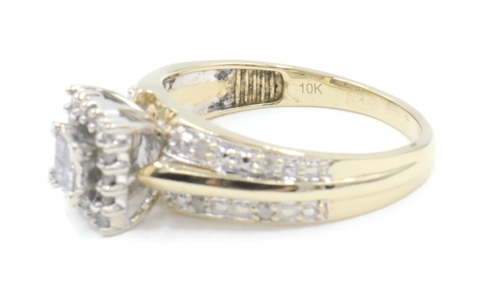 0.30 Ctw Princess & Round Diamond 10KT Gold Square Cluster Halo Ring by CJ 3.3g | USA Pawn