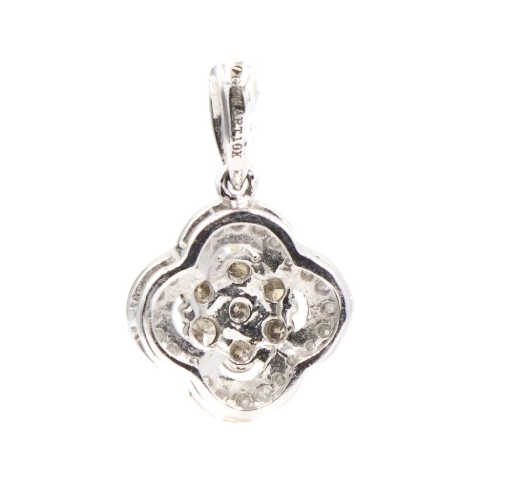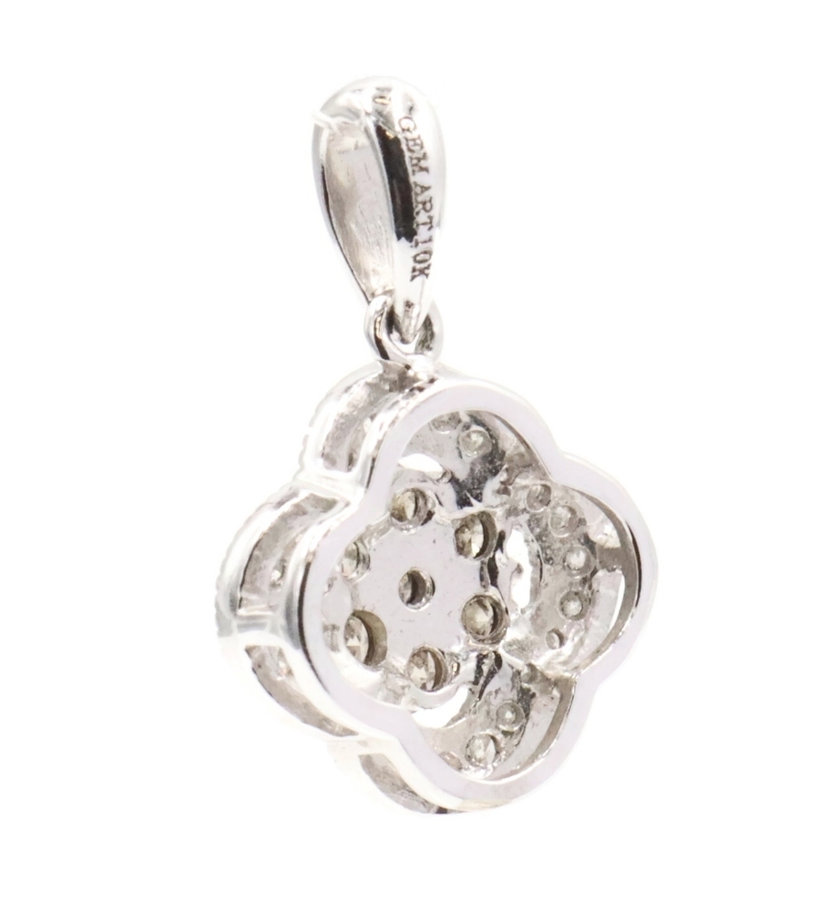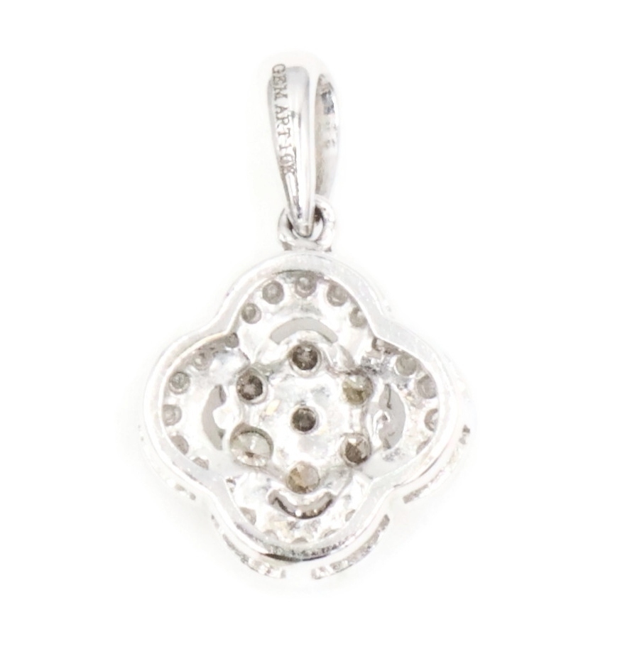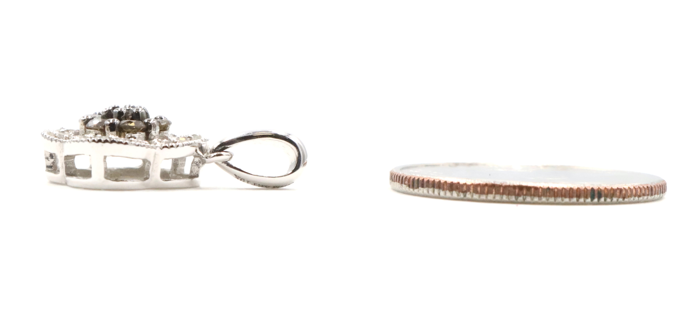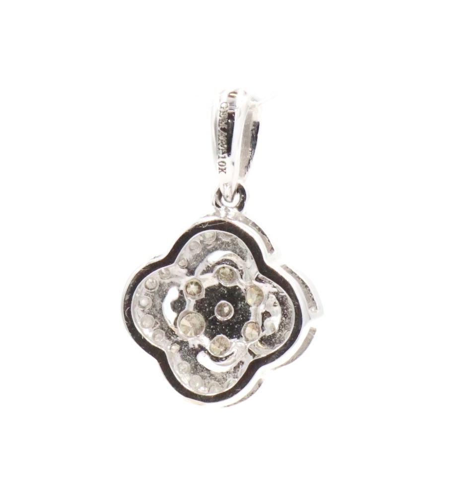 0.38 Ctw Champagne & White Diamond 10KT Gold 17.7mm Quatrefoil Cluster Pendant. This pendant is approximately 17.7mm in length (including the bail) and 10.9mm in width.