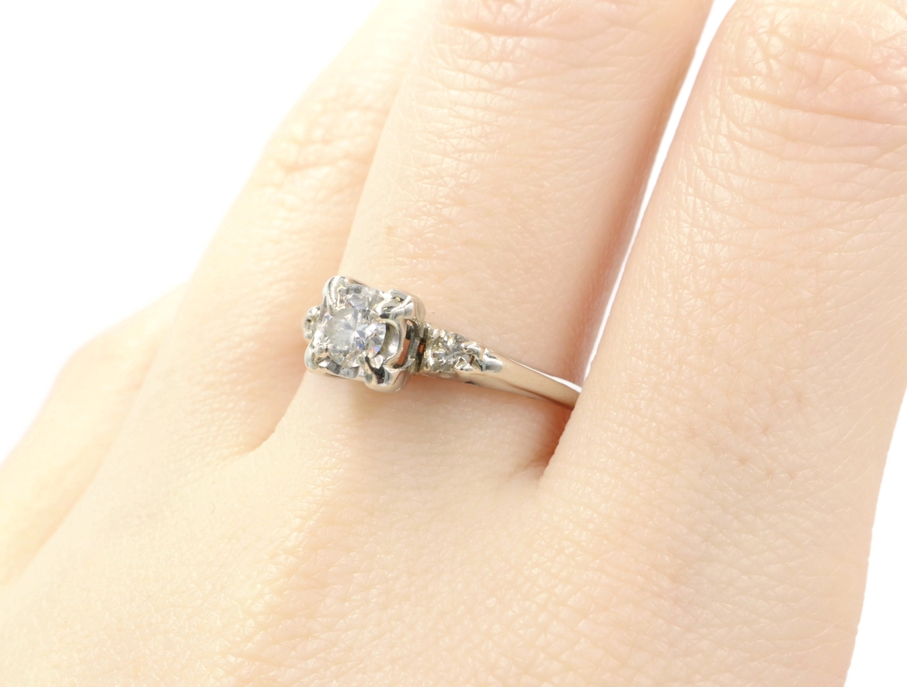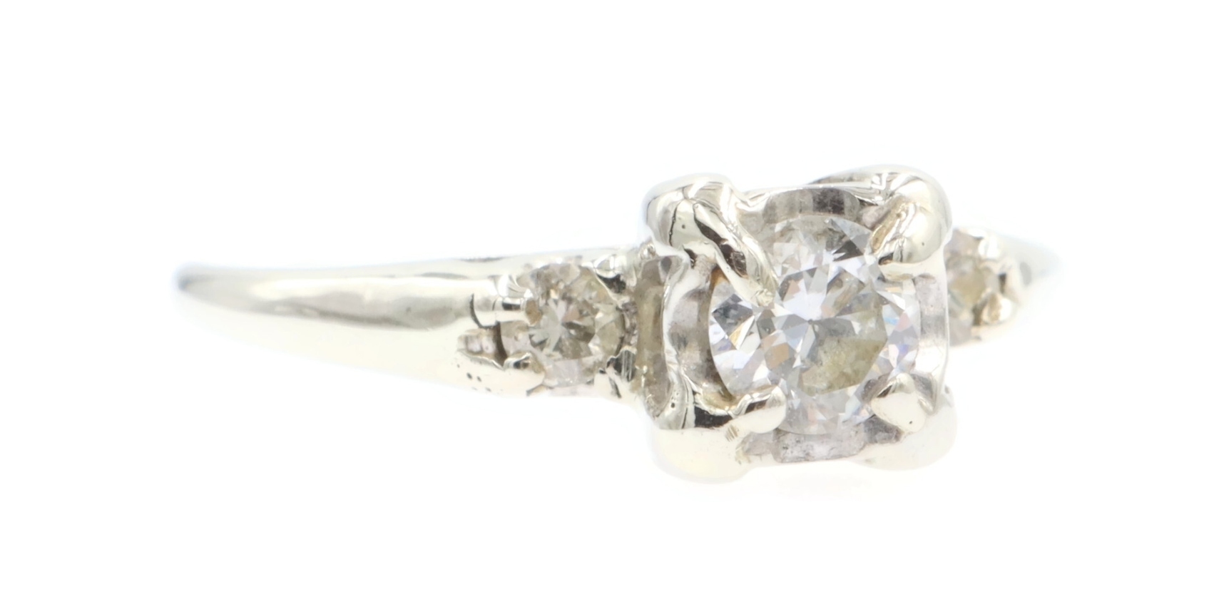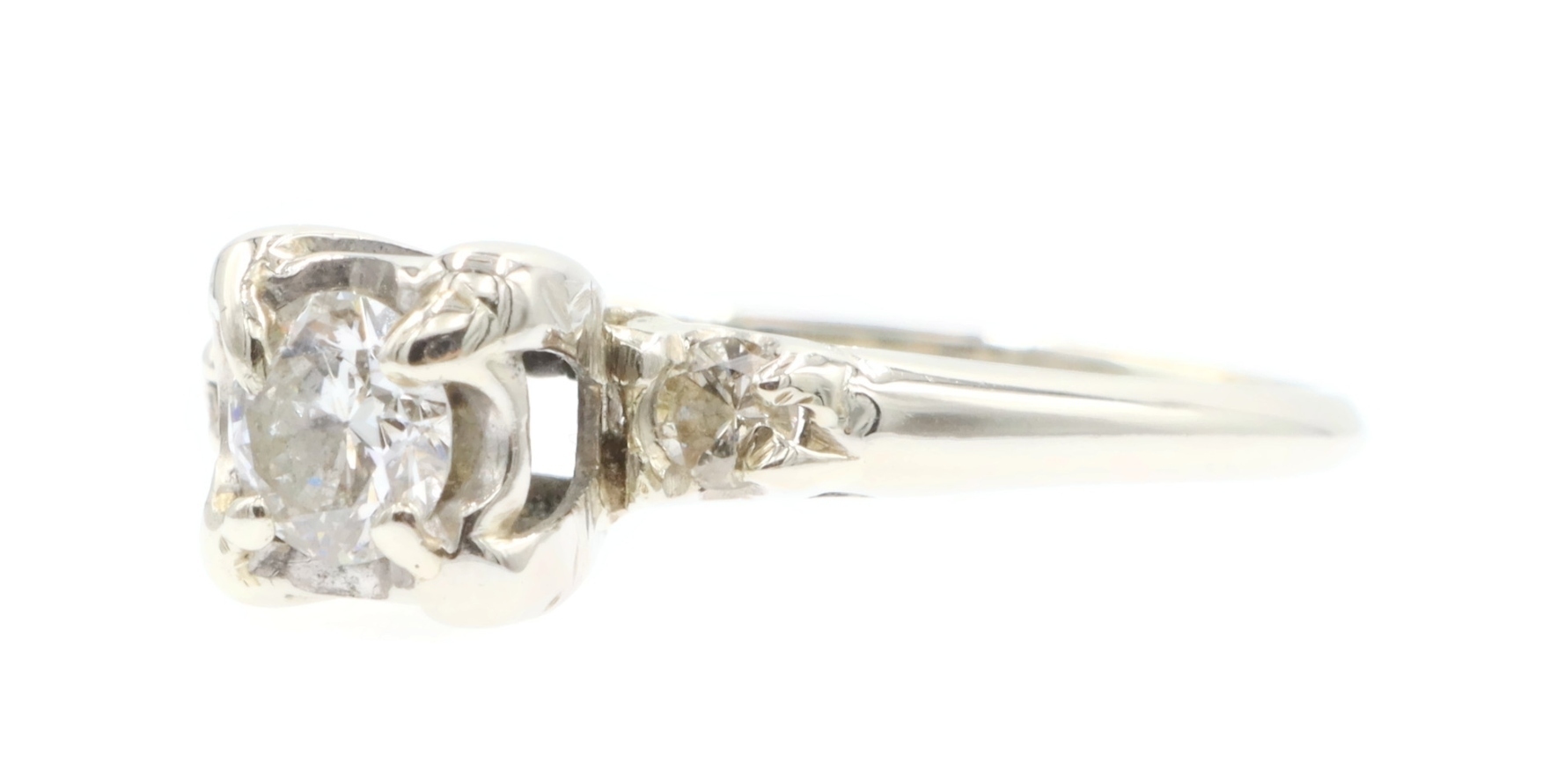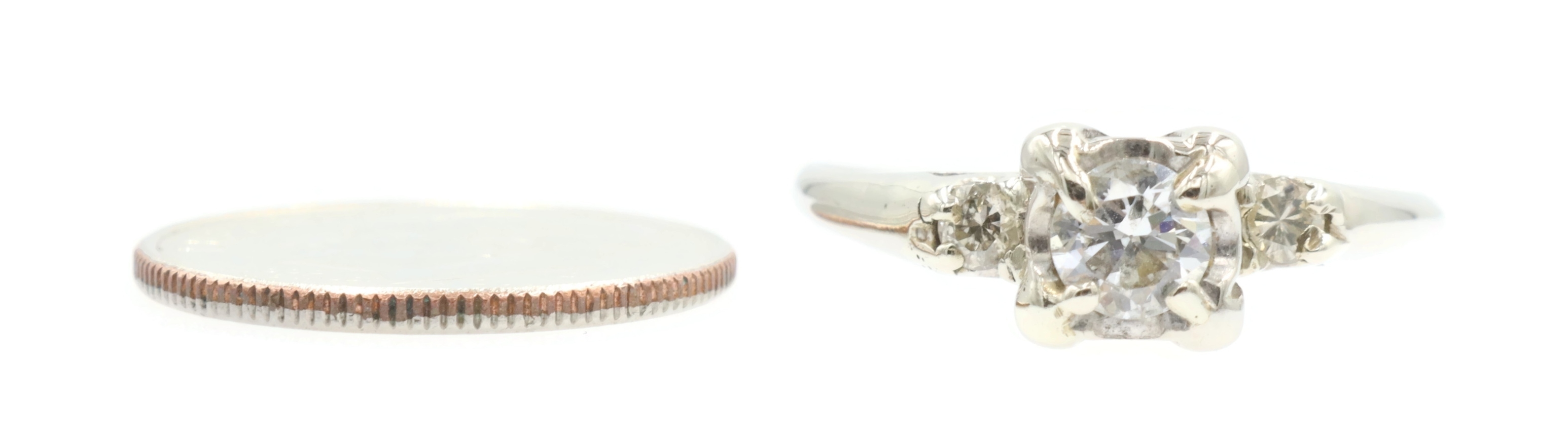 0.40 Ctw Early Modern Brilliant Cut & Round Diamond 14KT White Gold PPF Ring 2g. This ring is a size 7 3/4.