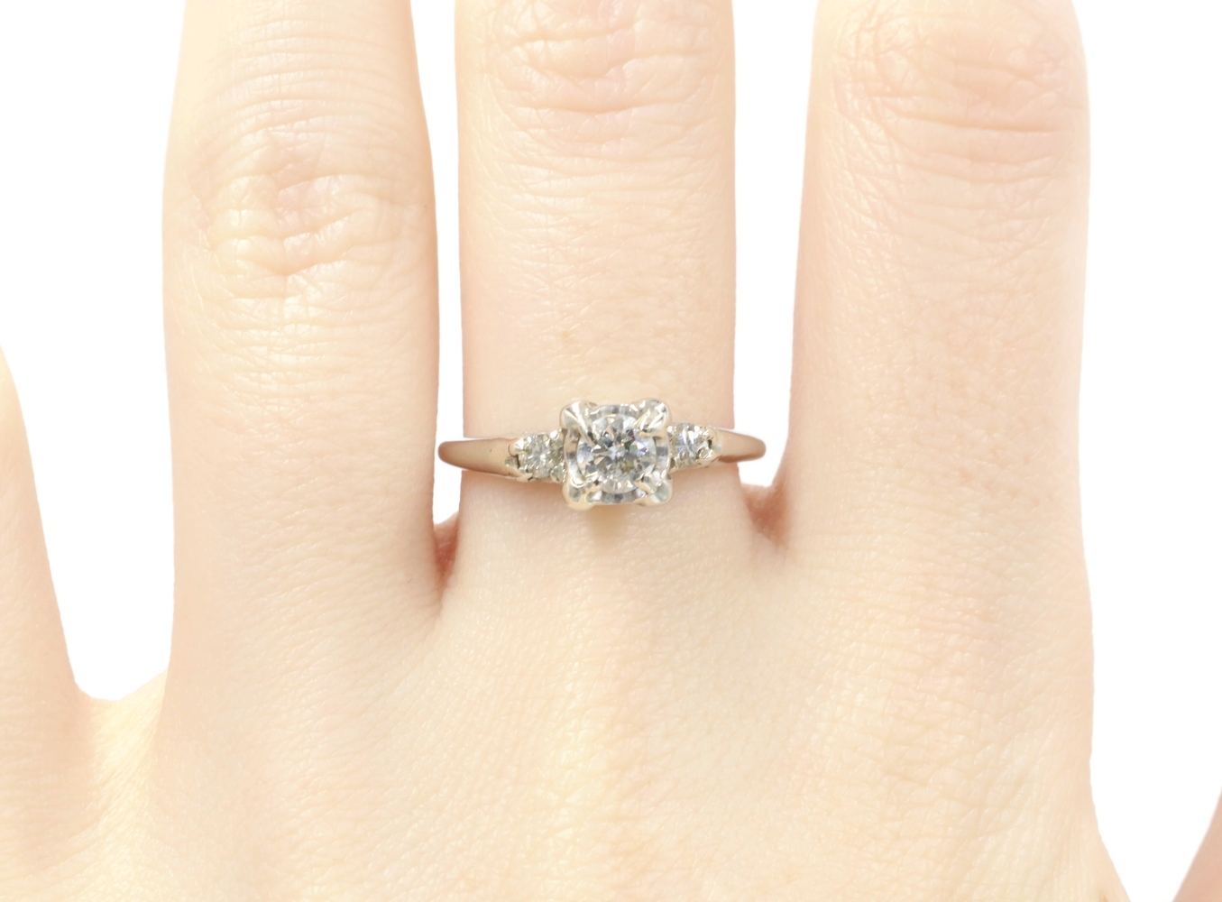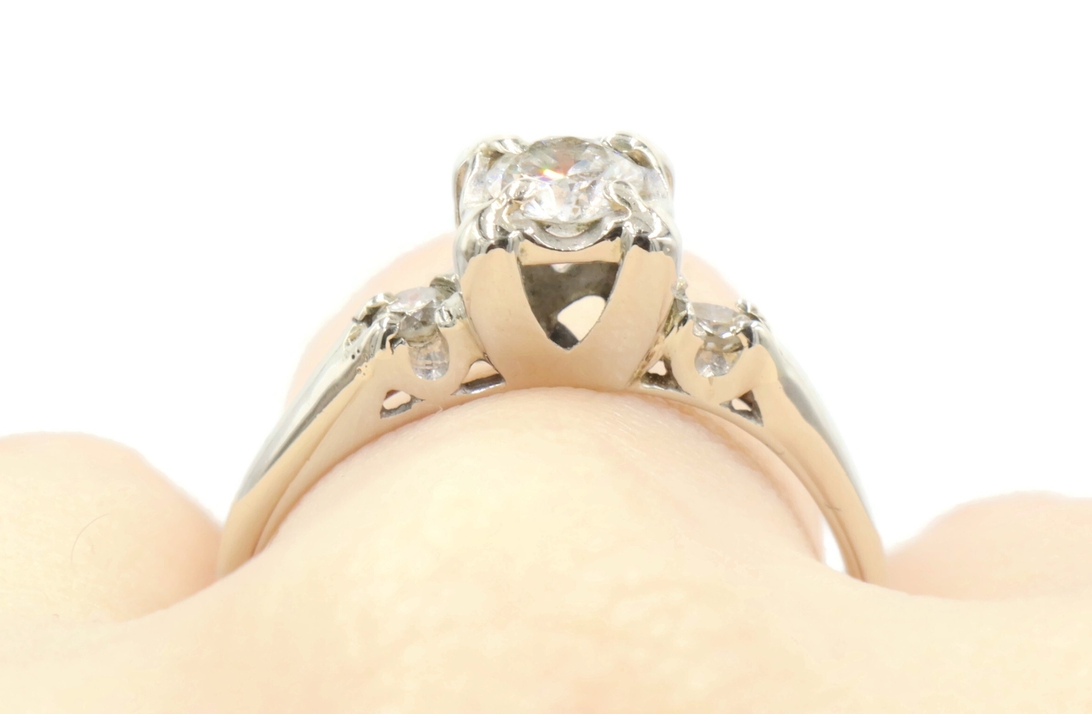 0.40 Ctw Early Modern Brilliant Cut & Round Diamond 14KT White Gold PPF Ring 2g | USA Pawn