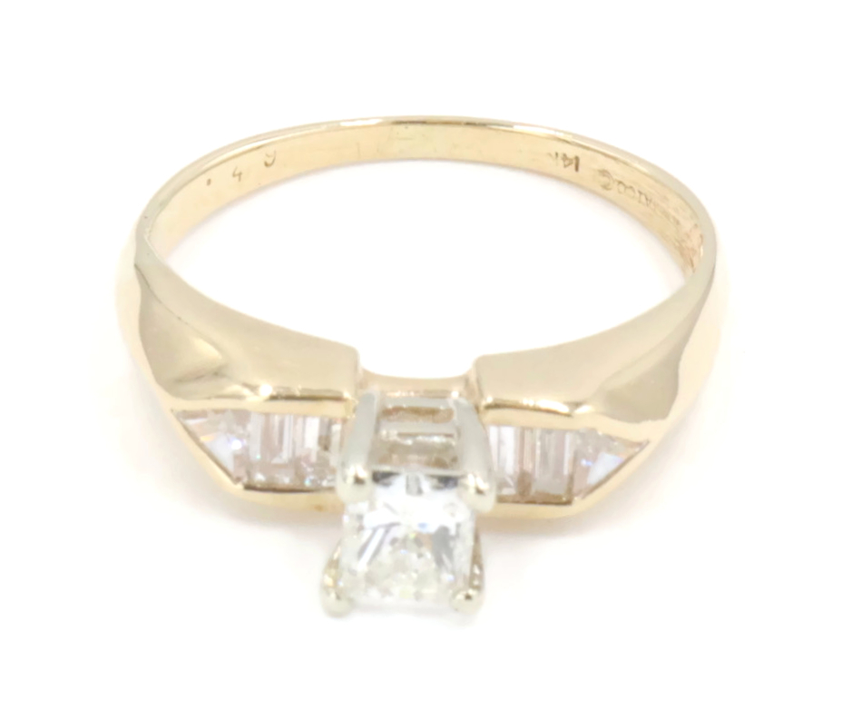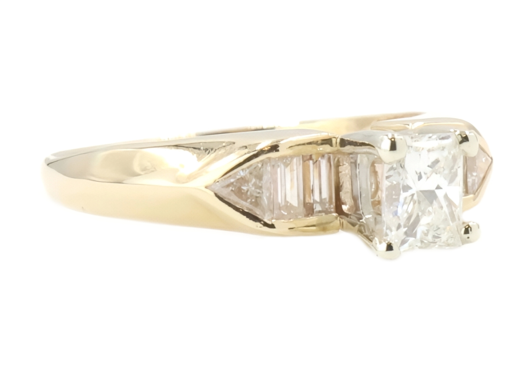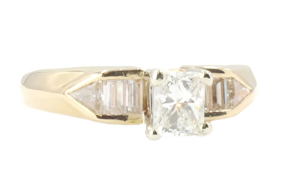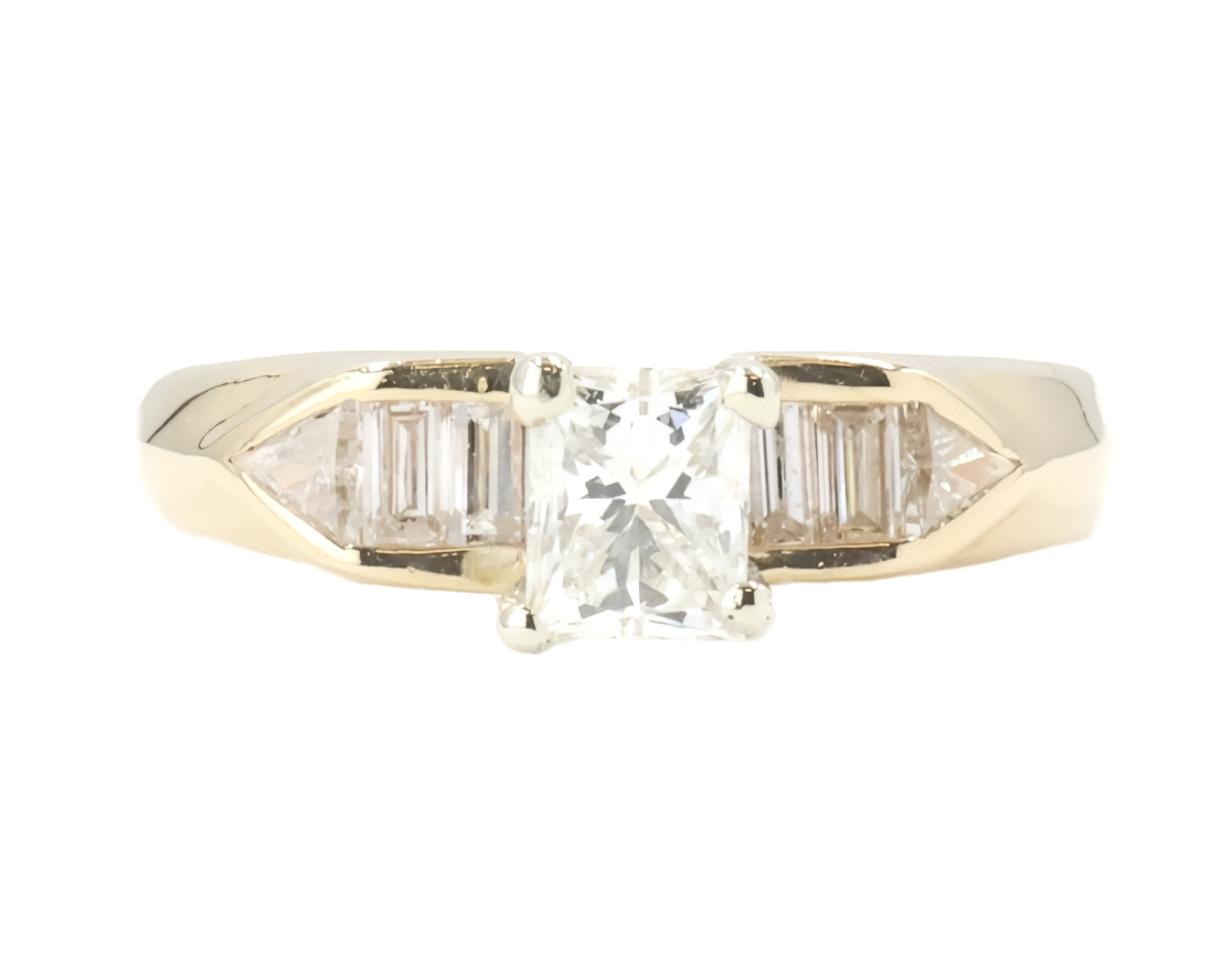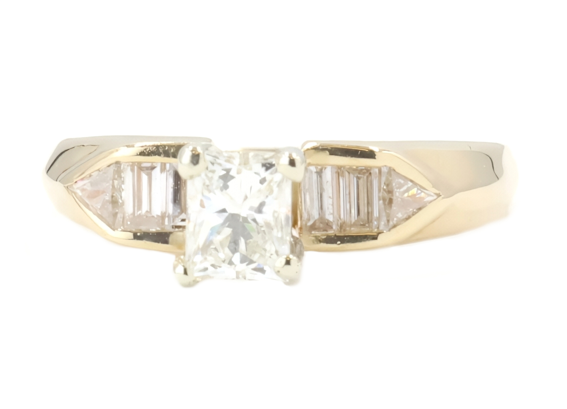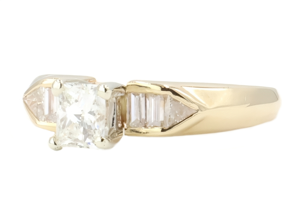 0.49 ctw Emerald Trilliant & Baguette Cut Diamond 14K Yellow Gold Solitaire Ring | USA Pawn