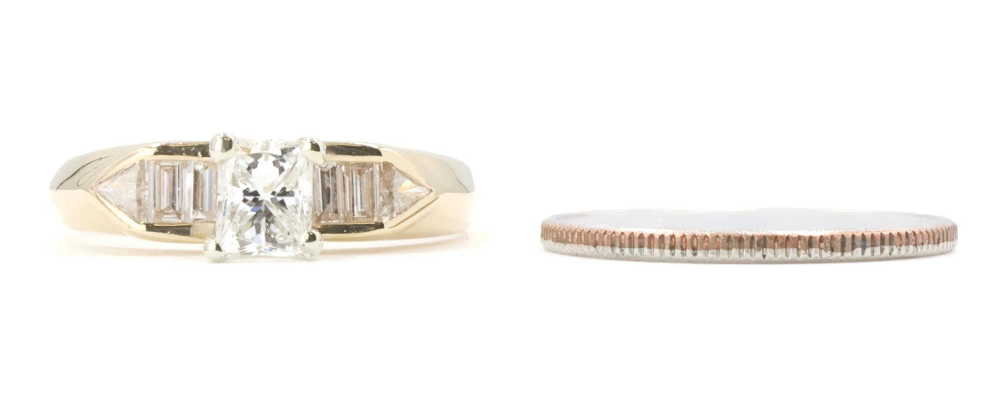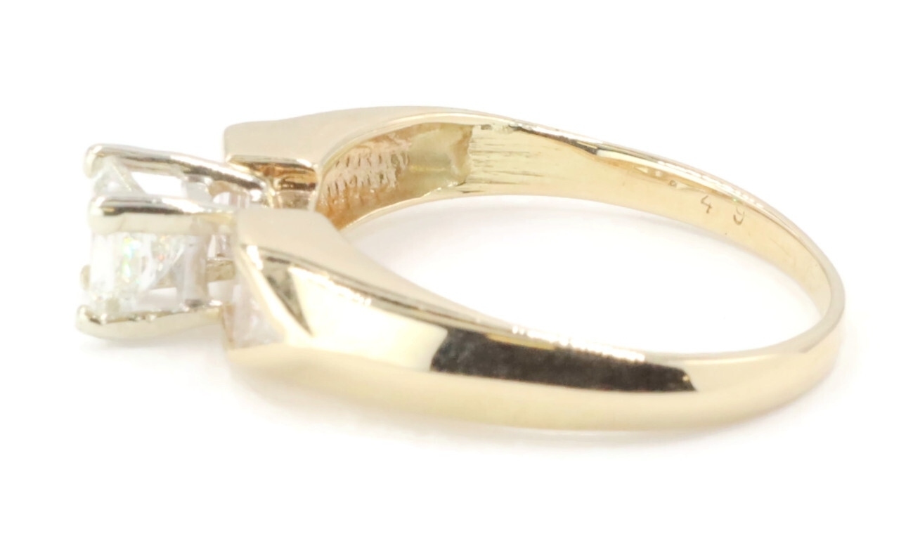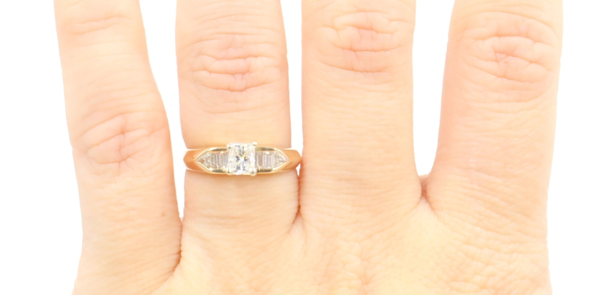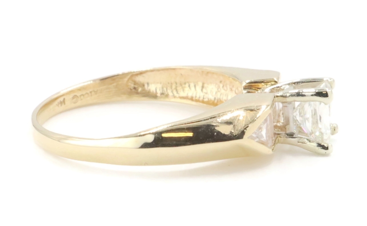 0.49 ctw Emerald Trilliant & Baguette Cut Diamond 14K Yellow Gold Solitaire Ring | USA Pawn