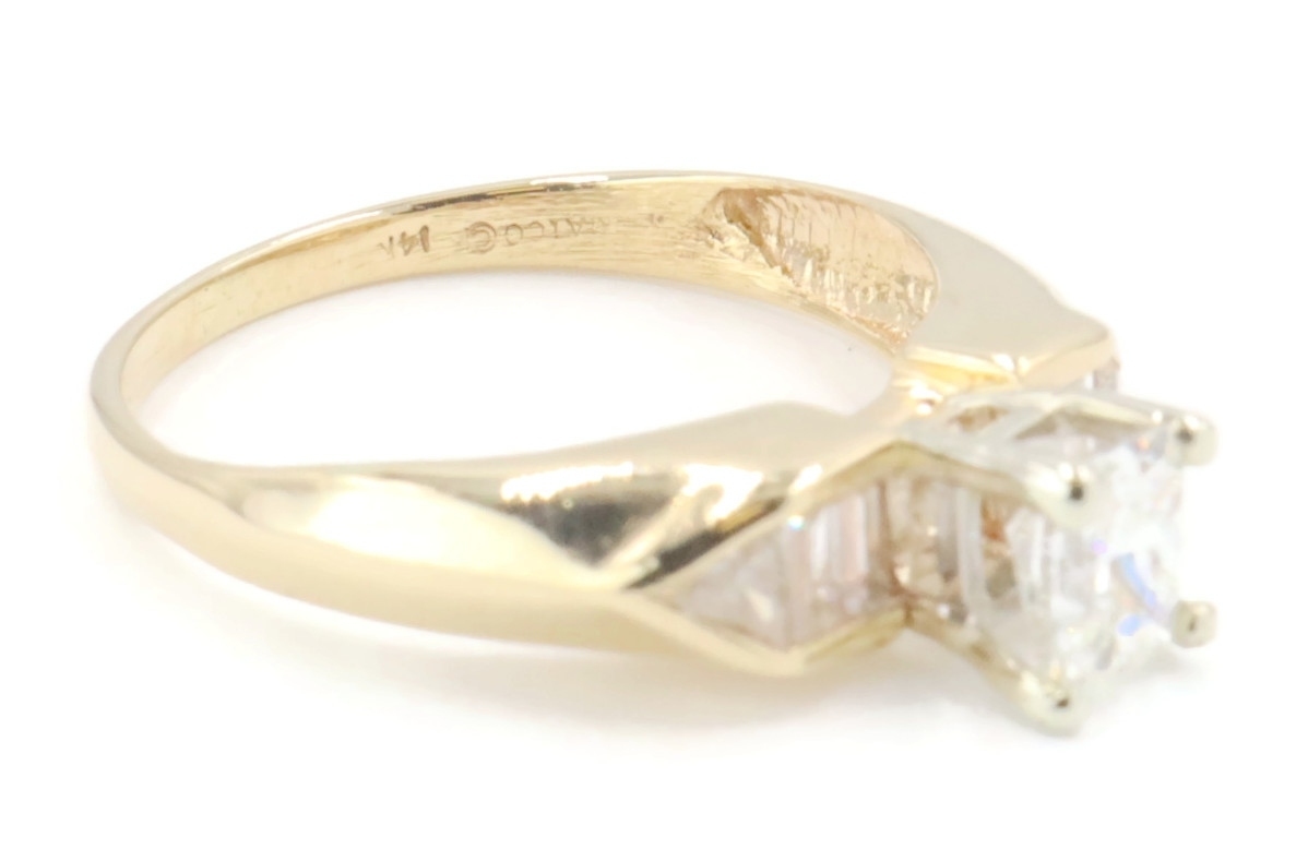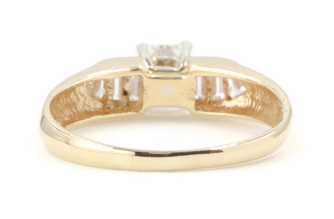 0.49 ctw Emerald Trilliant & Baguette Cut Diamond 14K Yellow Gold Solitaire Ring. This ring is a size 5 3/4.