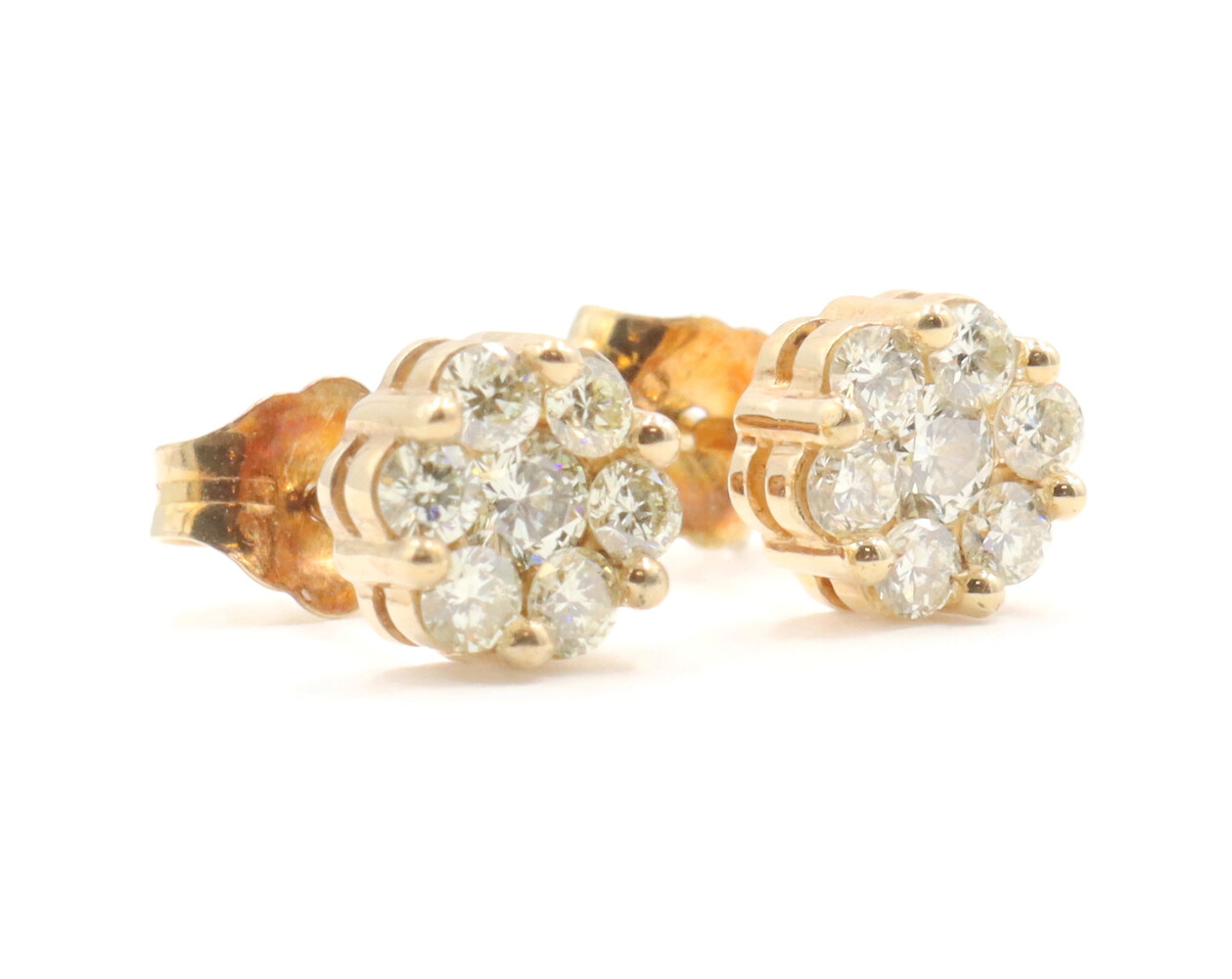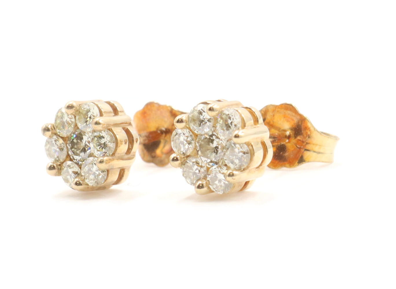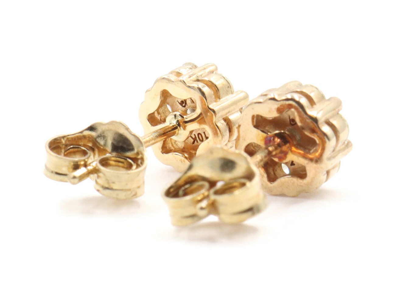 0.50 ctw Round Diamond Flower Cluster 10KT Yellow Gold Screw Back Stud Earrings | USA Pawn