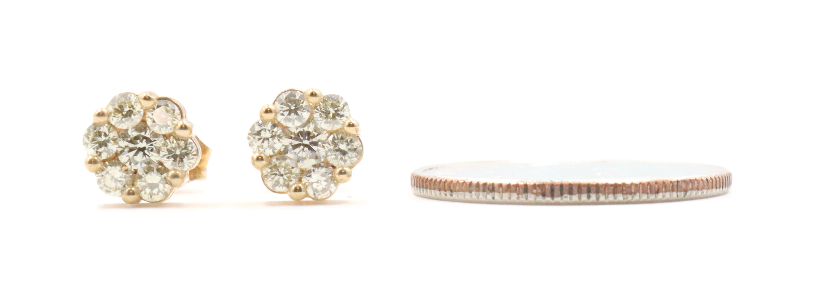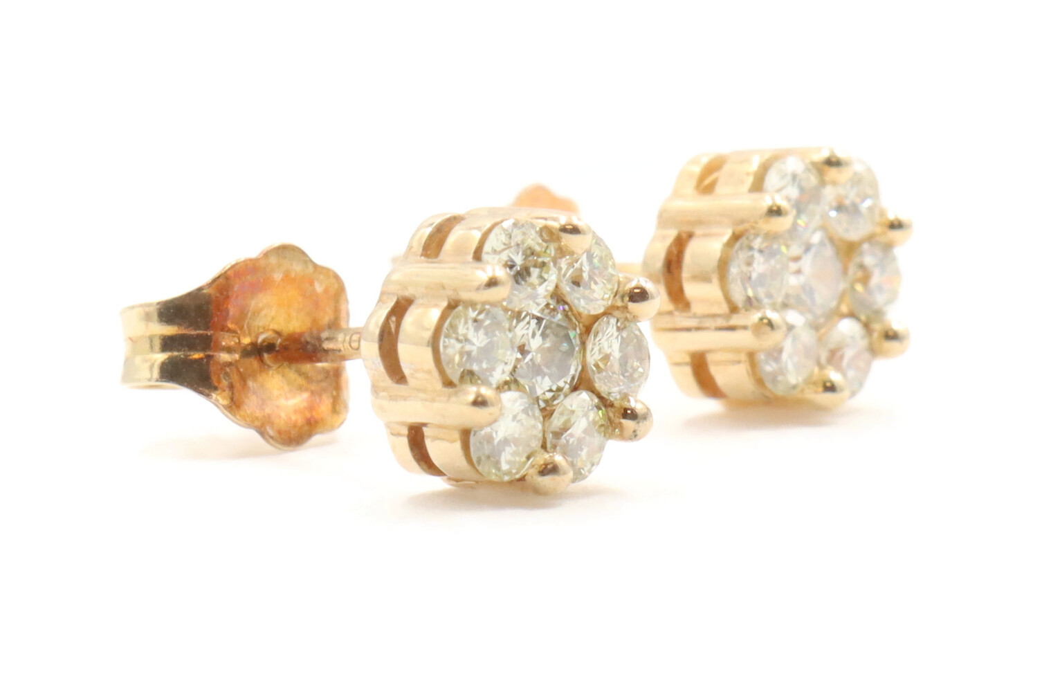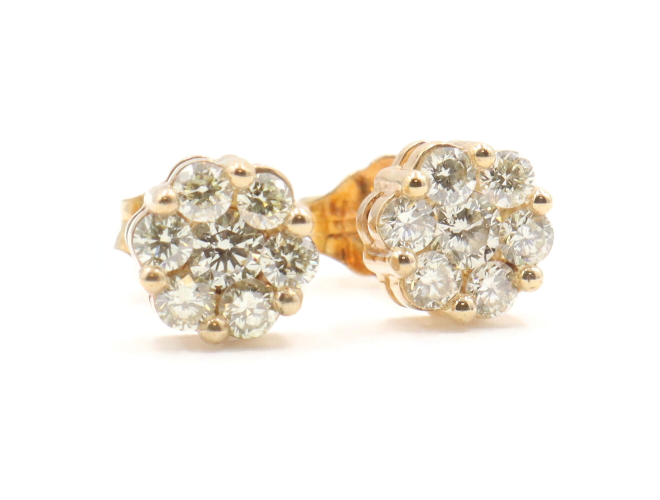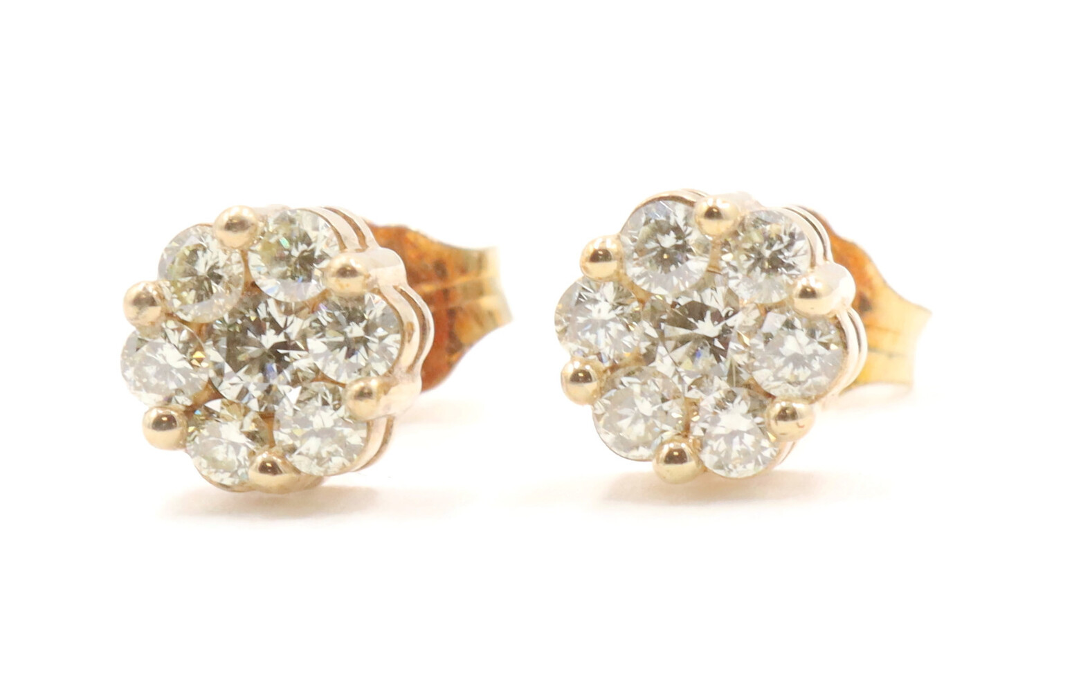 0.50 ctw Round Diamond Flower Cluster 10KT Yellow Gold Screw Back Stud Earrings | USA Pawn