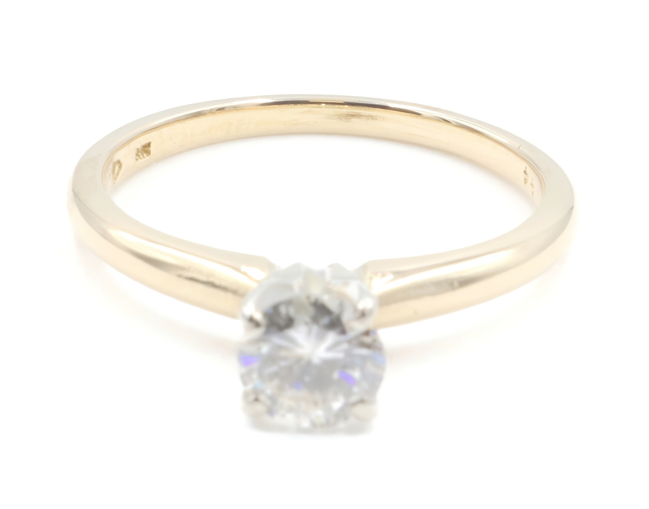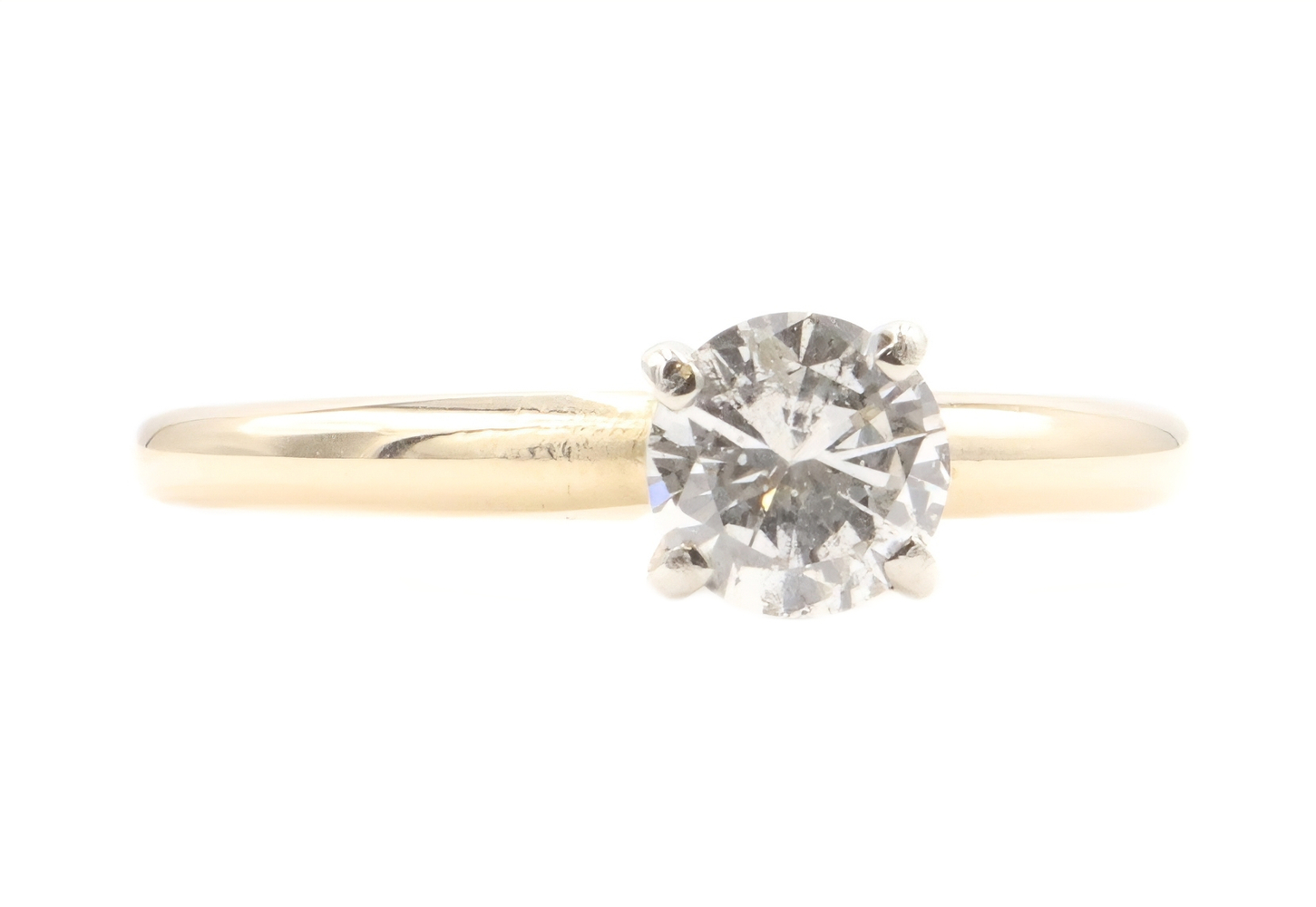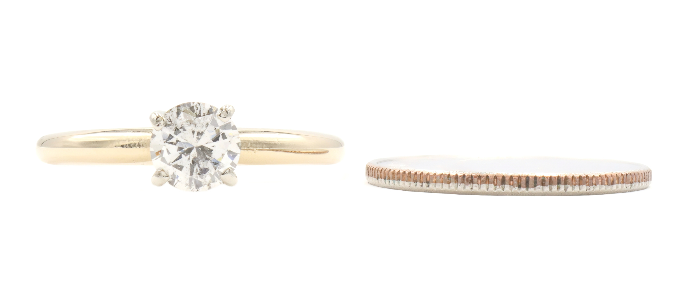 0.53 ctw Solitaire Round Brilliant Diamond 14KT Yellow Gold Engagement Ring 2.5g. This ring is a size 6 3/4.