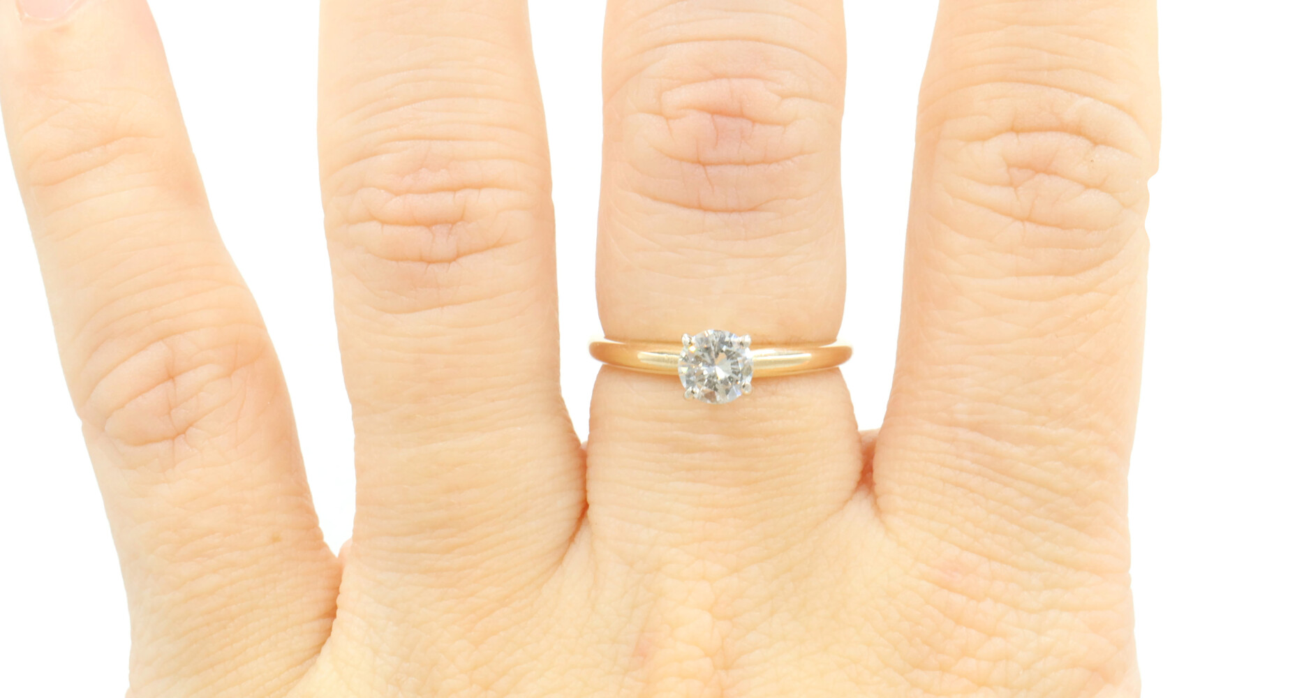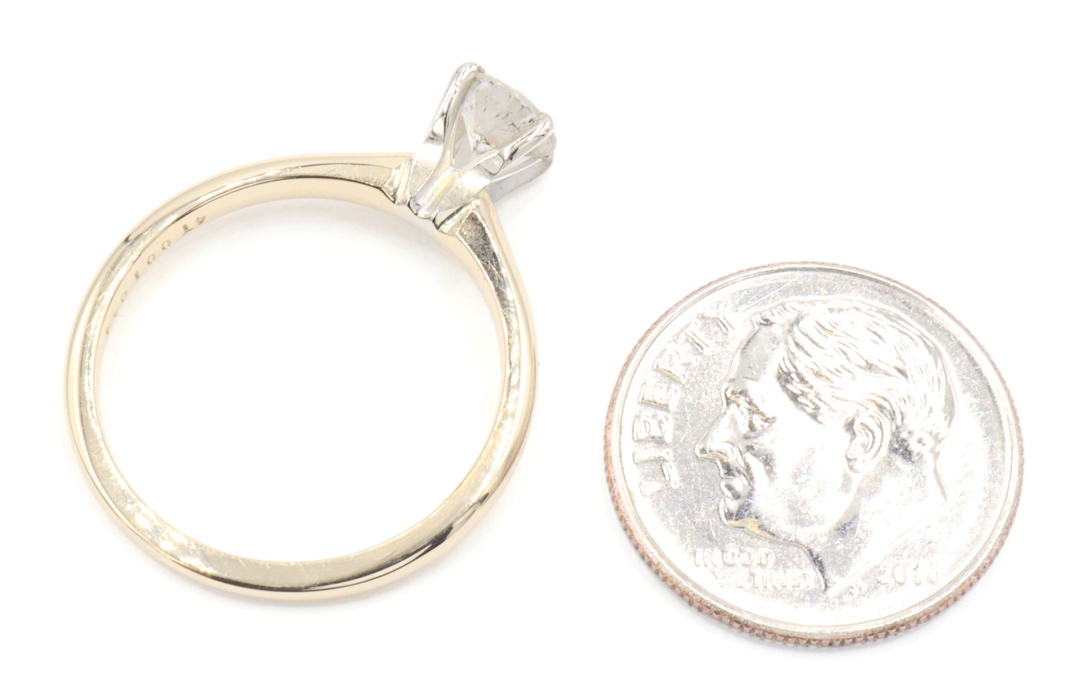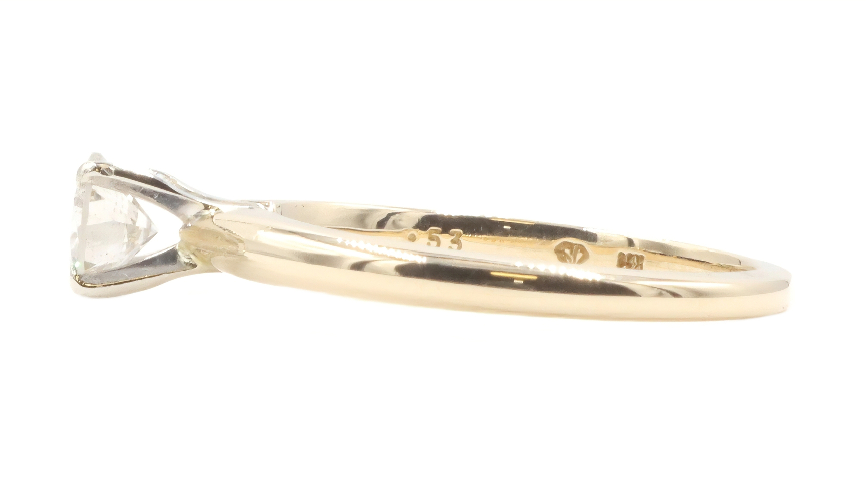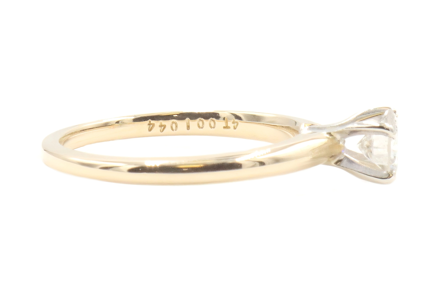 0.53 ctw Solitaire Round Brilliant Diamond 14KT Yellow Gold Engagement Ring 2.5g. This ring is a size 6 3/4.