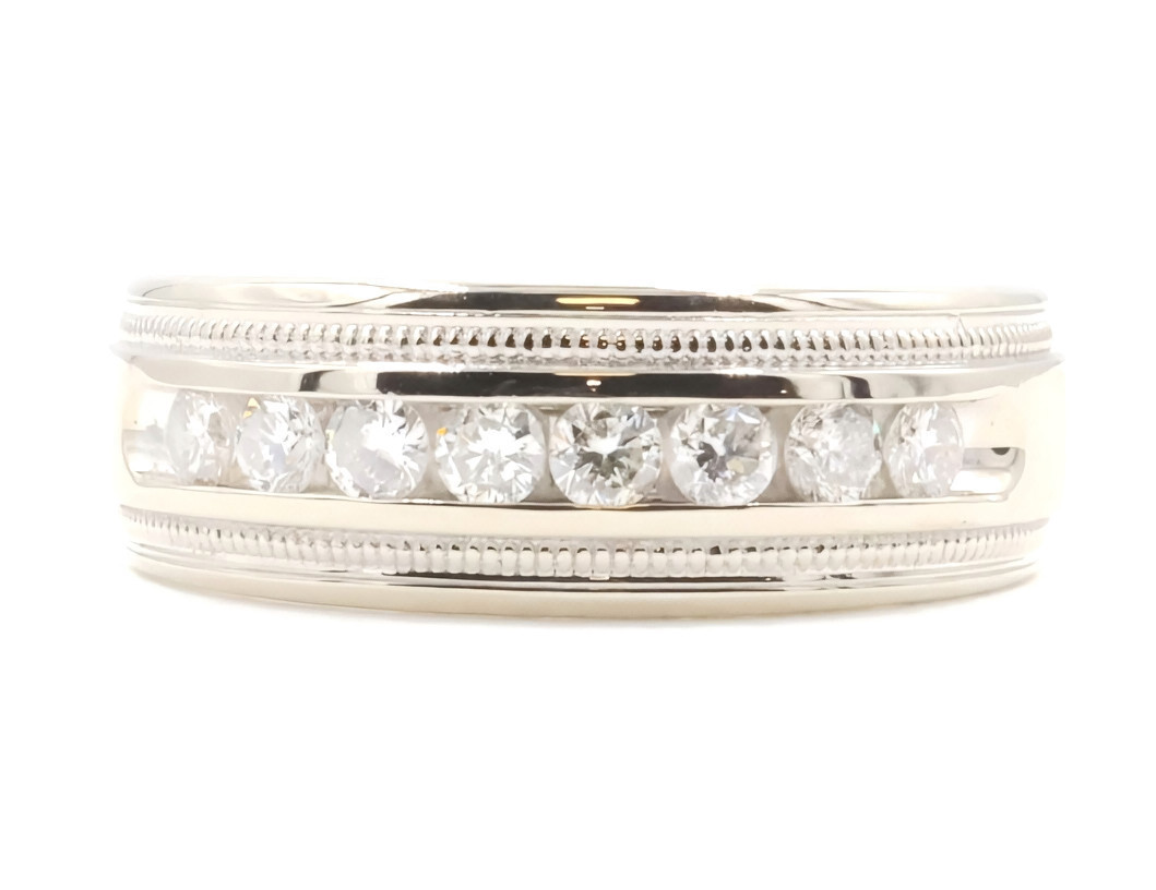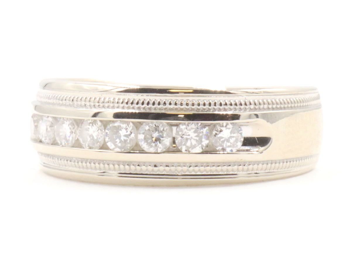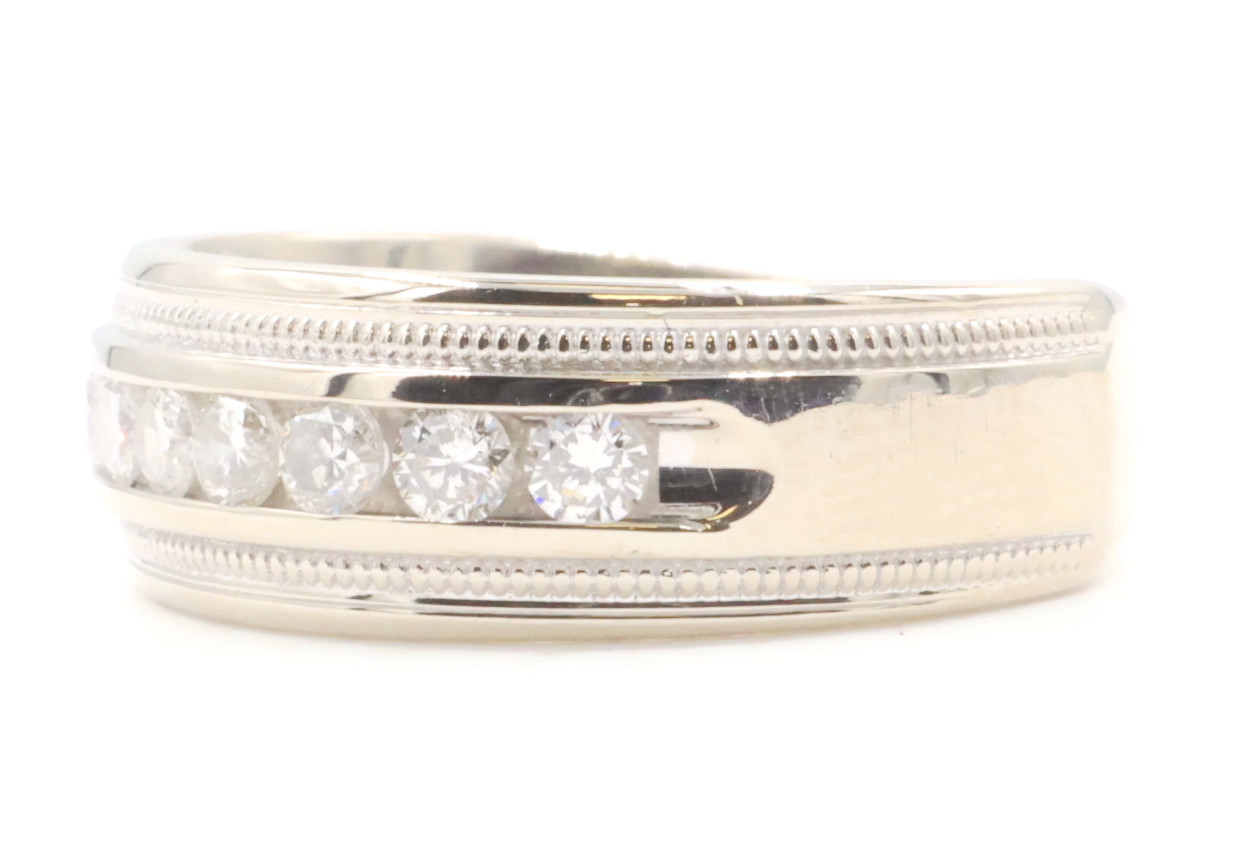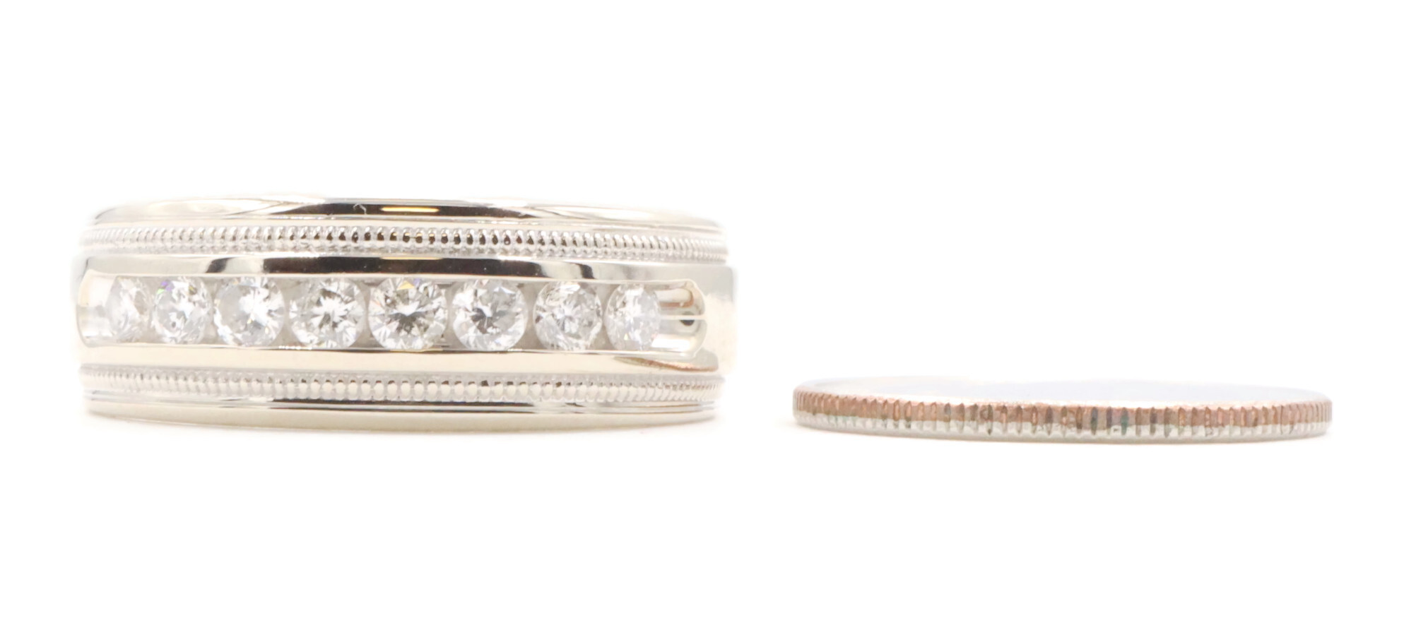 0.55 ctw Round Diamond 14KT White Gold 7.5mm Channel Band Milgrain Wedding Band | USA Pawn