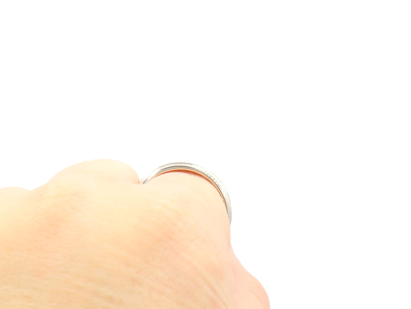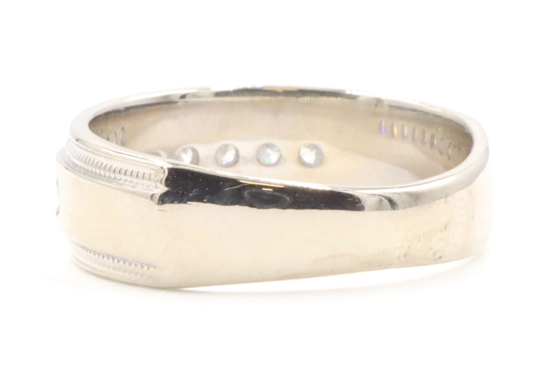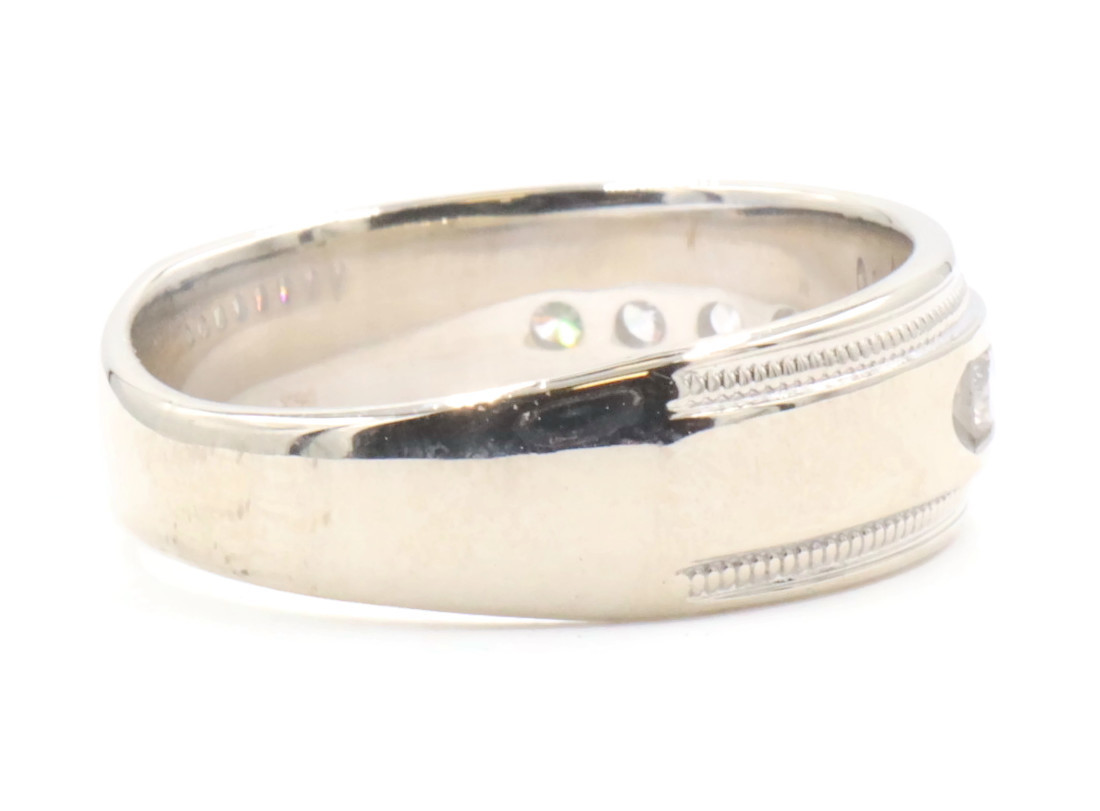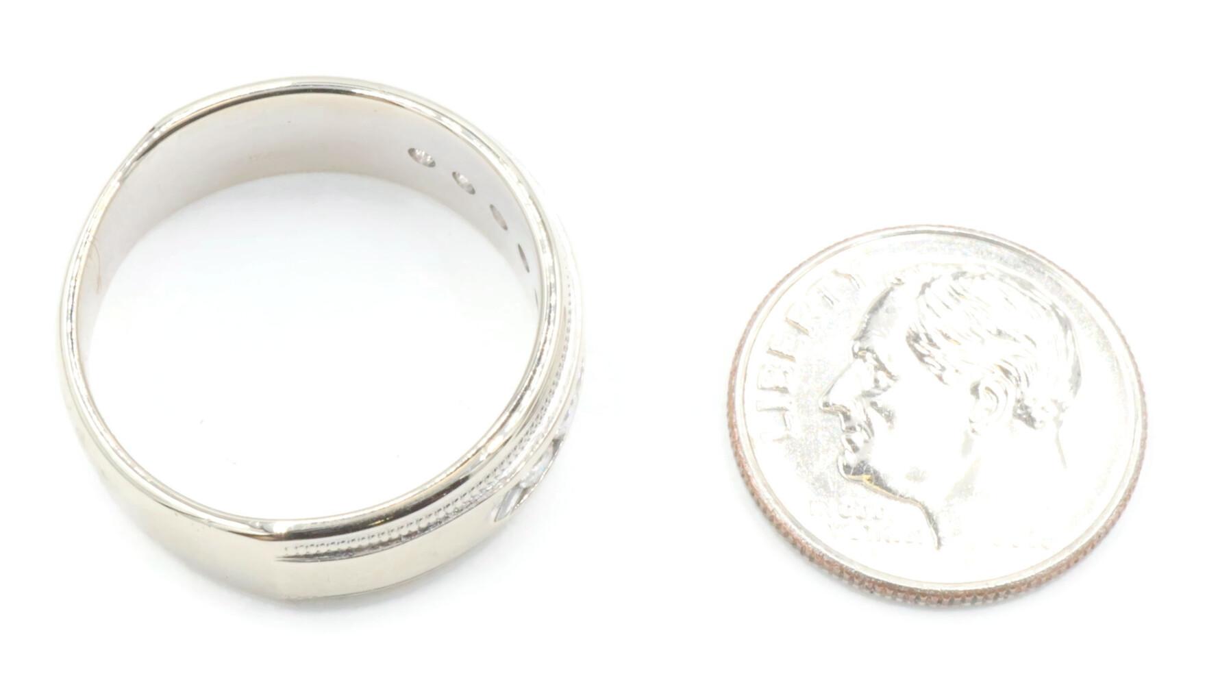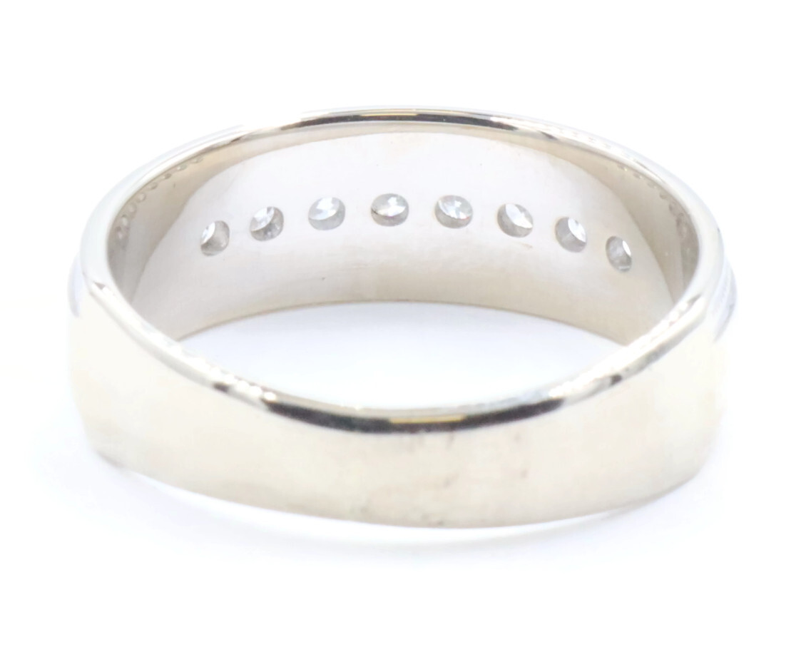 0.55 ctw Round Diamond 14KT White Gold 7.5mm Channel Band Milgrain Wedding Band. This ring is a size 9.