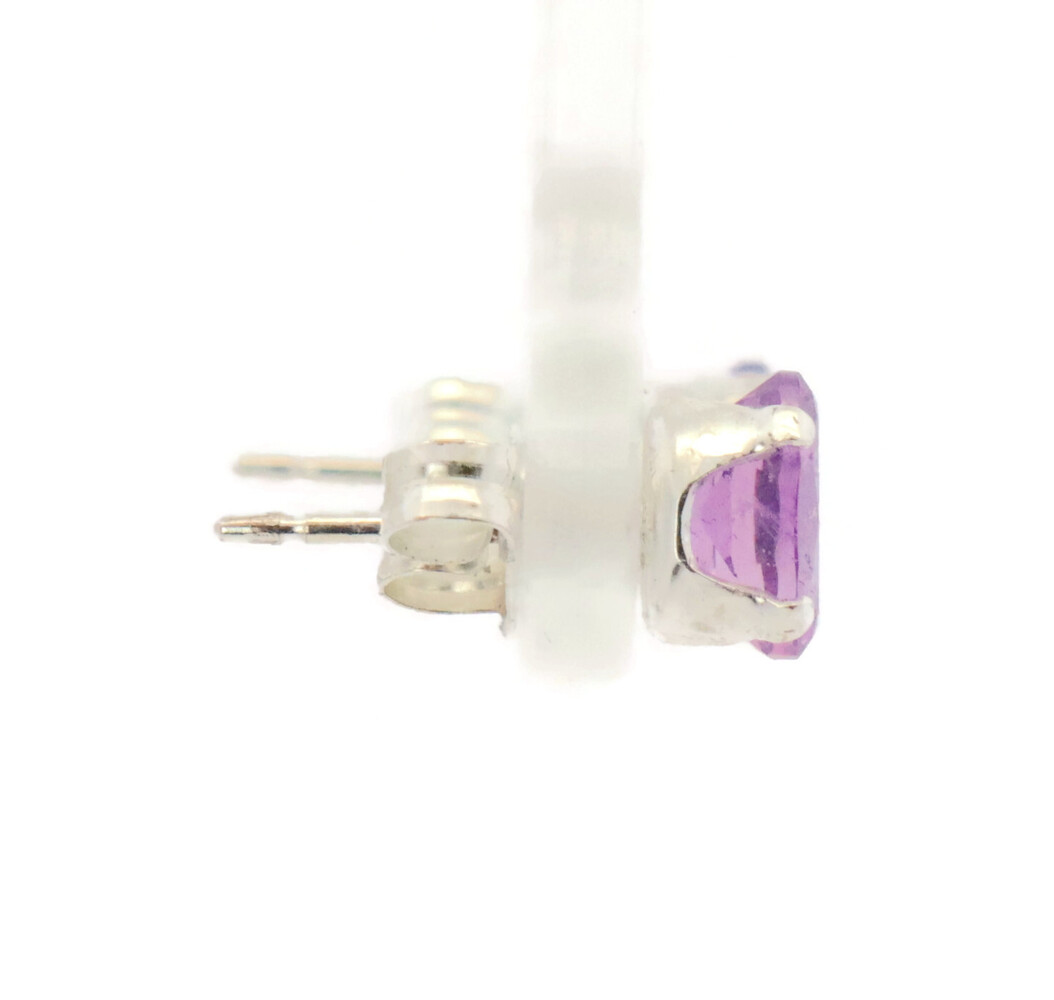 0.60 Ctw Oval Cut Amethyst Gemstone 6.1mm Sterling Silver (925) Stud Earrings.