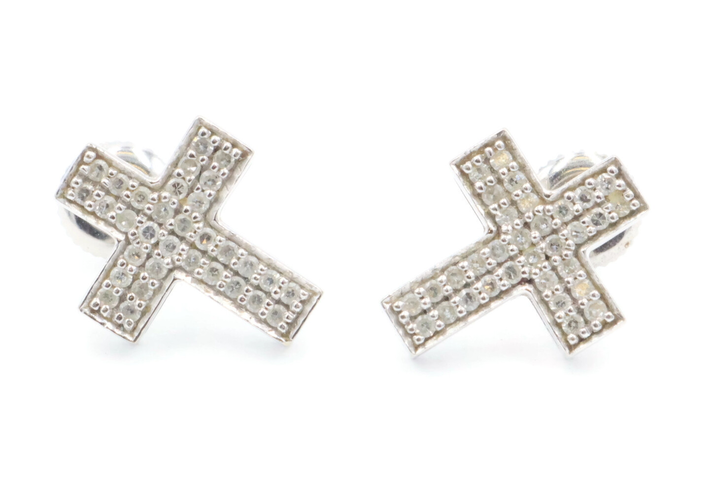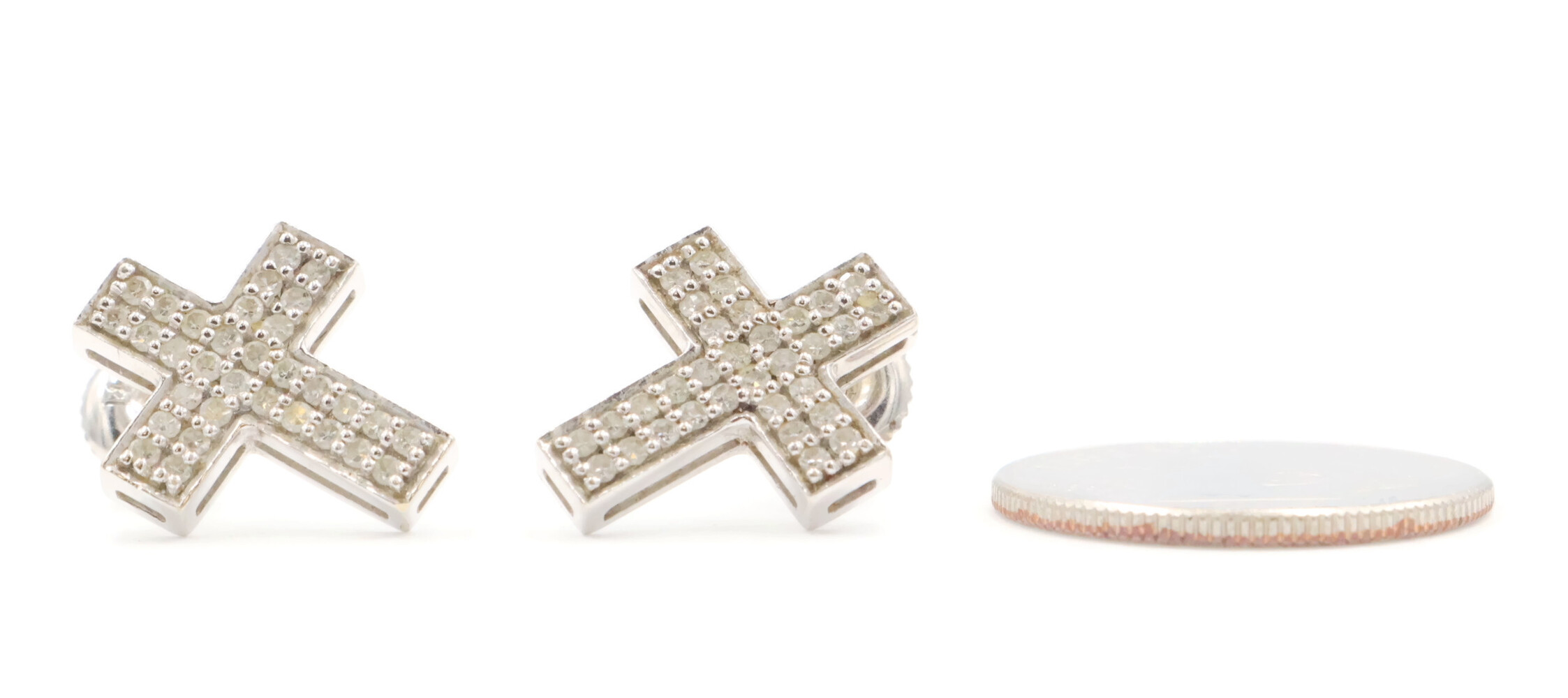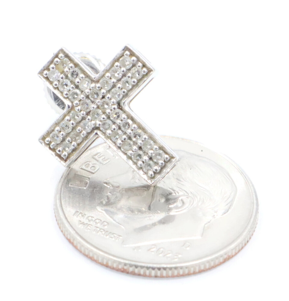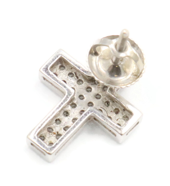 0.60 ctw Round Diamond Pave 14KT White Gold Screw Back Cross Stud Earrings 2.95g. These earrings are 14KT white gold and come with 14KT white gold earring backs.