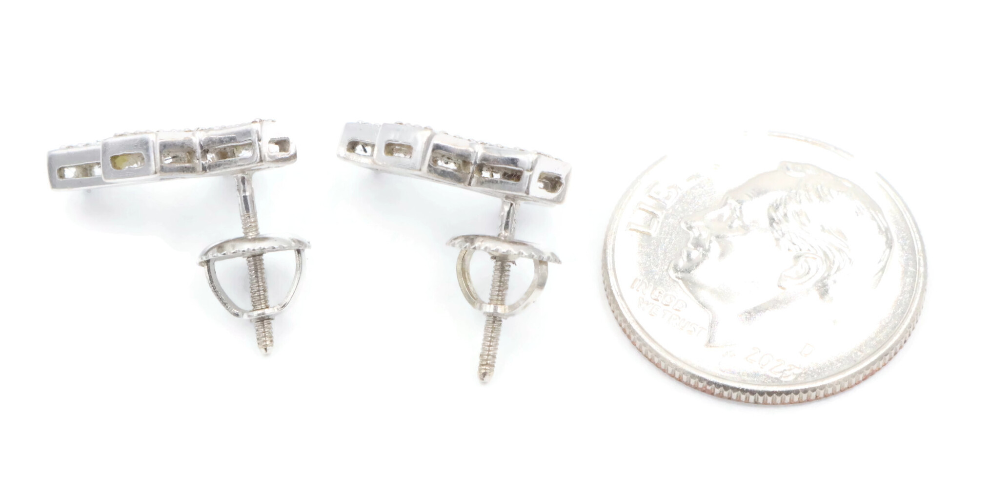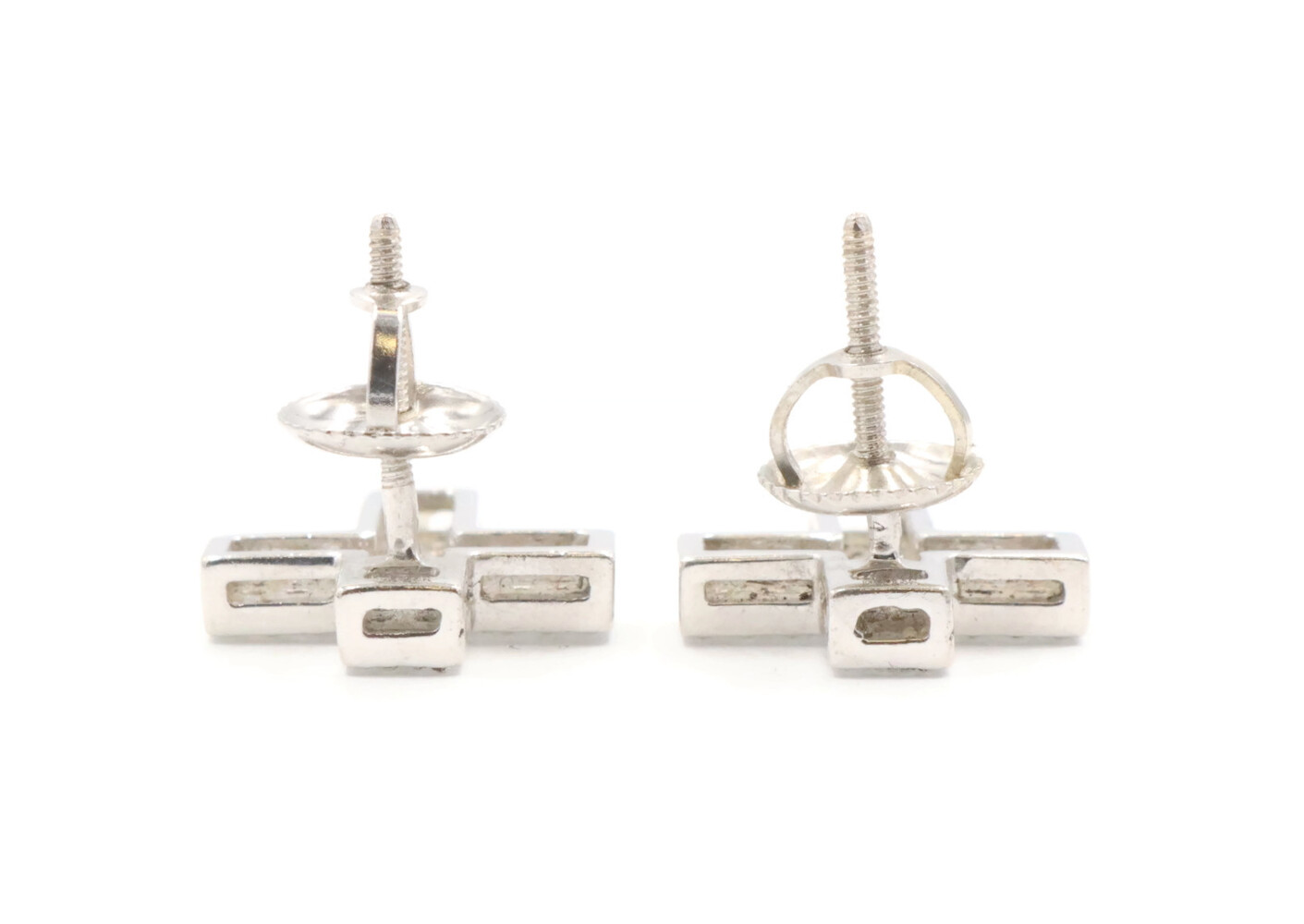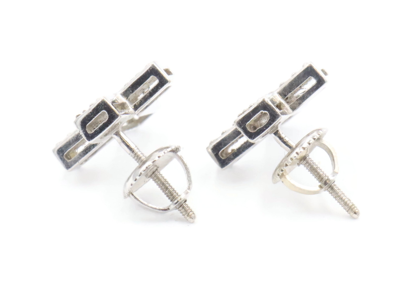 0.60 ctw Round Diamond Pave 14KT White Gold Screw Back Cross Stud Earrings 2.95g. These earrings are 14KT white gold and come with 14KT white gold earring backs.