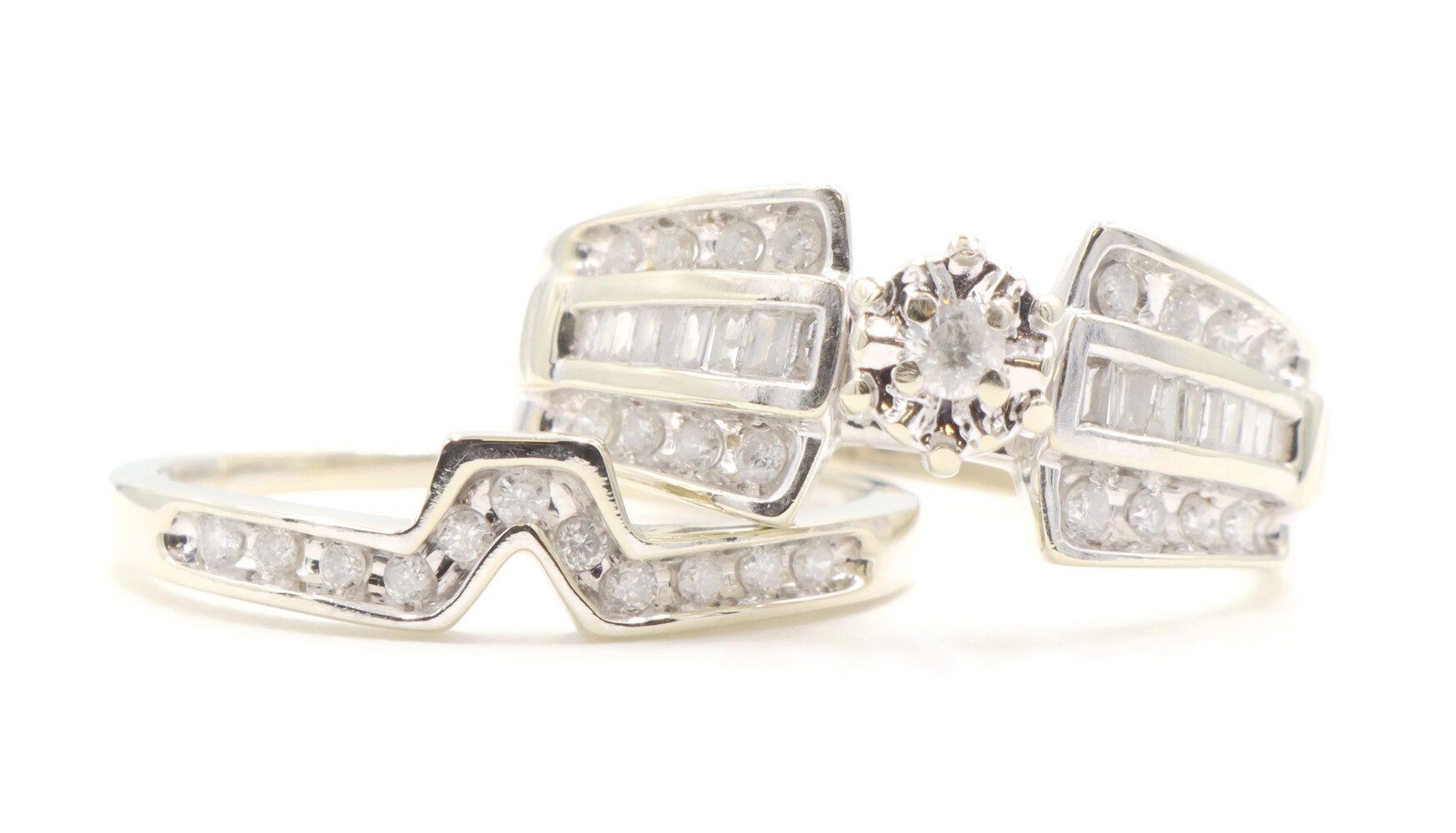 0.65 ctw Round and Baguette Channel Set 14KT White Gold Women's Wedding Ring Set | USA Pawn