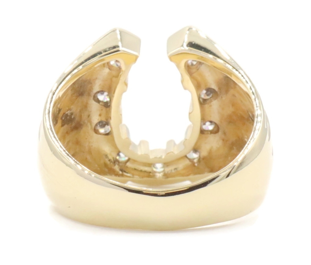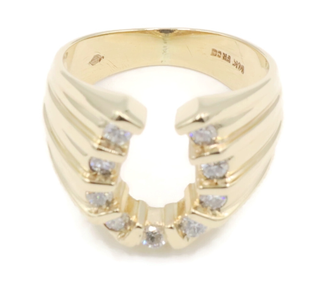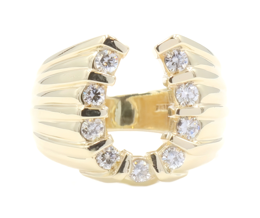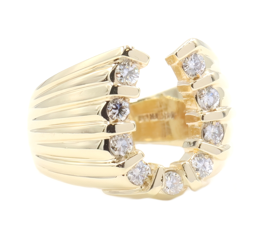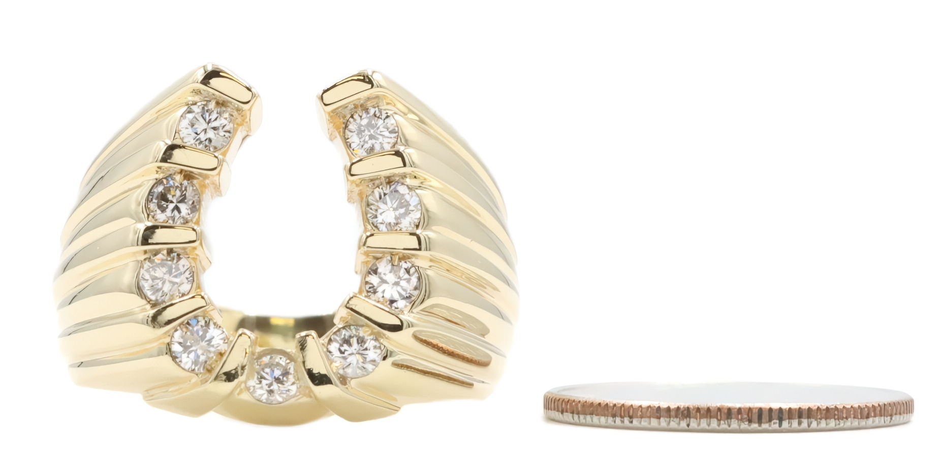 0.72 ctw Round Diamond 14KT Yellow Gold Men's Ribbed Horseshoe Estate Ring | USA Pawn