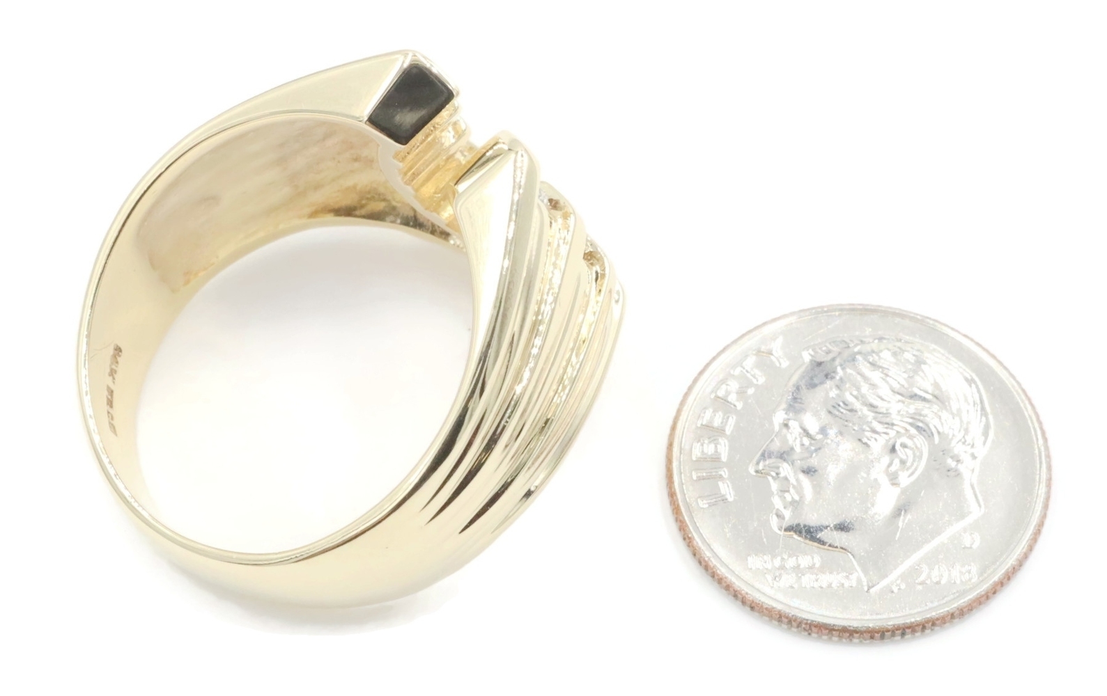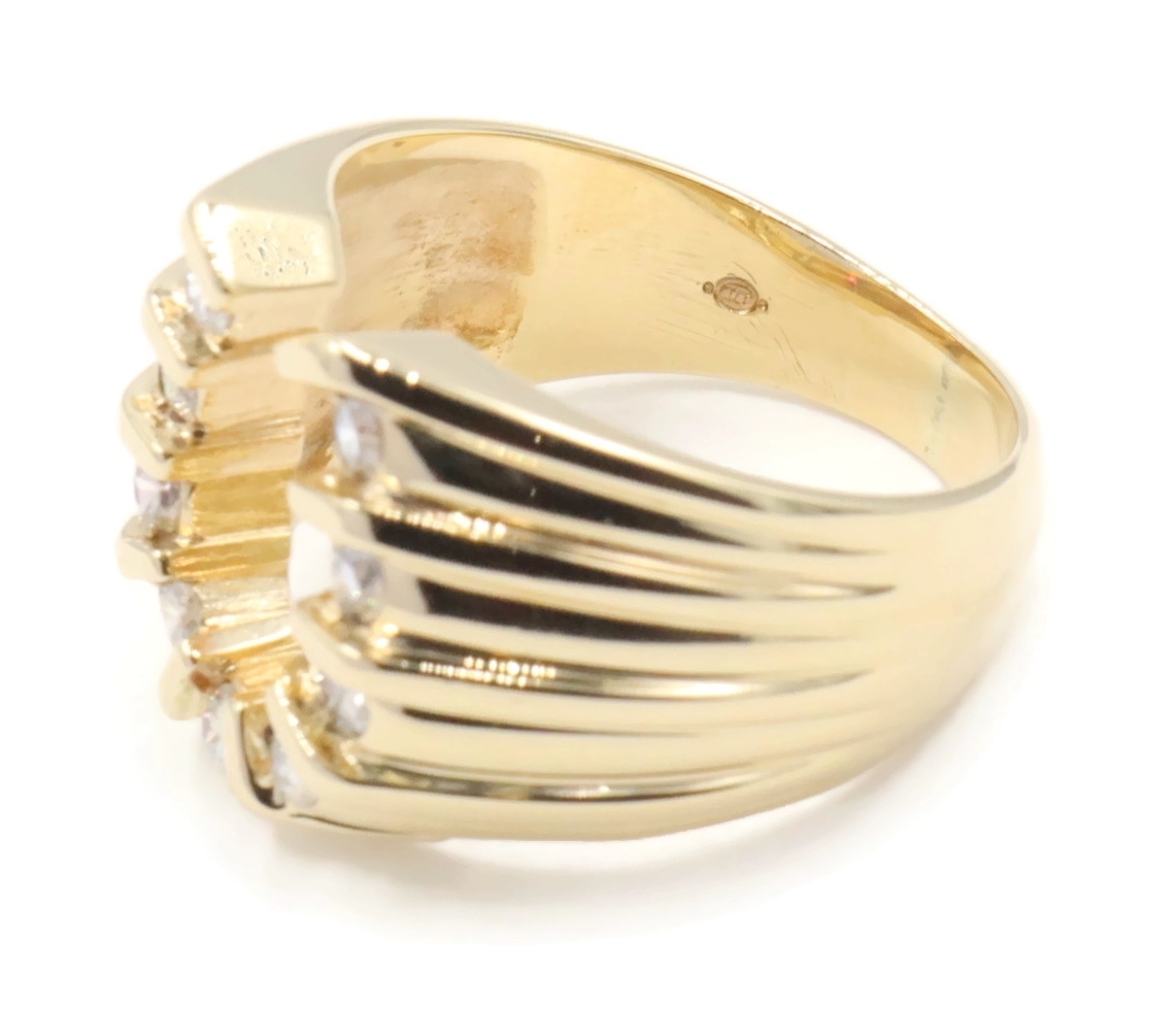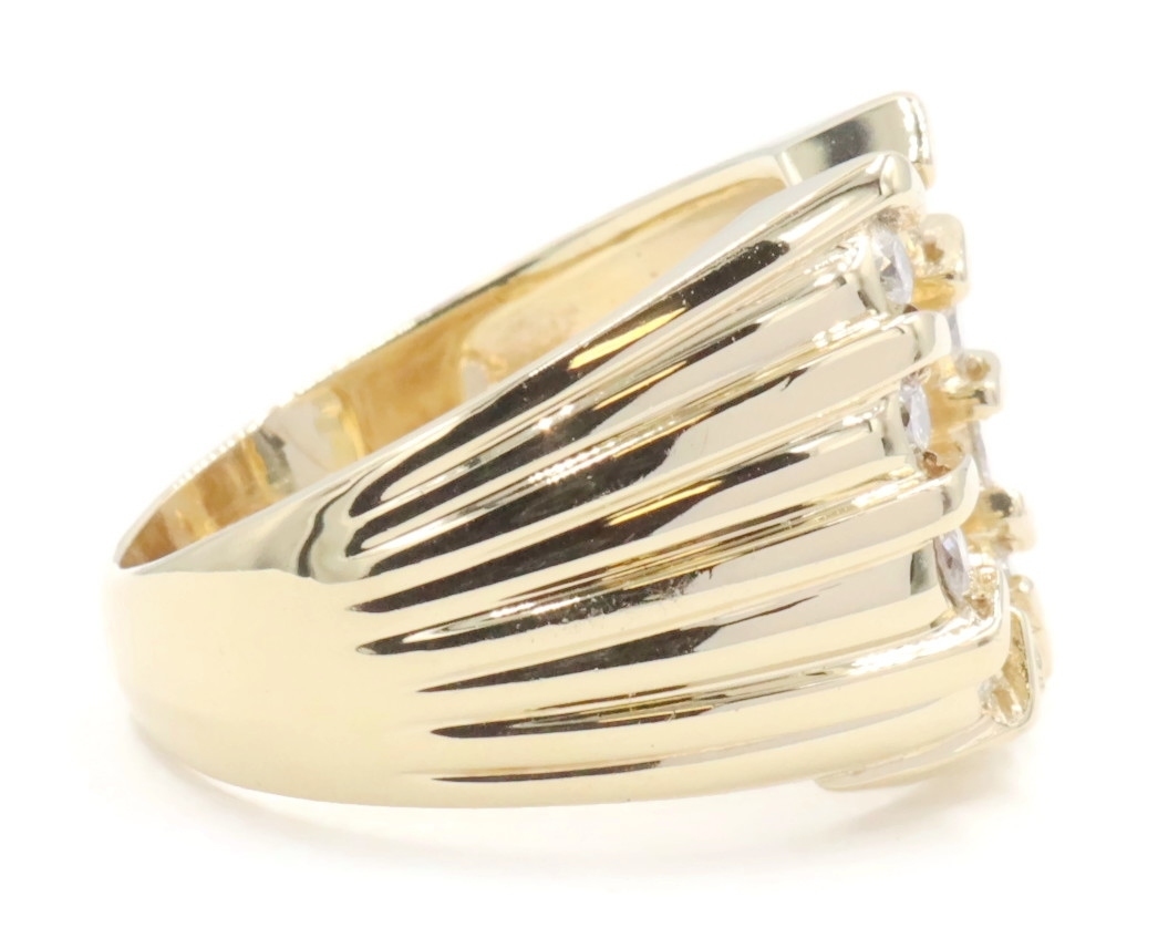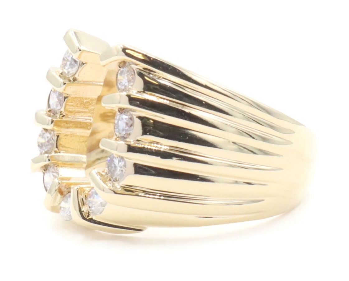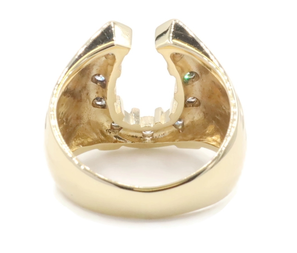 0.72 ctw Round Diamond 14KT Yellow Gold Men's Ribbed Horseshoe Estate Ring | USA Pawn