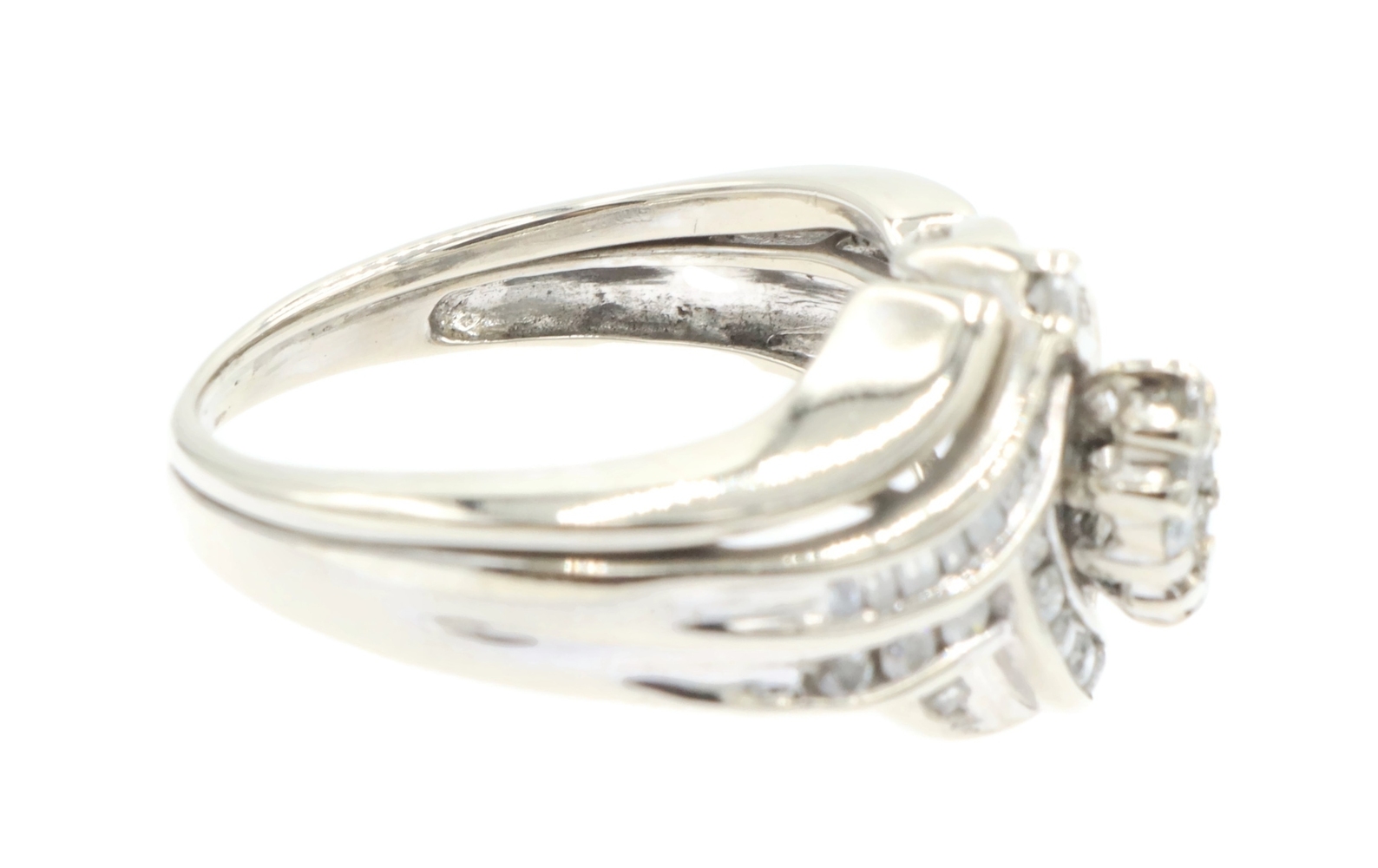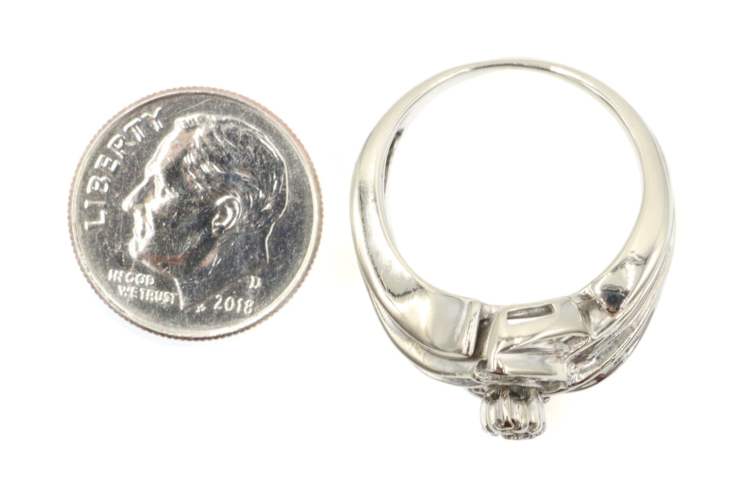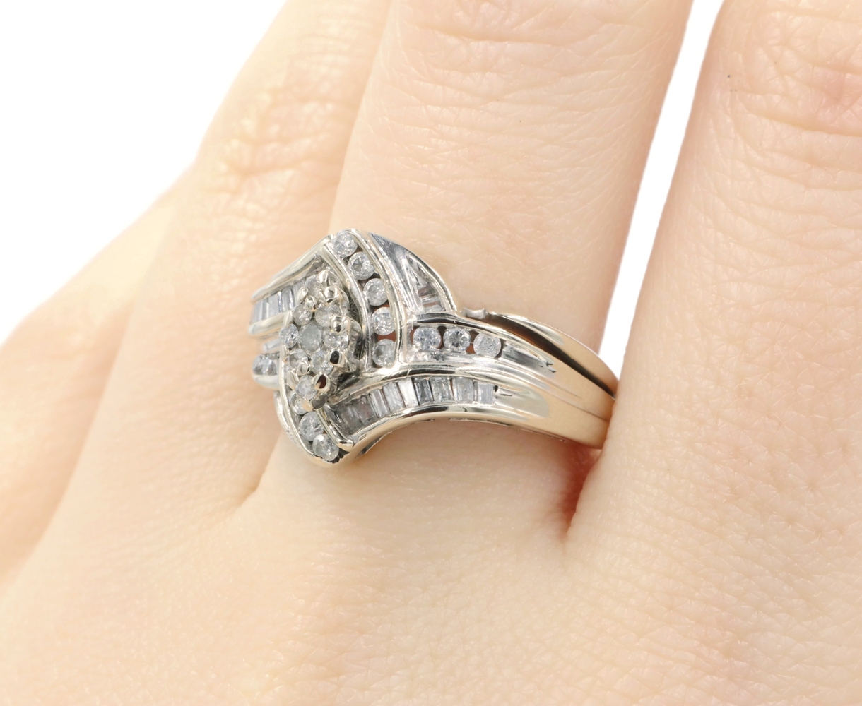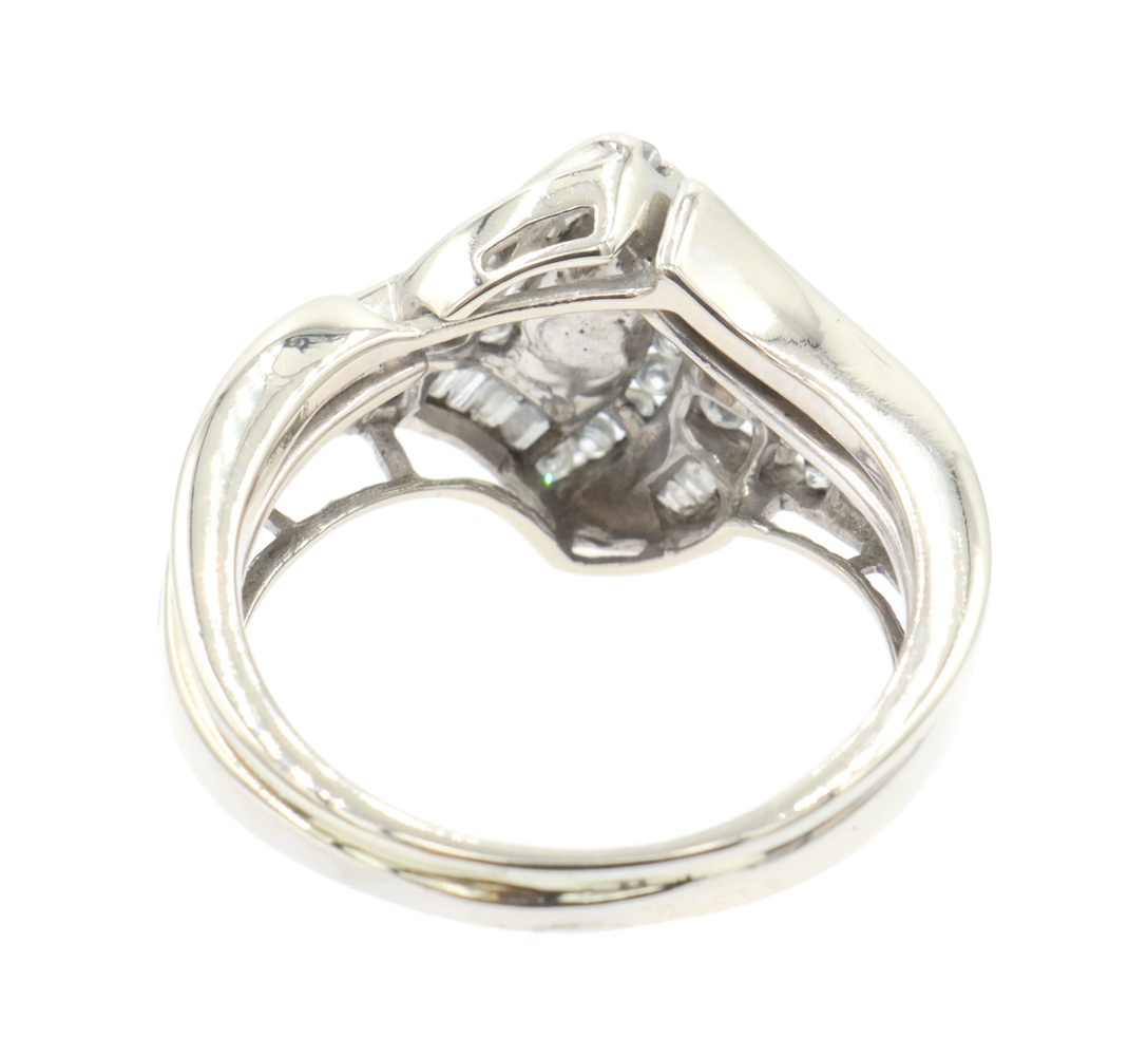 0.73 Ctw Round & Baguette Diamond 10KT White Gold Soldered Wedding Ring Set 5.5g. This wedding ring set is a size 7 and the bands have been soldered together.