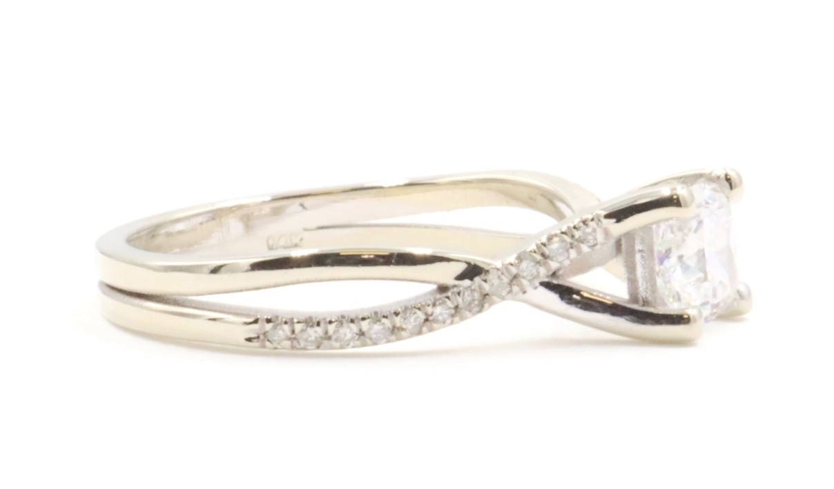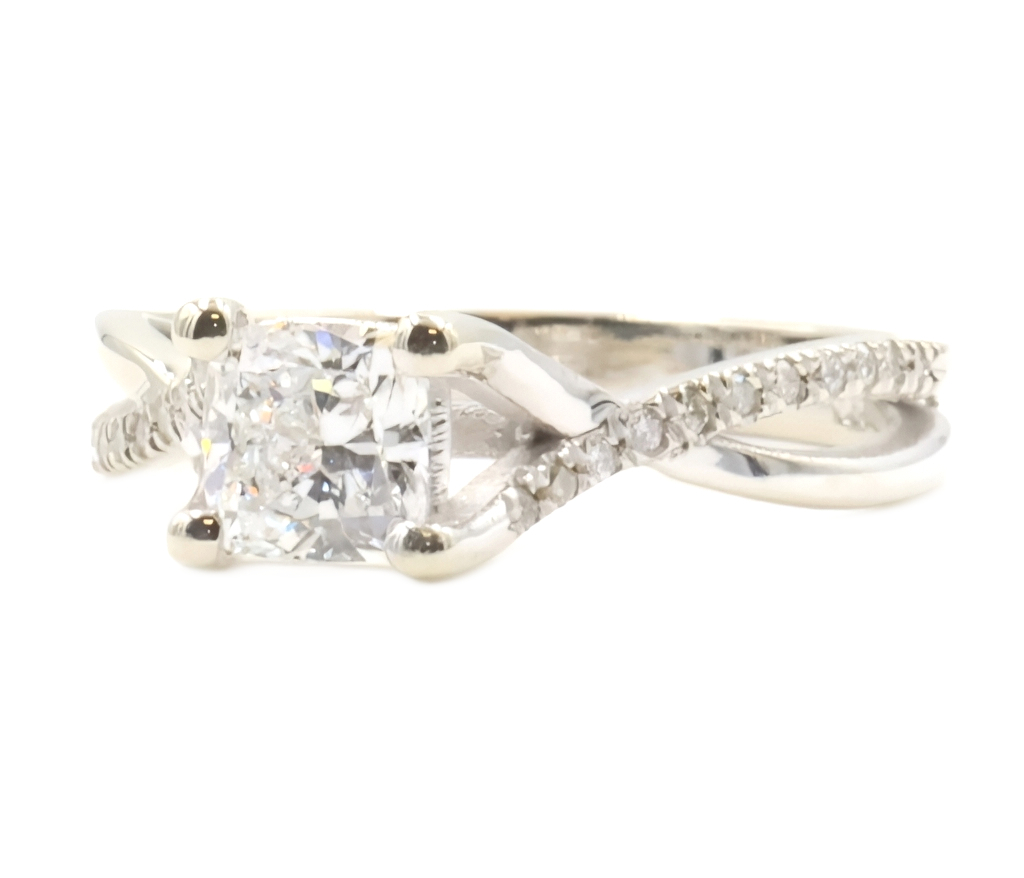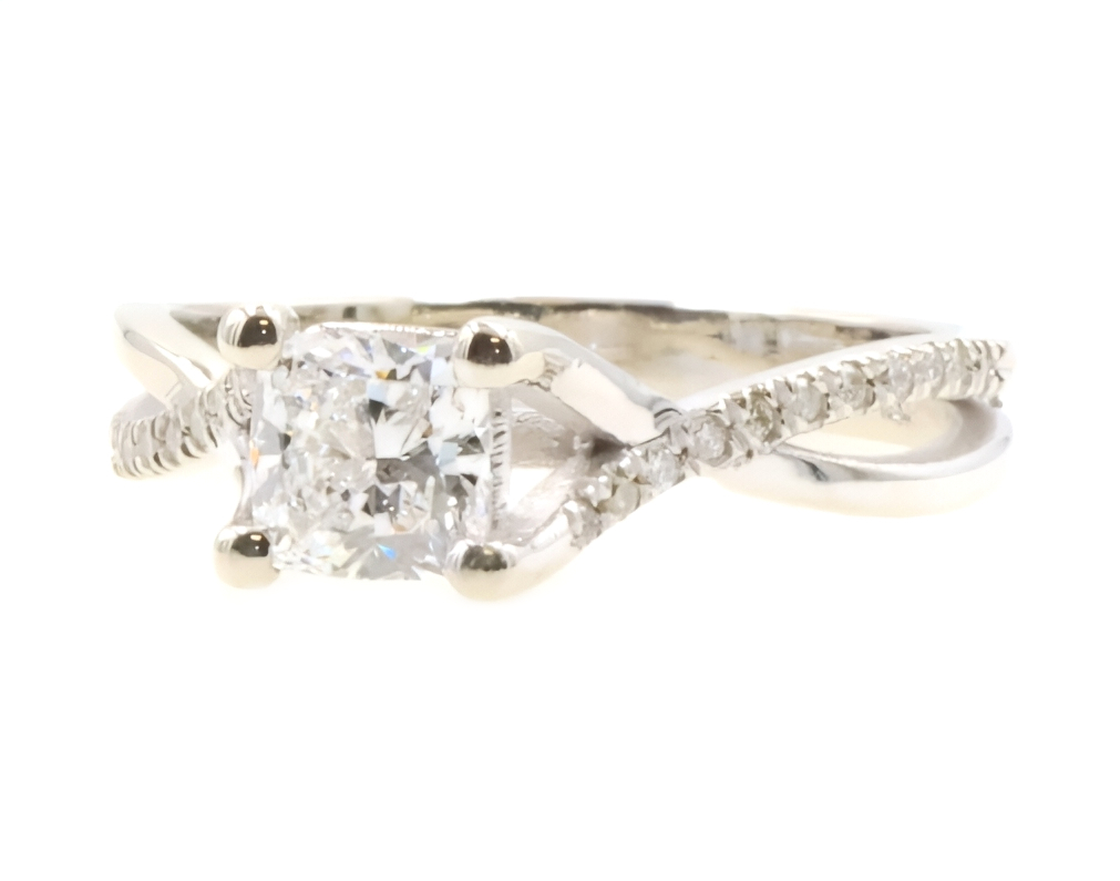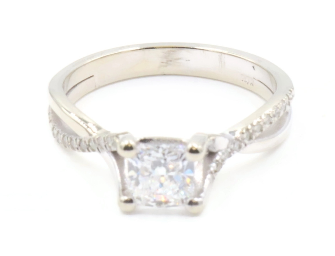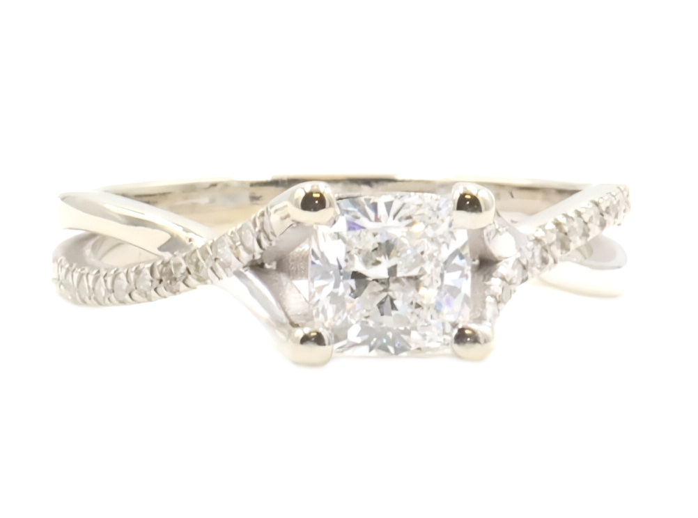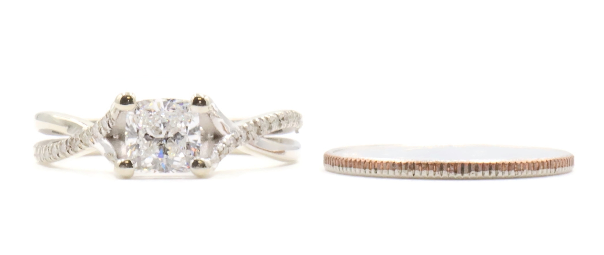 0.80 ctw Cushion Cut Lab Grown Diamond & Natural Diamond 14KT White Gold Ring | USA Pawn