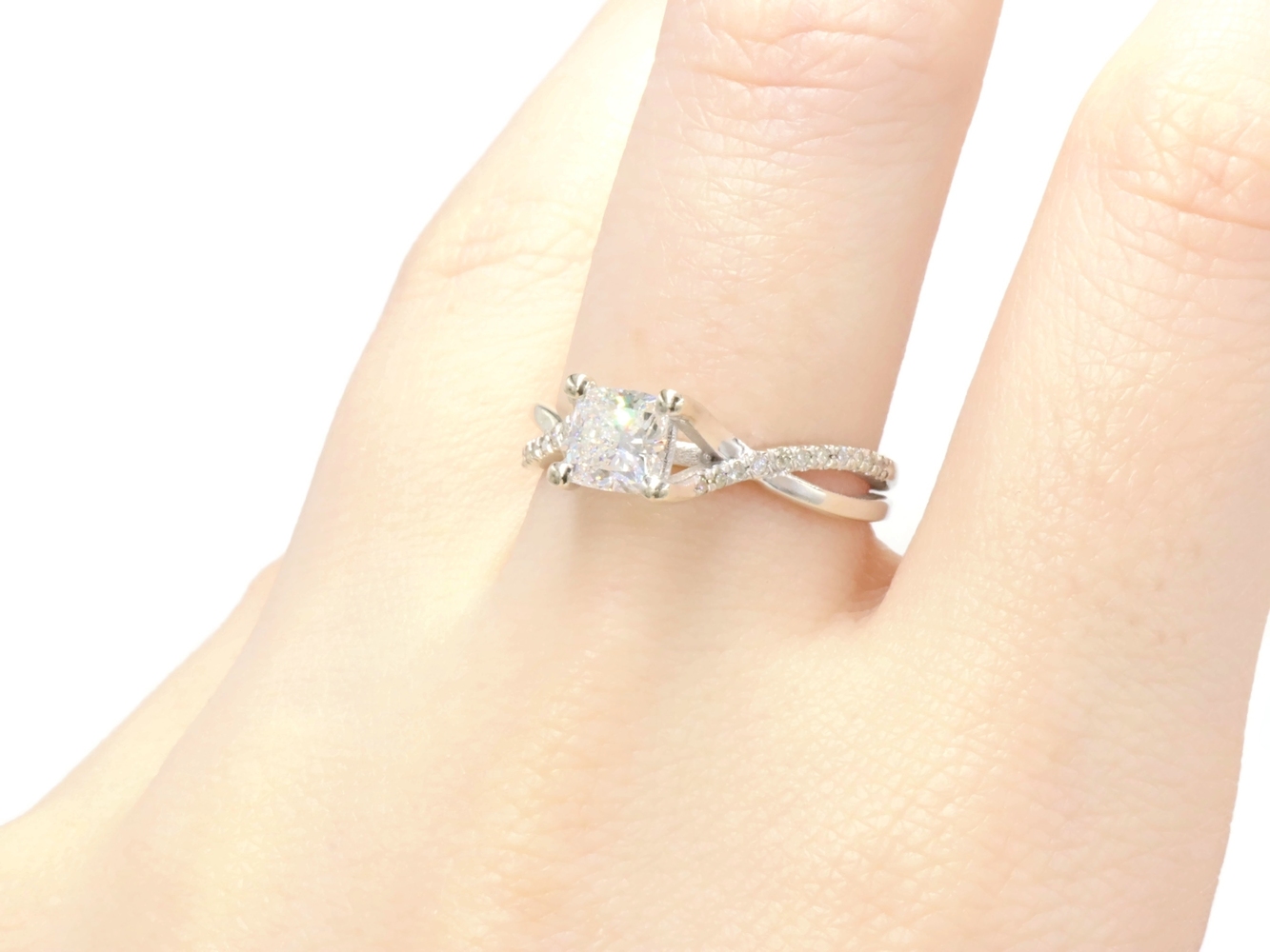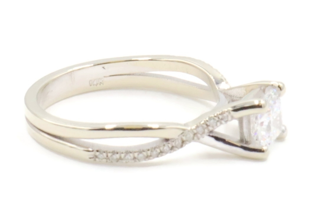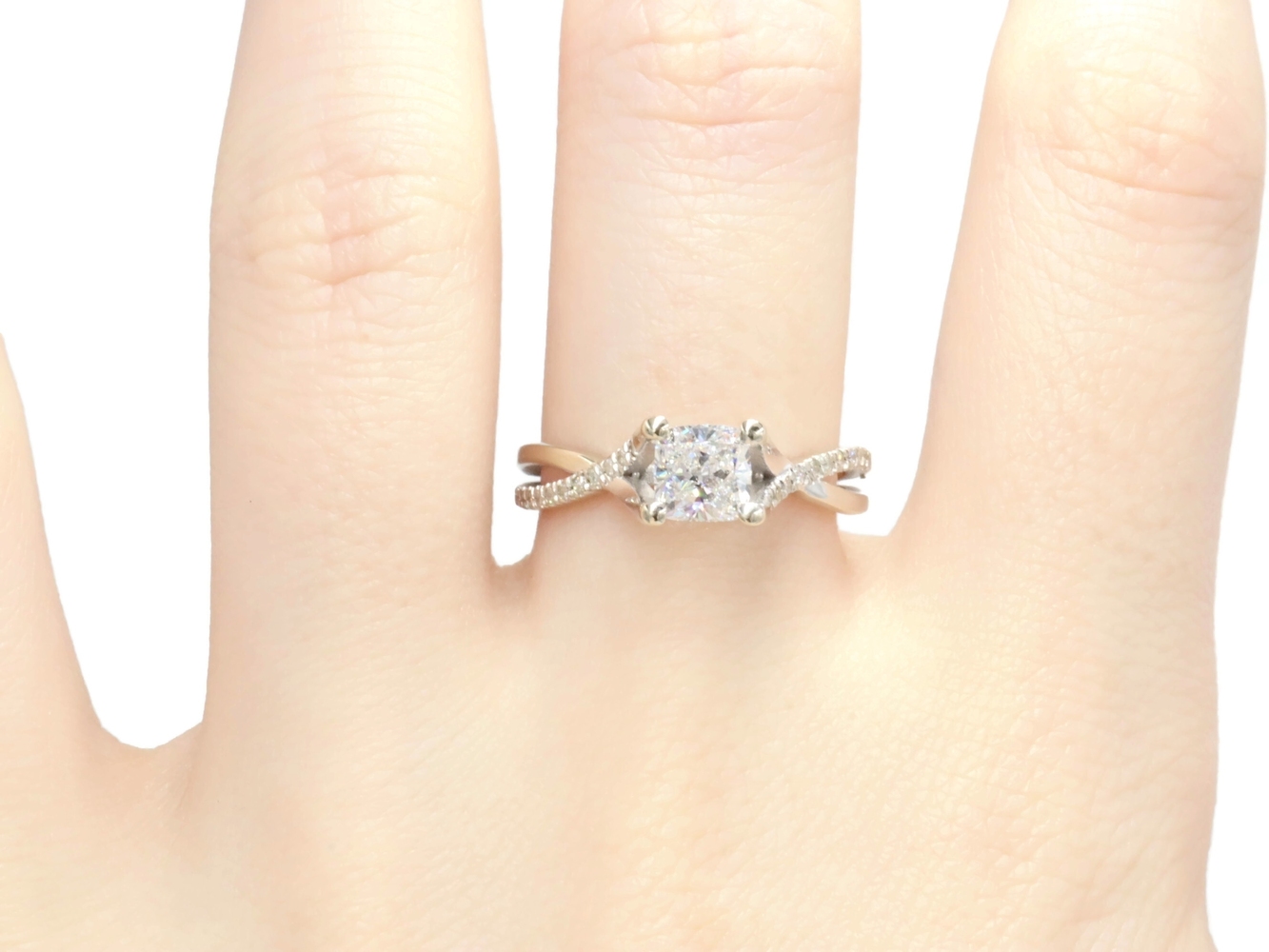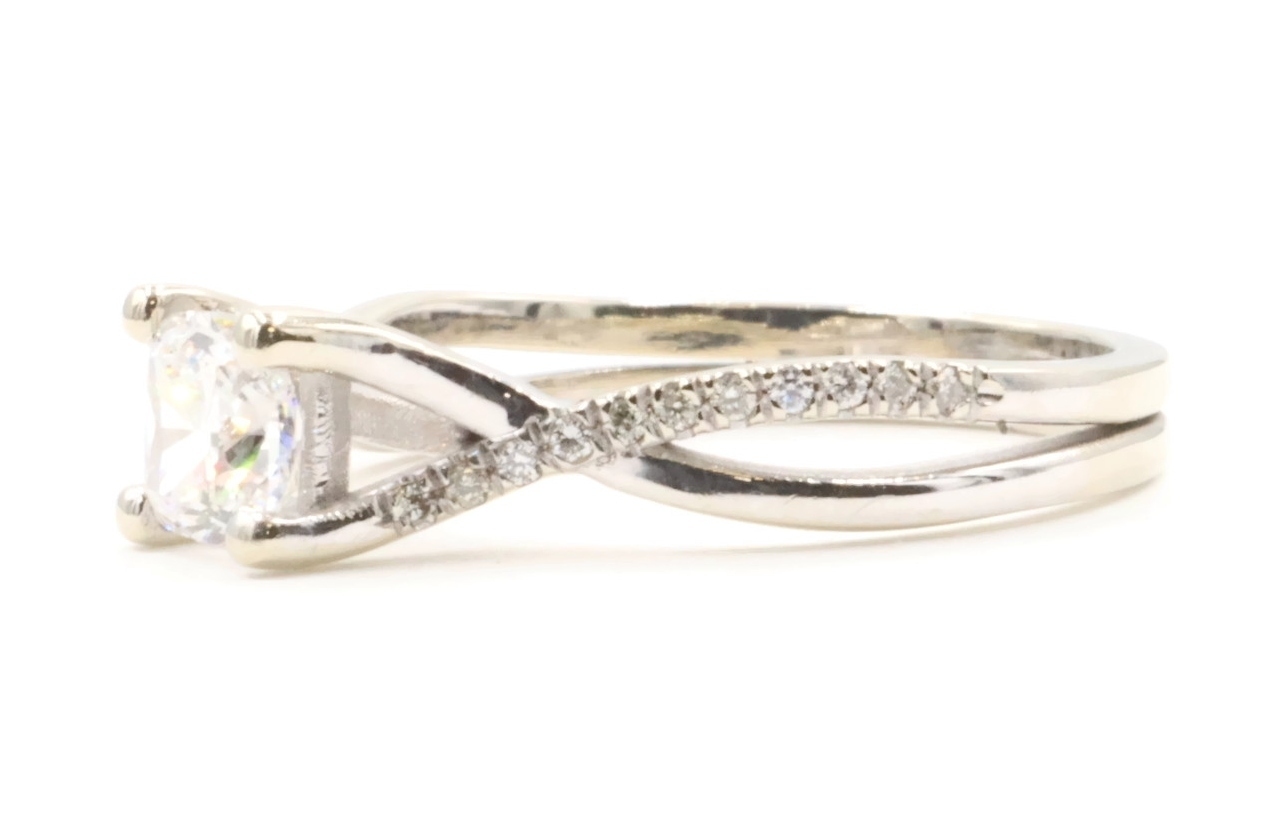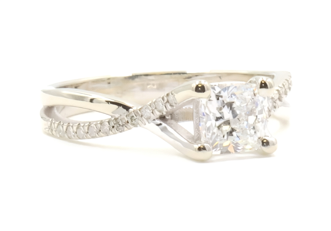 0.80 ctw Cushion Cut Lab Grown Diamond & Natural Diamond 14KT White Gold Ring | USA Pawn