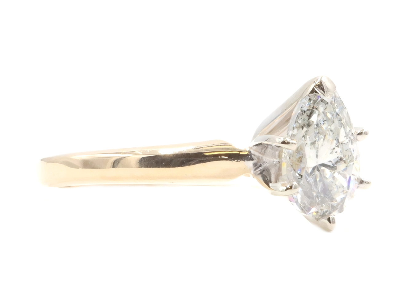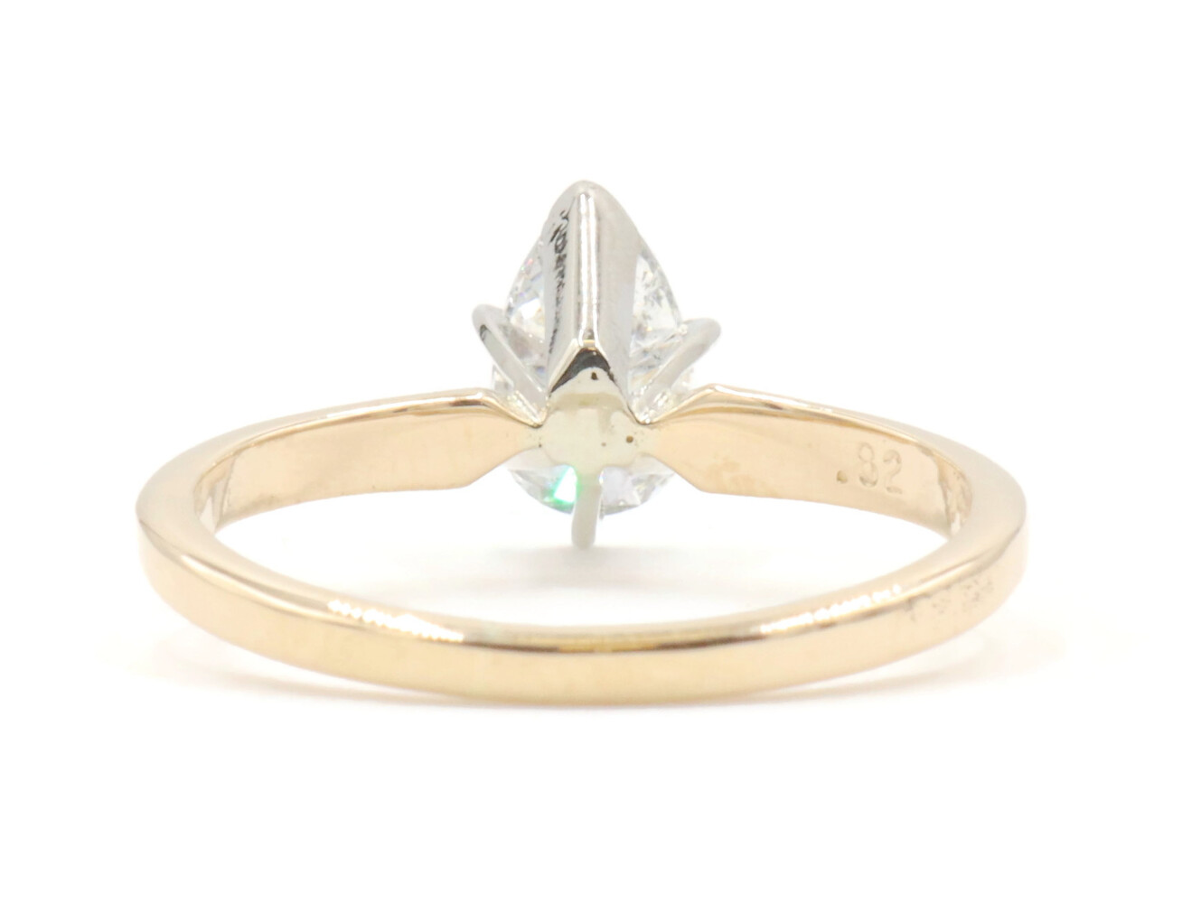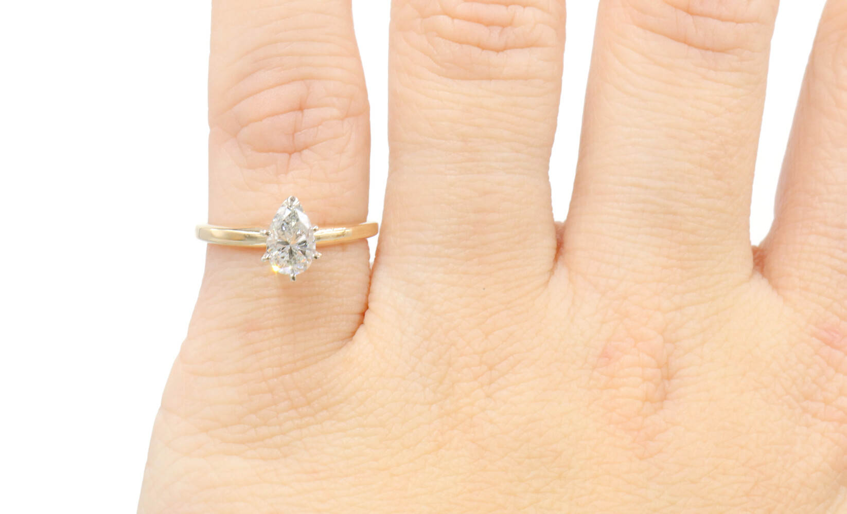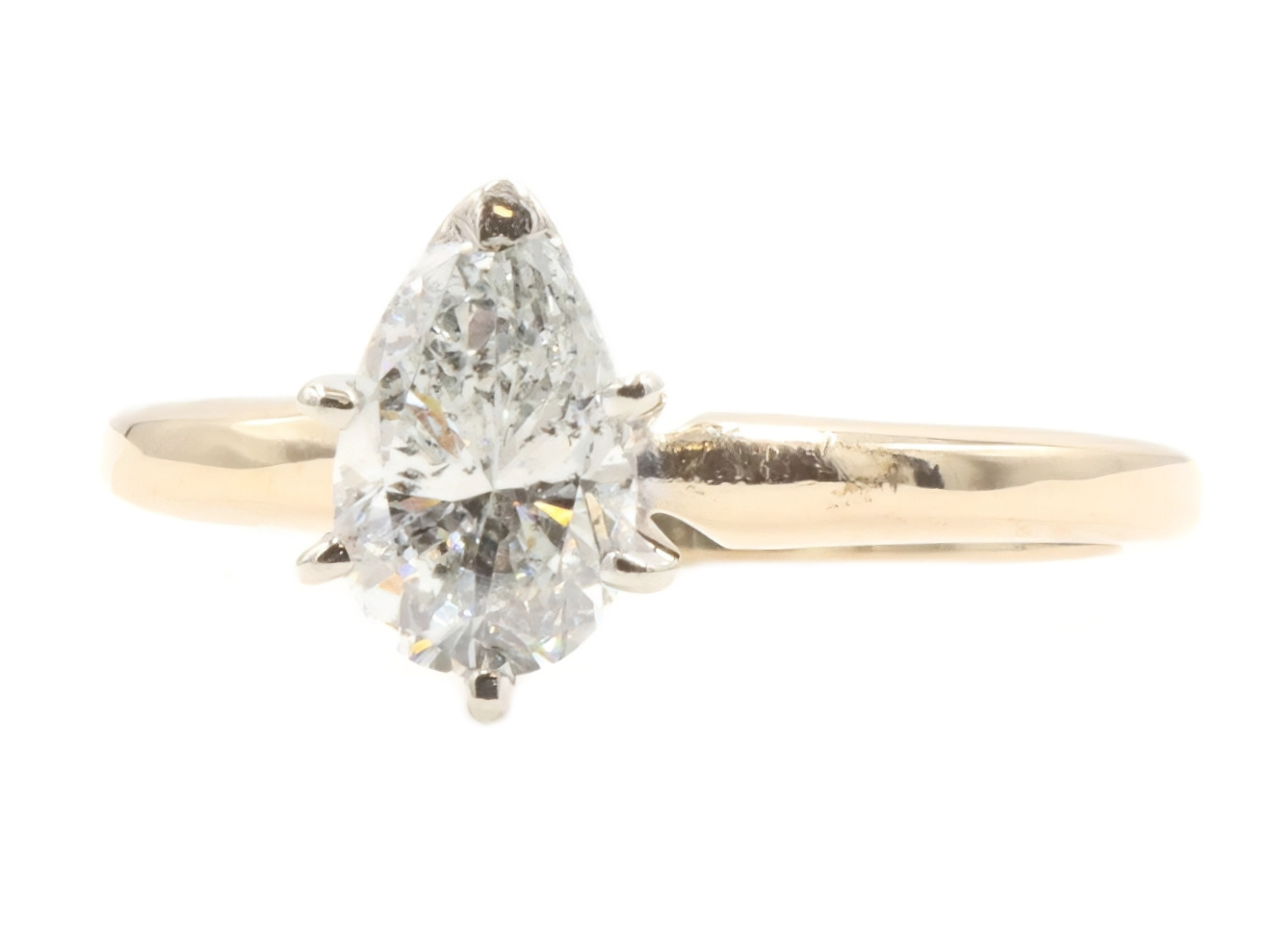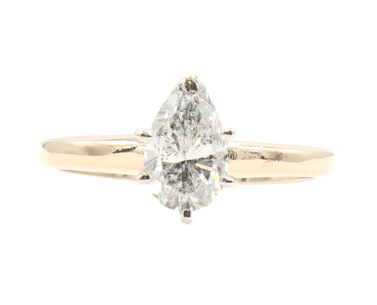 0.82 ctw Pear Cut Natural Diamond 14KT Yellow Gold Solitaire Engagement Ring. This ring is a size 5.