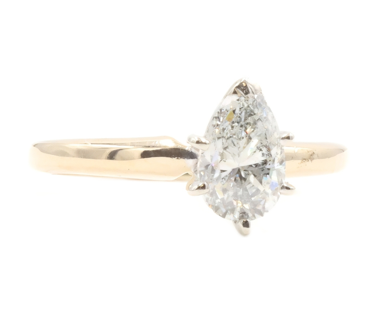 0.82 ctw Pear Cut Natural Diamond 14KT Yellow Gold Solitaire Engagement Ring | USA Pawn