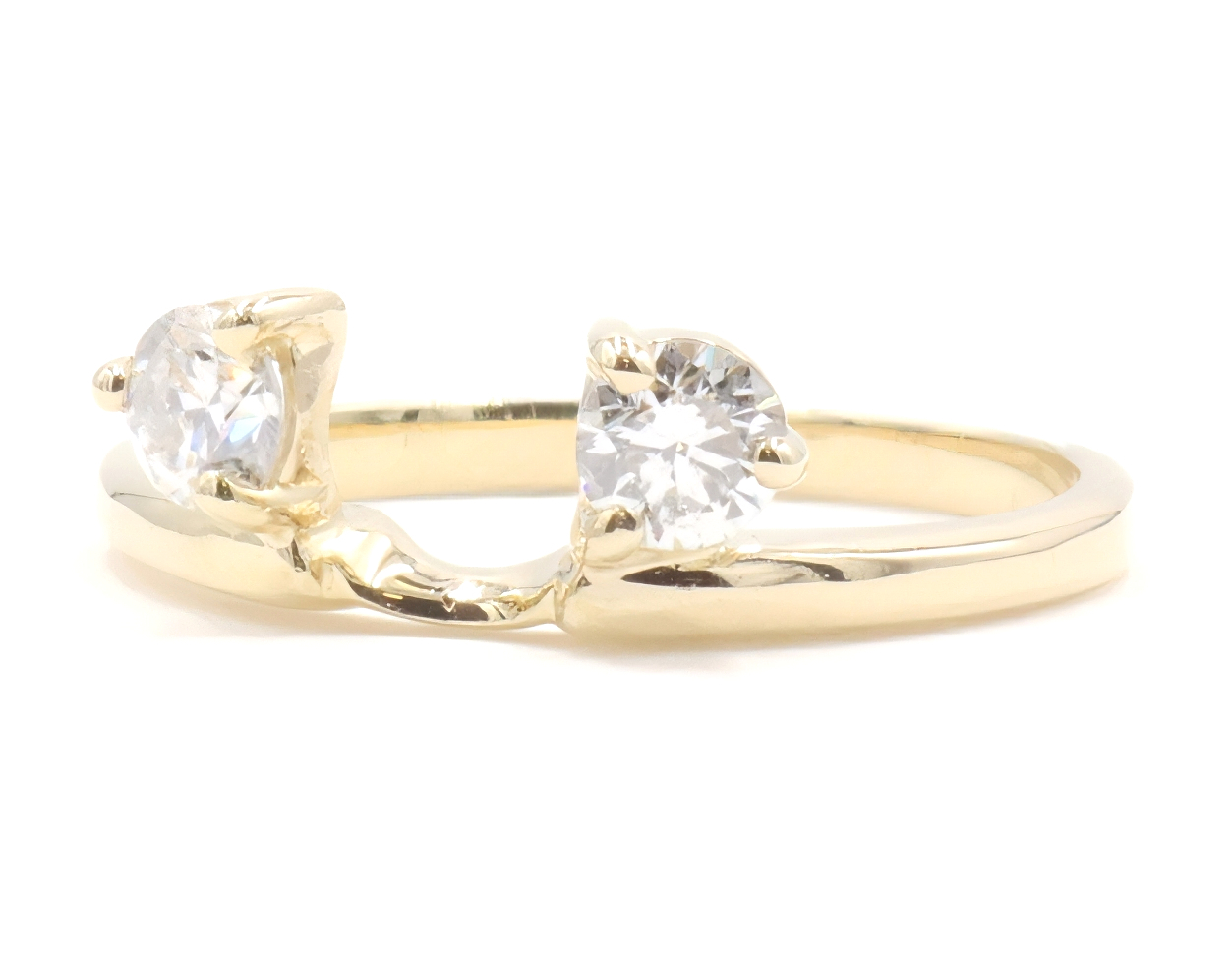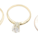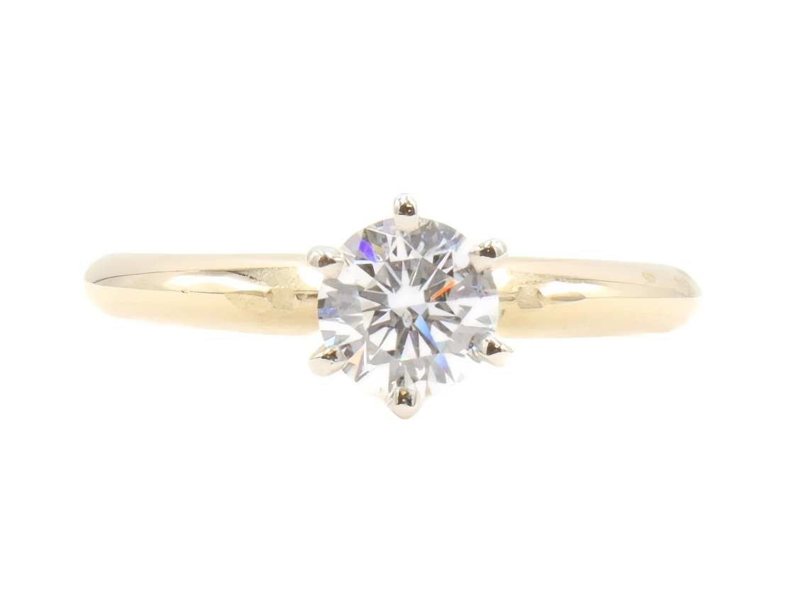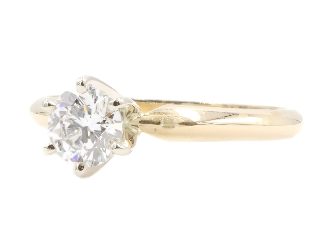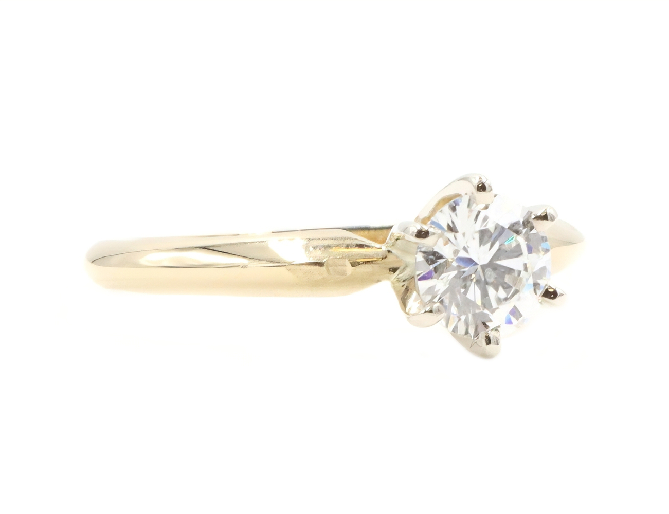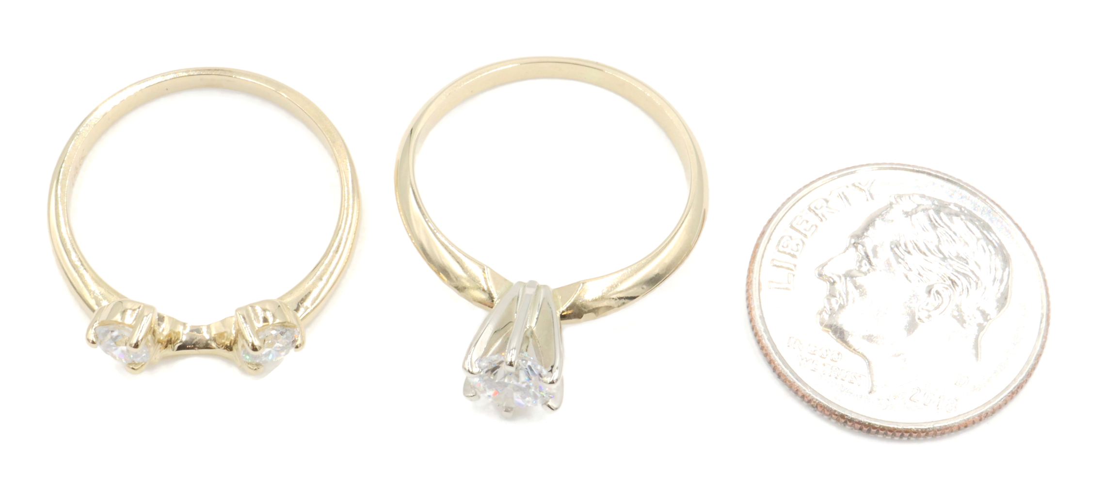 0.84 ctw Round Diamond Past Present Future 14Kt Yellow Gold Wedding Ring Set. Both the engagement ring and band ring are a size 5 1/4.