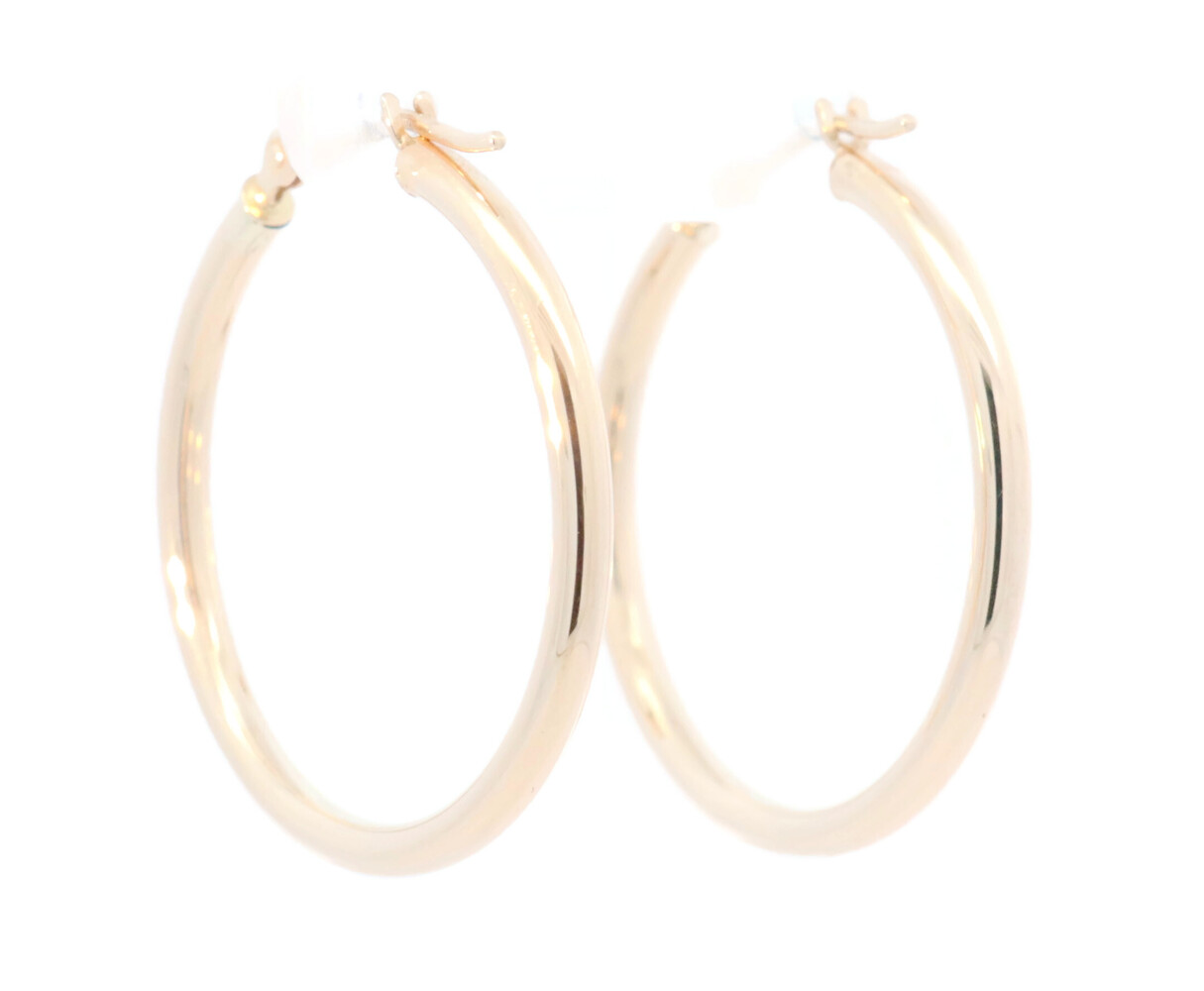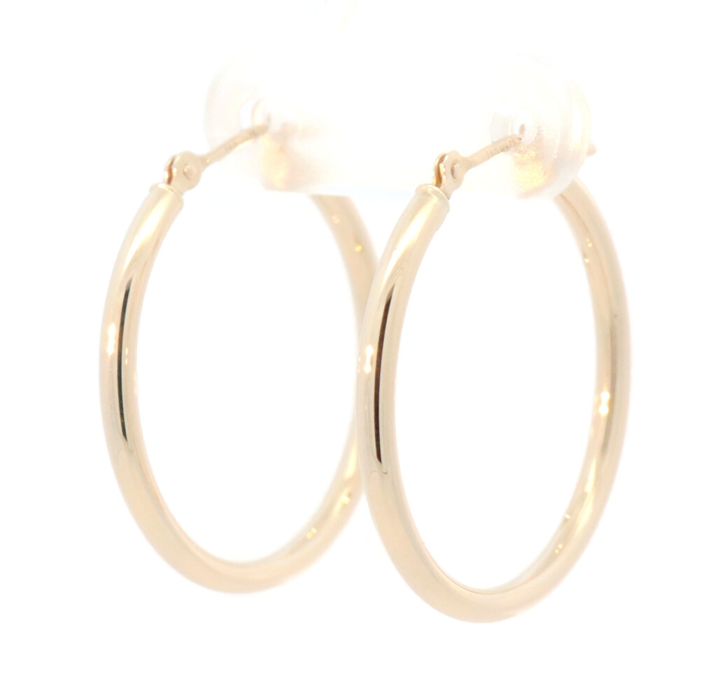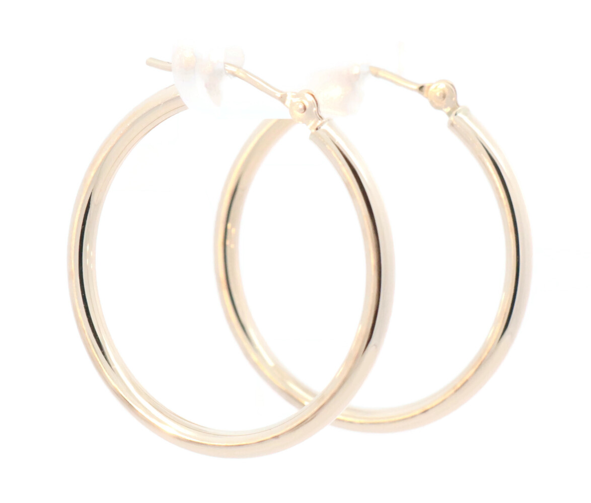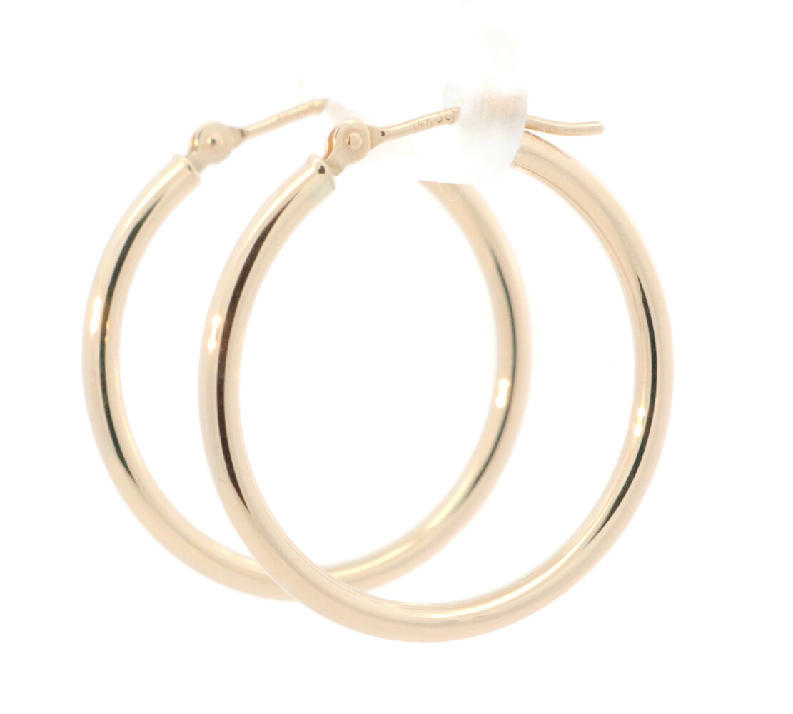 0.9" Small Estate 14KT Yellow Gold High Shine Round Hoop Earrings - 1.08g by JCM | USA Pawn
