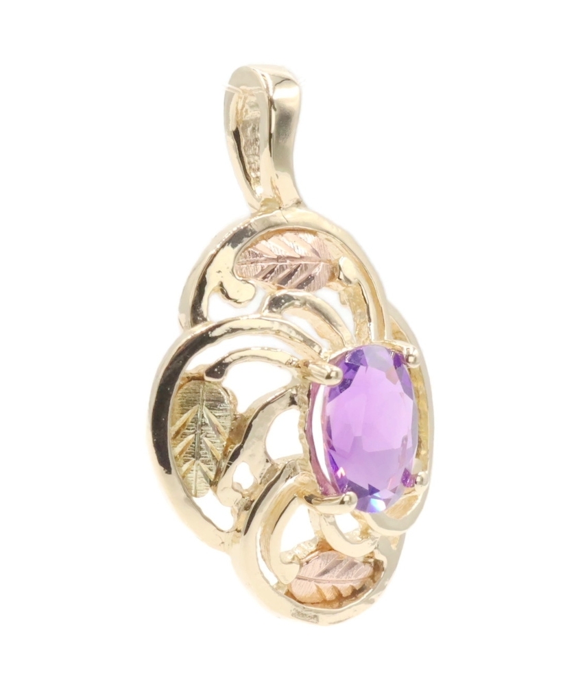 0.90 ctw Oval Purple Amethyst 10KT Black Hills Gold Yellow and Rose Gold Pendant