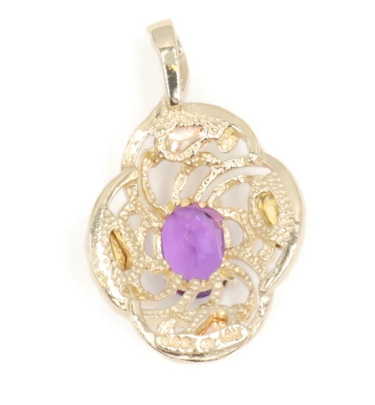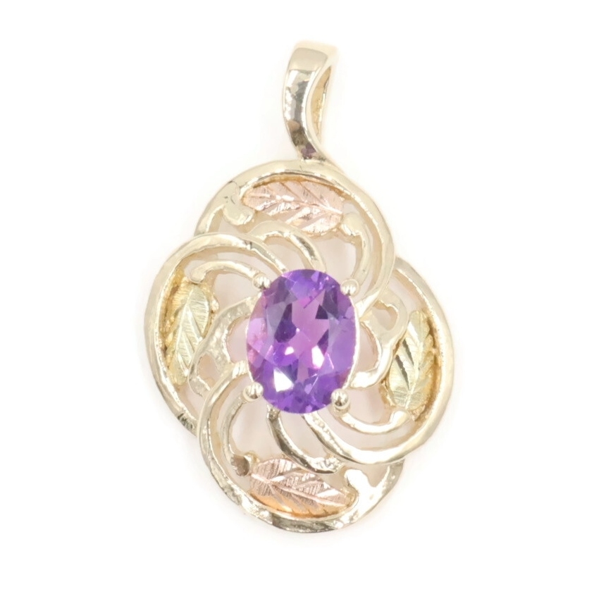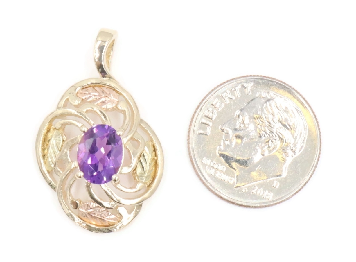 0.90 ctw Oval Purple Amethyst 10KT Black Hills Gold Yellow and Rose Gold Pendant | USA Pawn