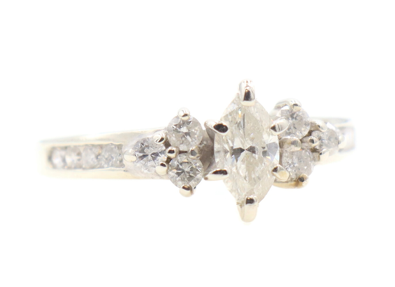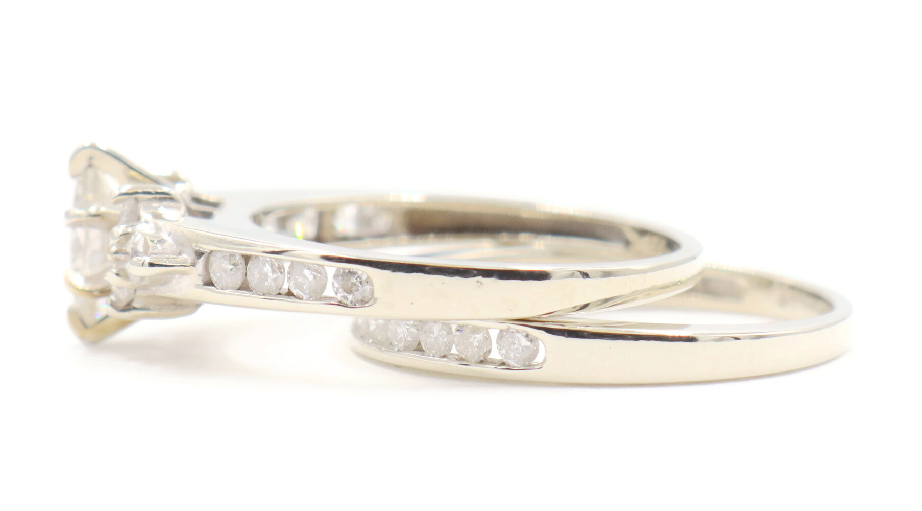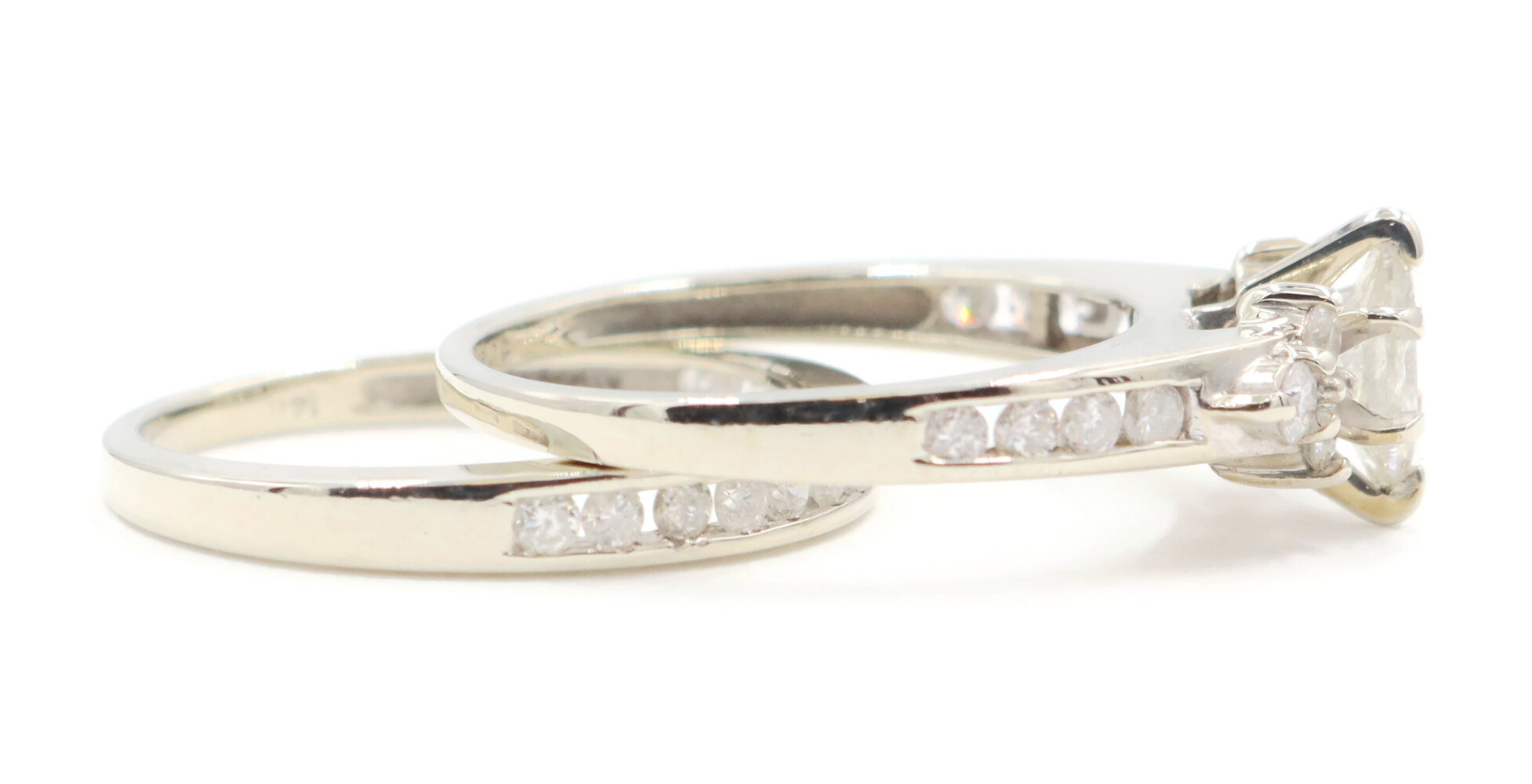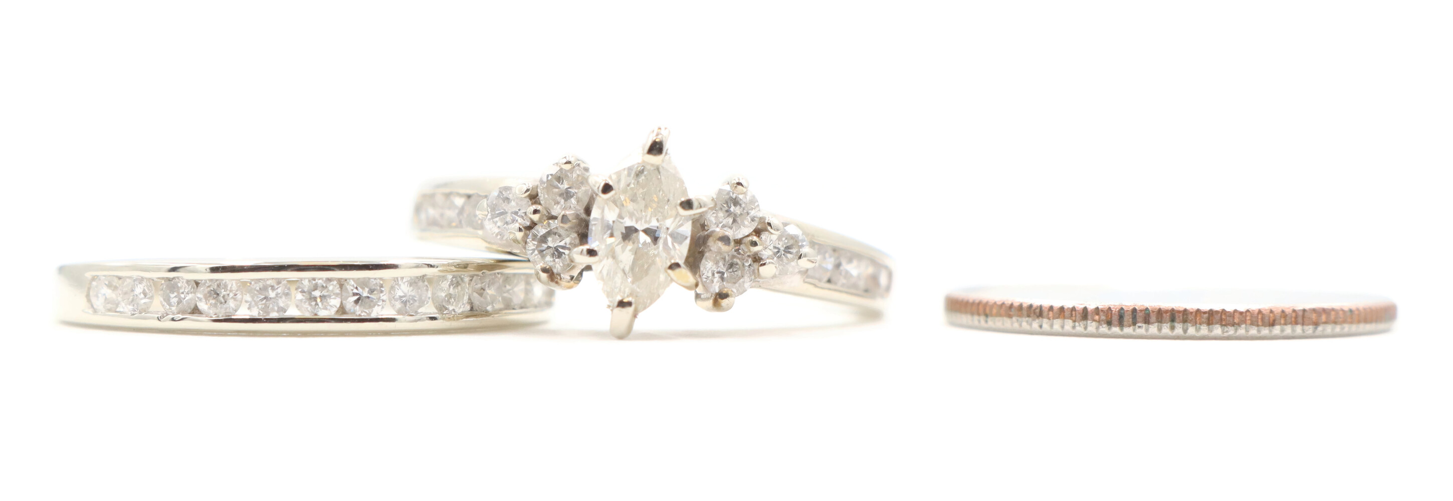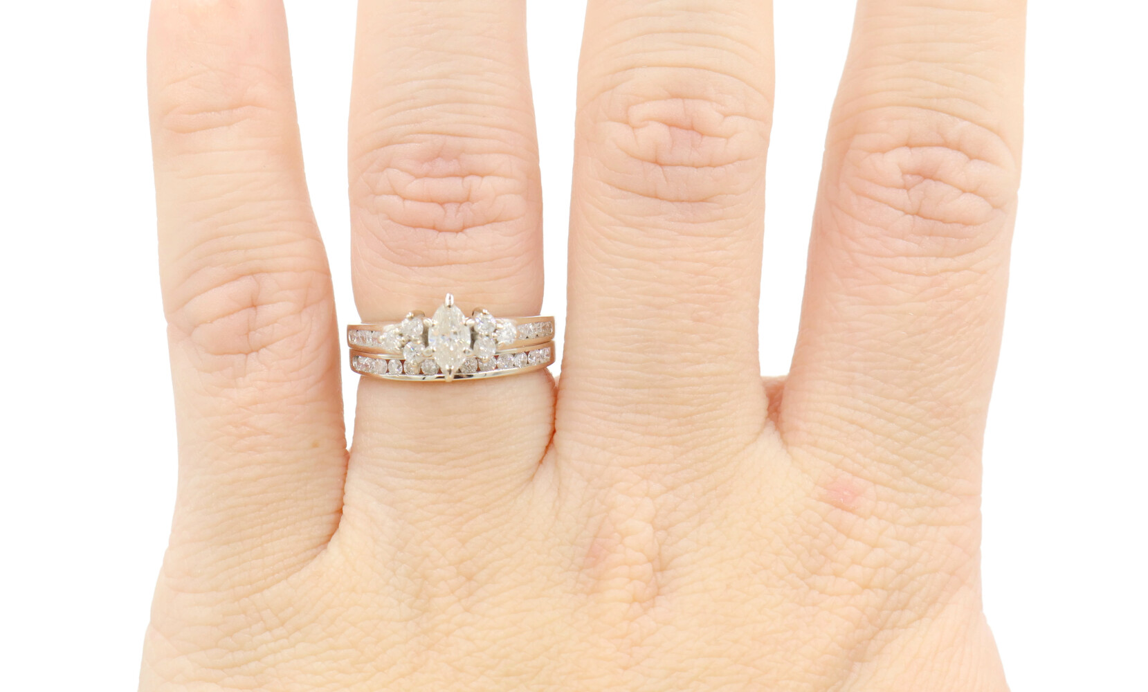 0.91 ctw Marquise and Round Diamond 14KT White Gold Estate Wedding Ring Set 4.5g | USA Pawn