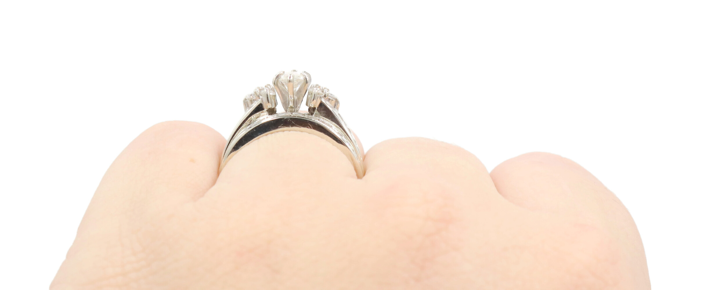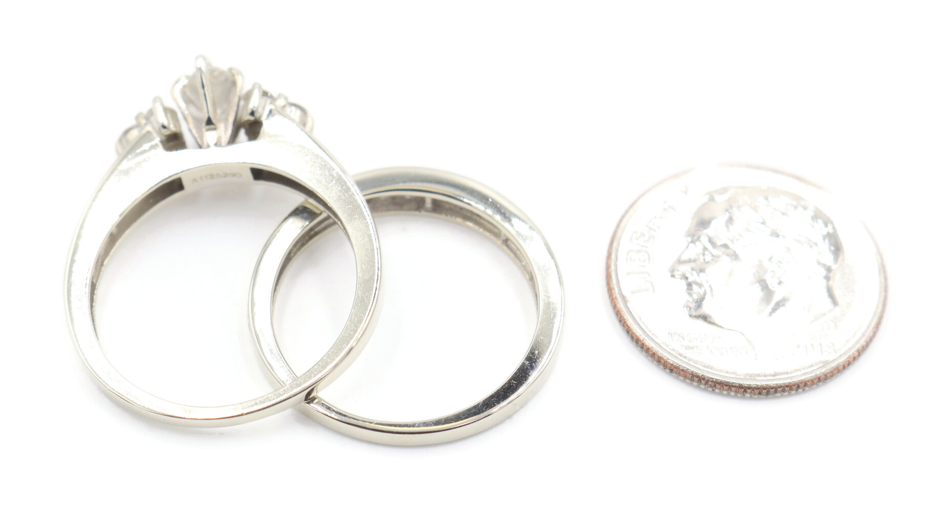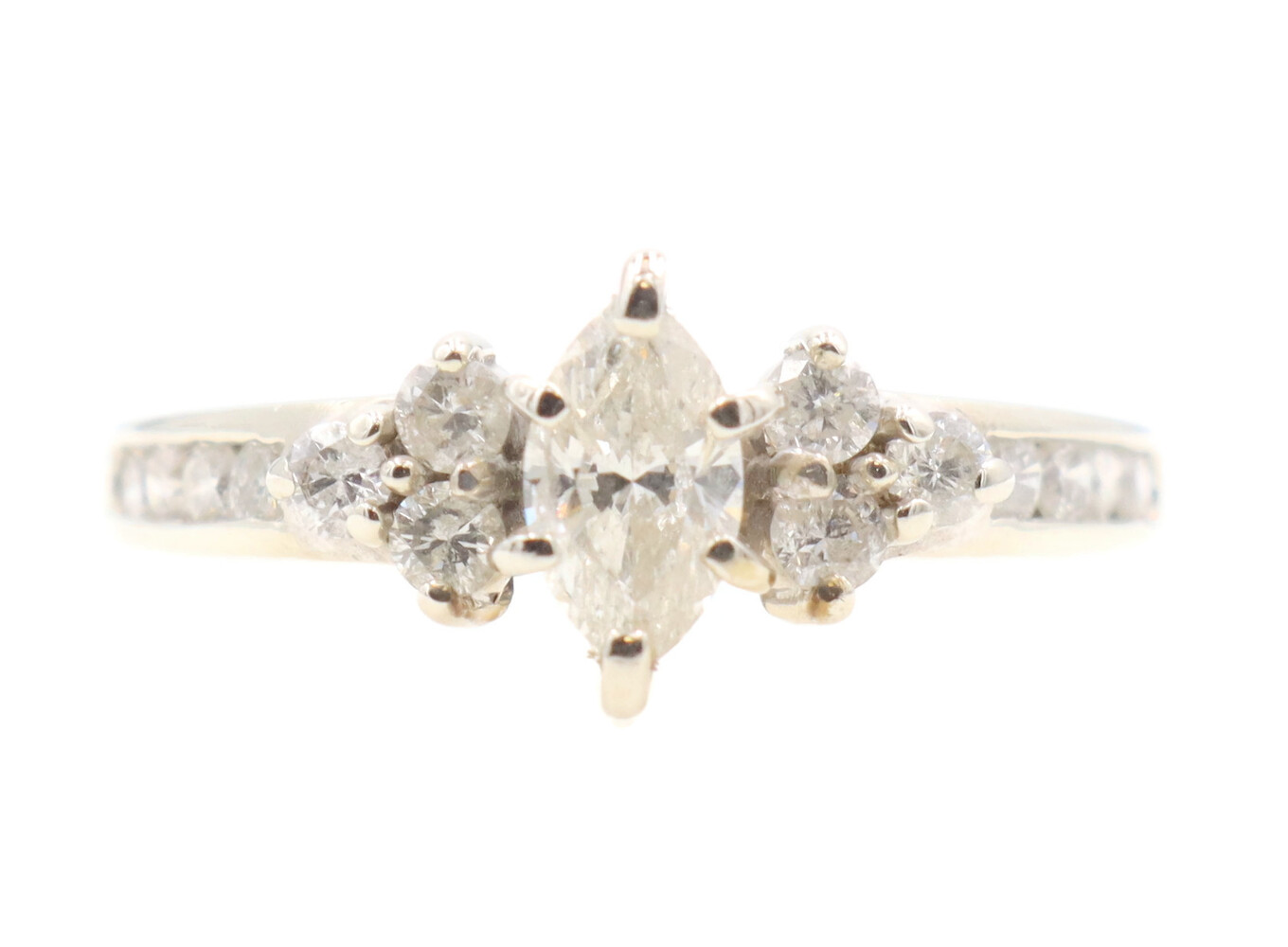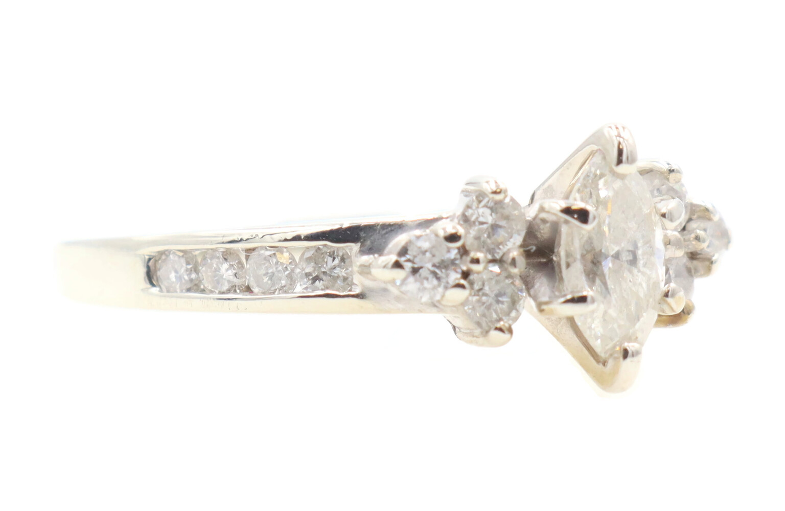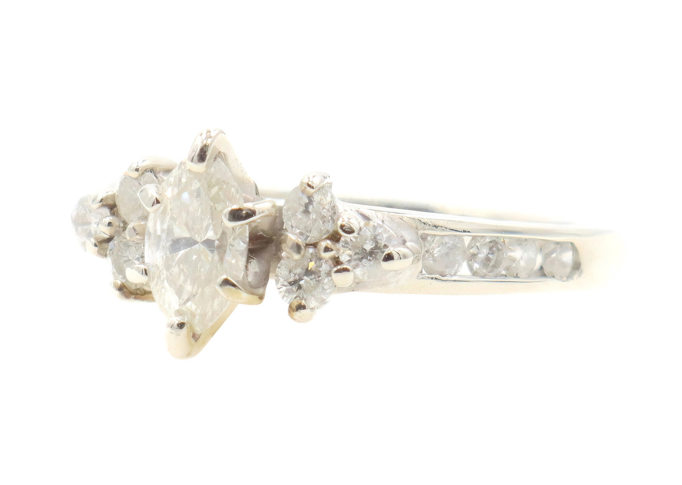 0.91 ctw Marquise and Round Diamond 14KT White Gold Estate Wedding Ring Set 4.5g | USA Pawn