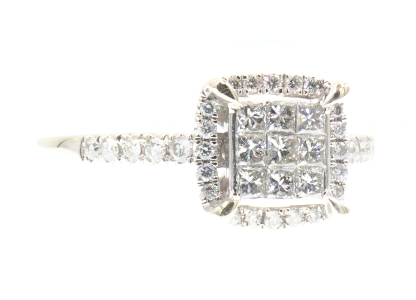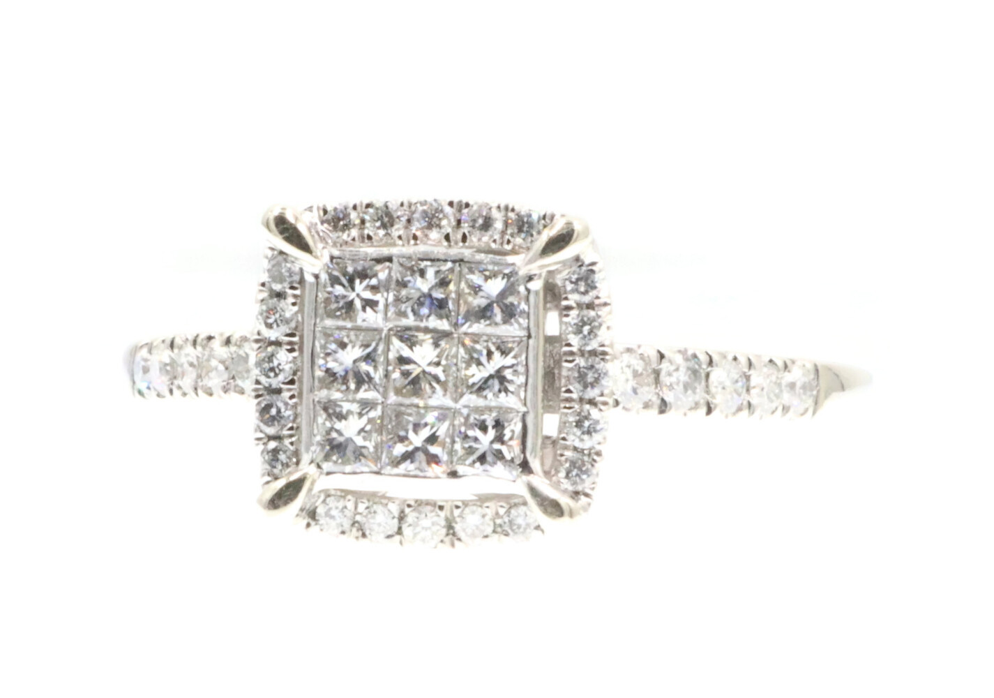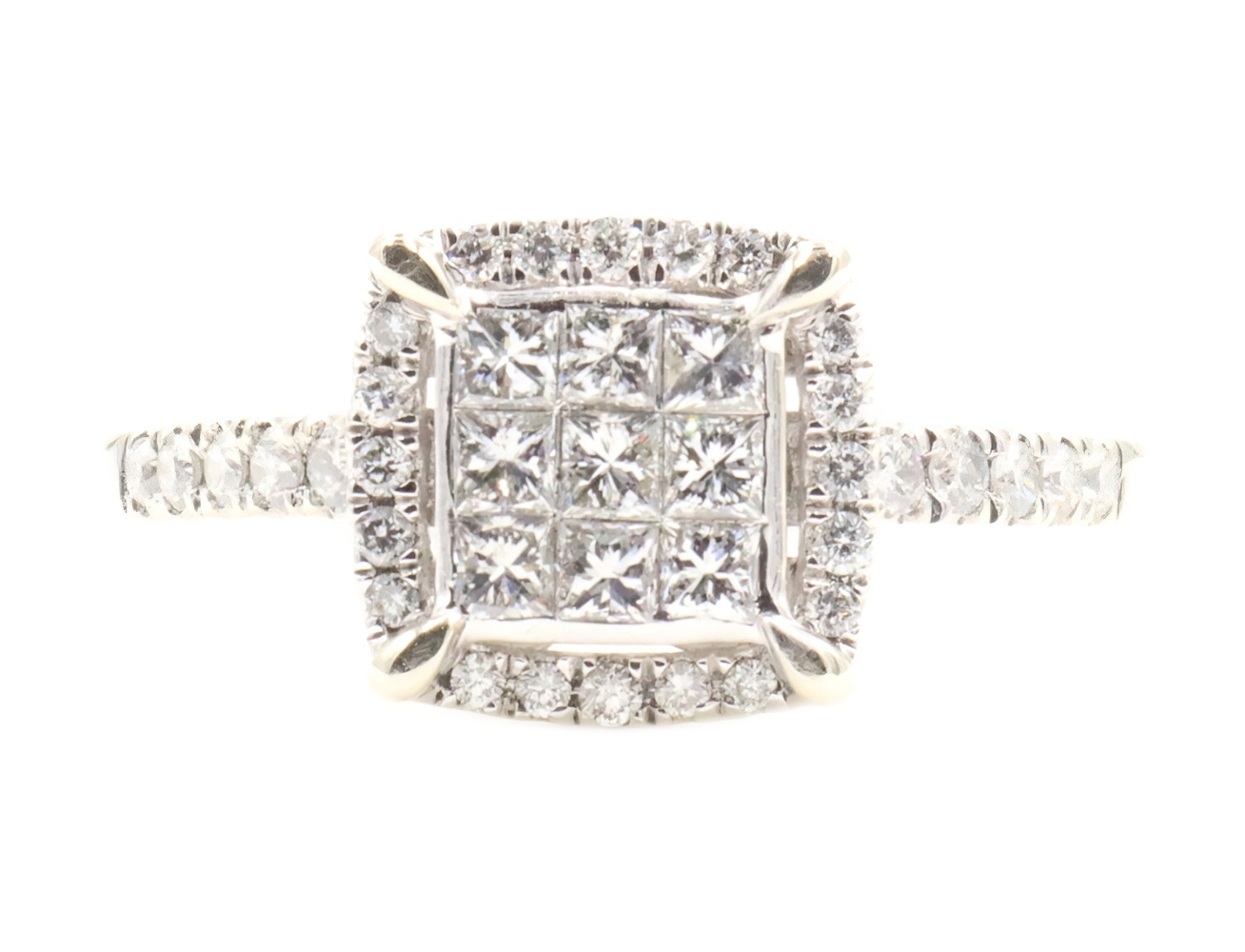 0.94 Ctw Princess & Round Diamond 14KT White Gold Square Halo Engagement Ring | USA Pawn