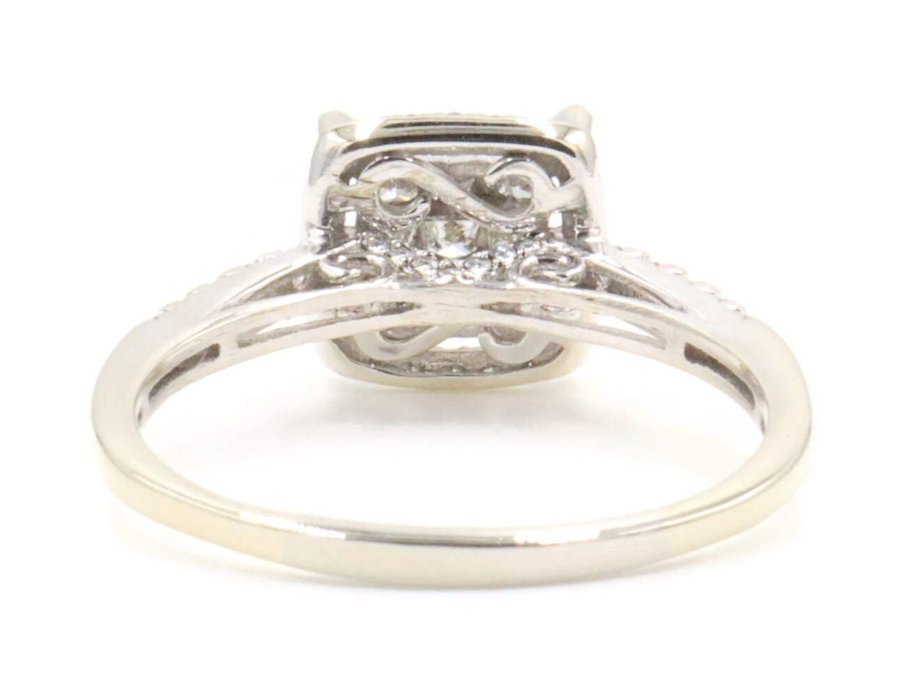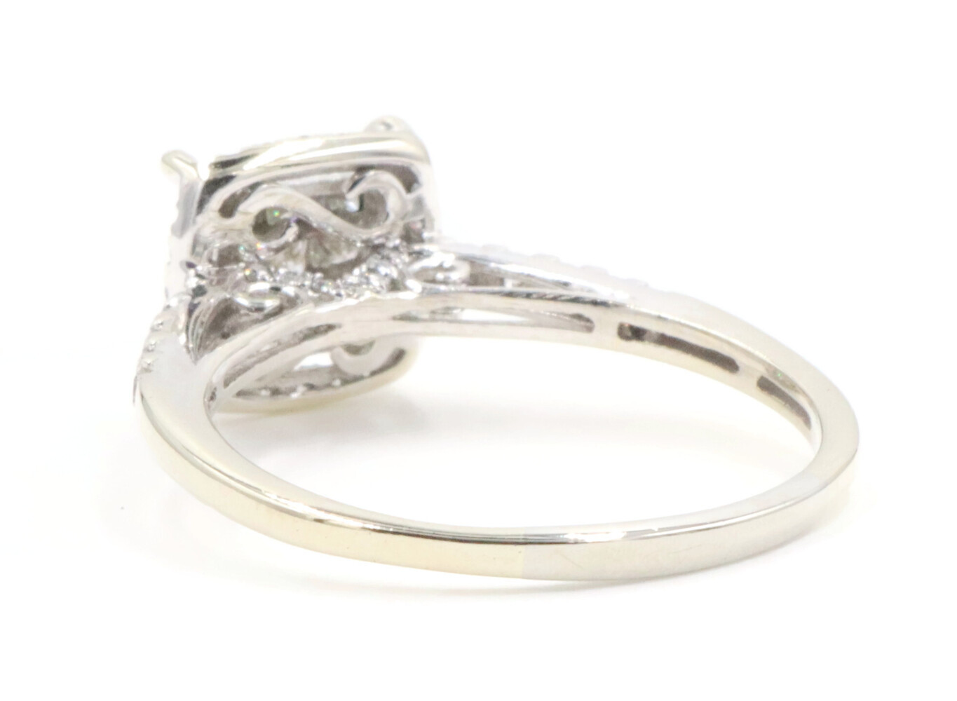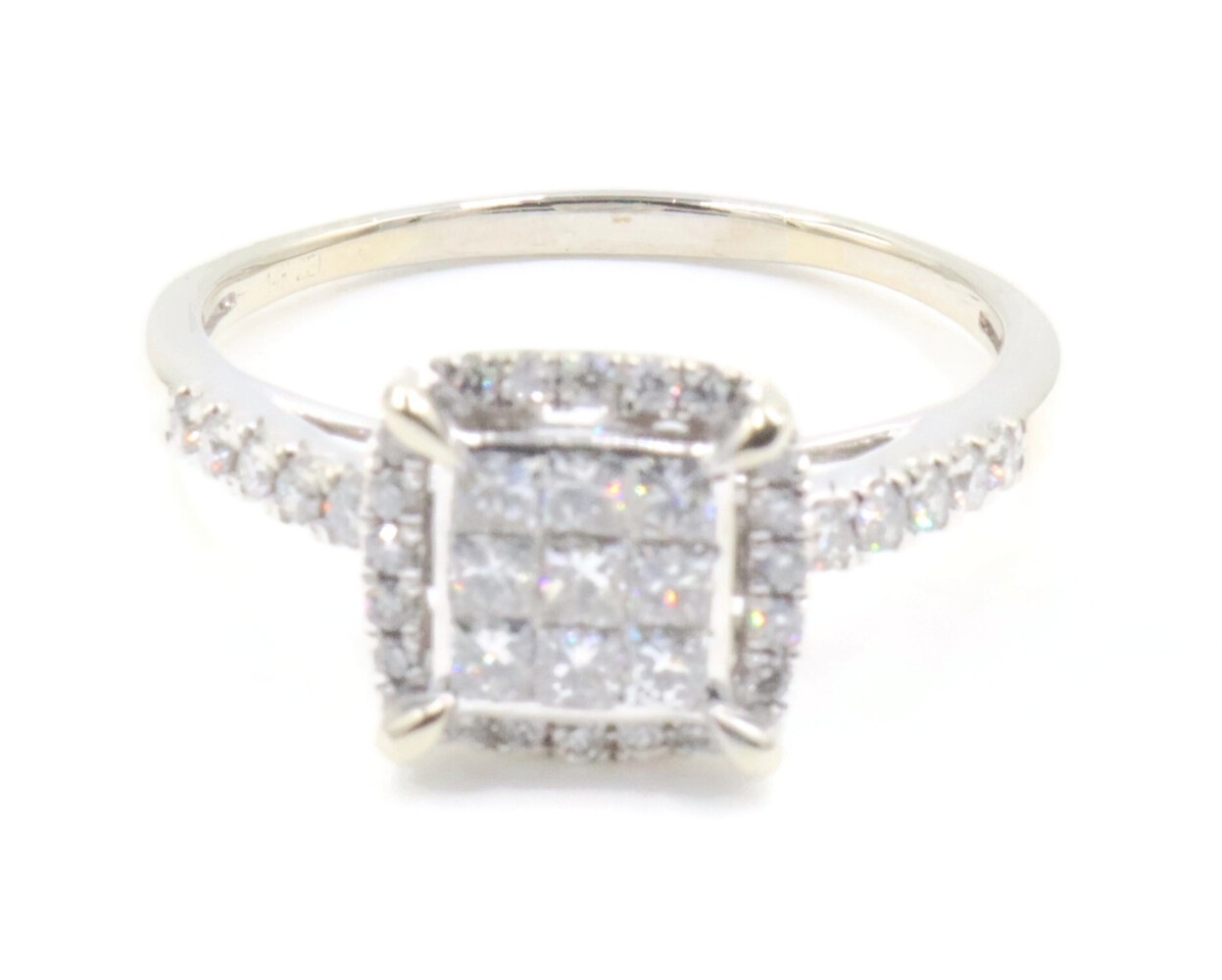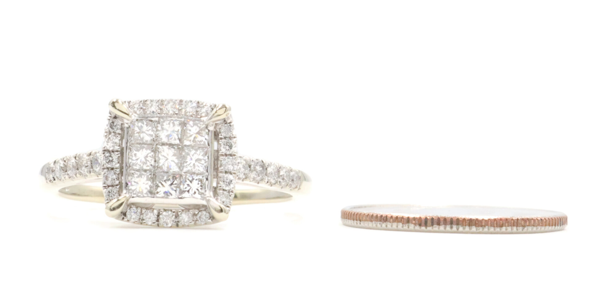 0.94 Ctw Princess & Round Diamond 14KT White Gold Square Halo Engagement Ring | USA Pawn
