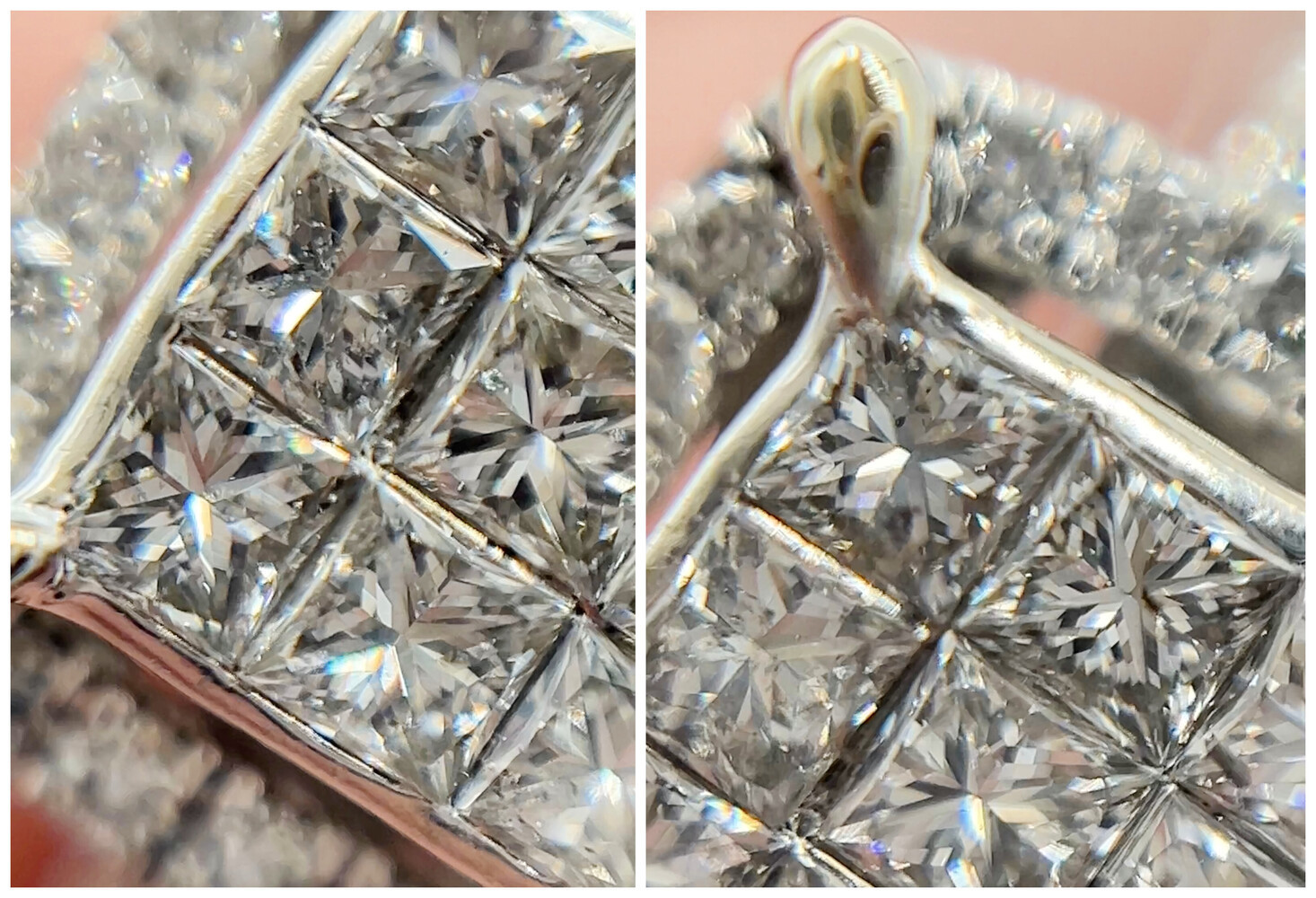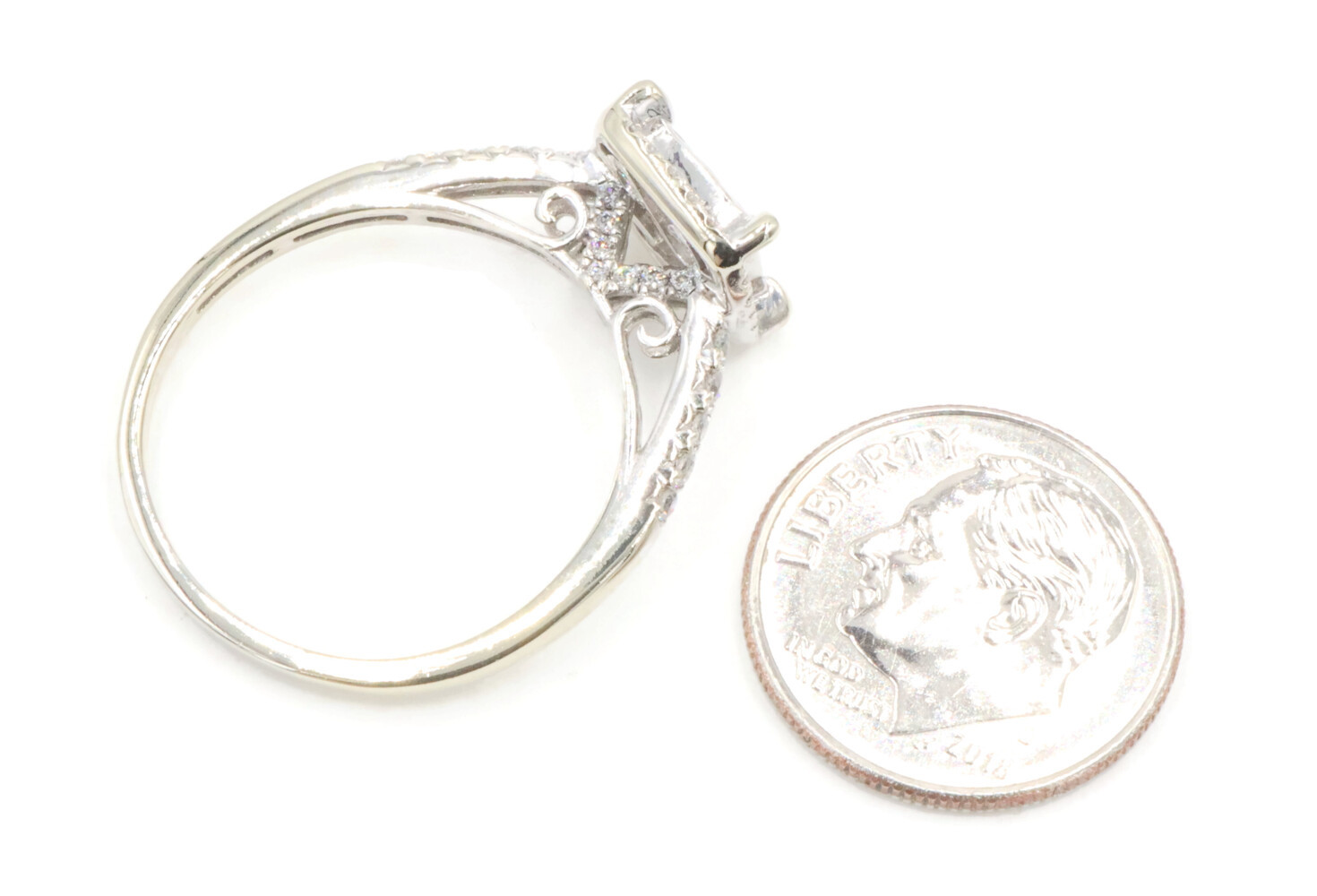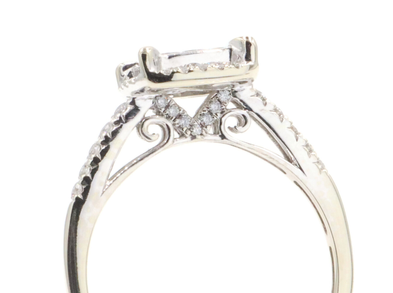0.94 Ctw Princess & Round Diamond 14KT White Gold Square Halo Engagement Ring. This ring is a size 9 1/4.