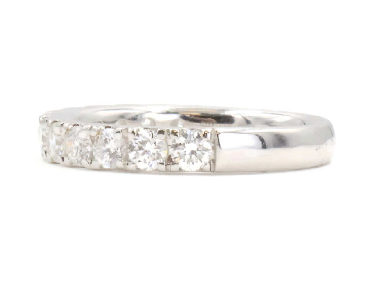 0.95 ctw Round Cut Lab Grown Diamond 14KT White Gold 3.1mm 12 Stone Band Ring. This ring is a size 7.
