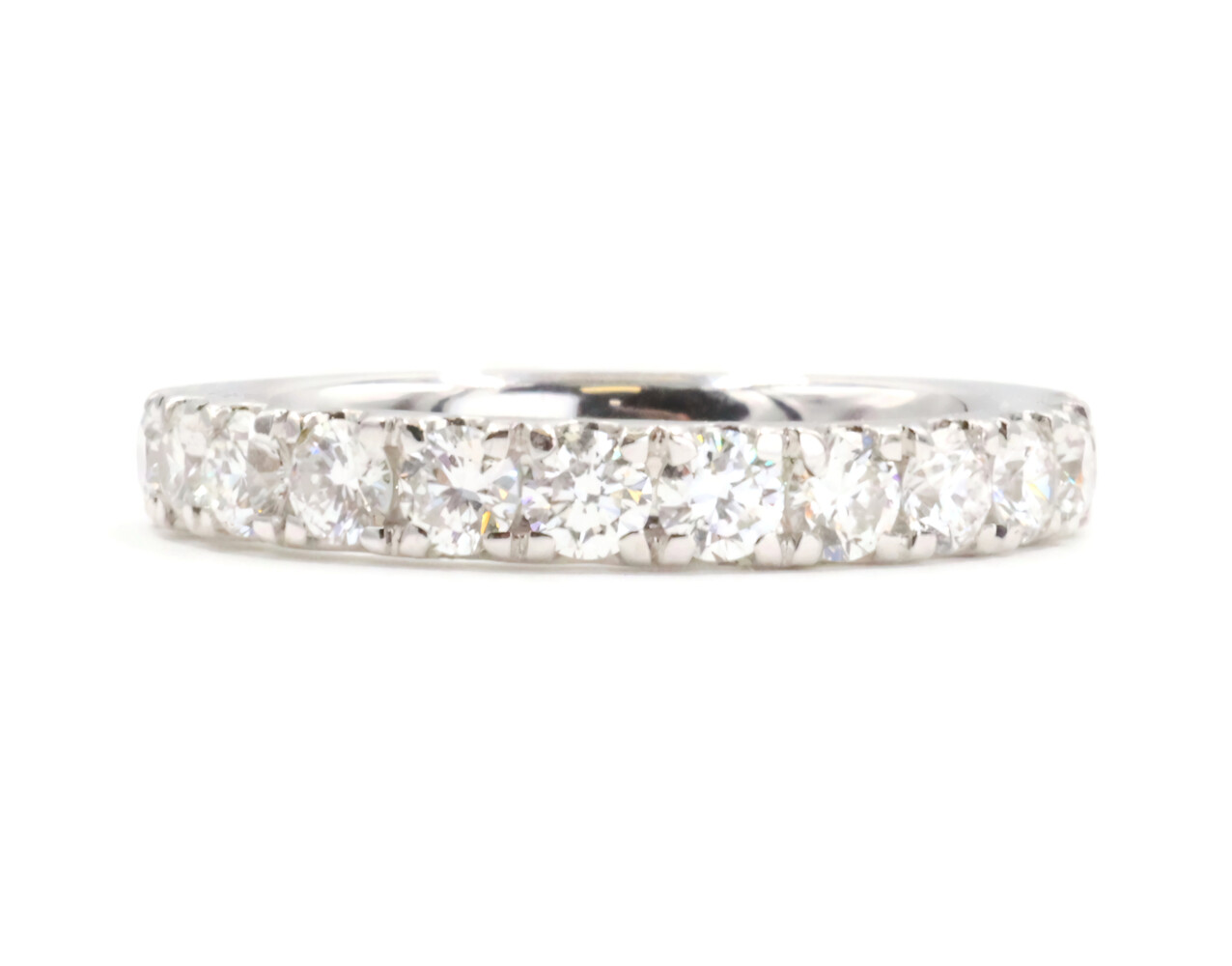 0.95 ctw Round Cut Lab Grown Diamond 14KT White Gold 3.1mm 12 Stone Band Ring | USA Pawn