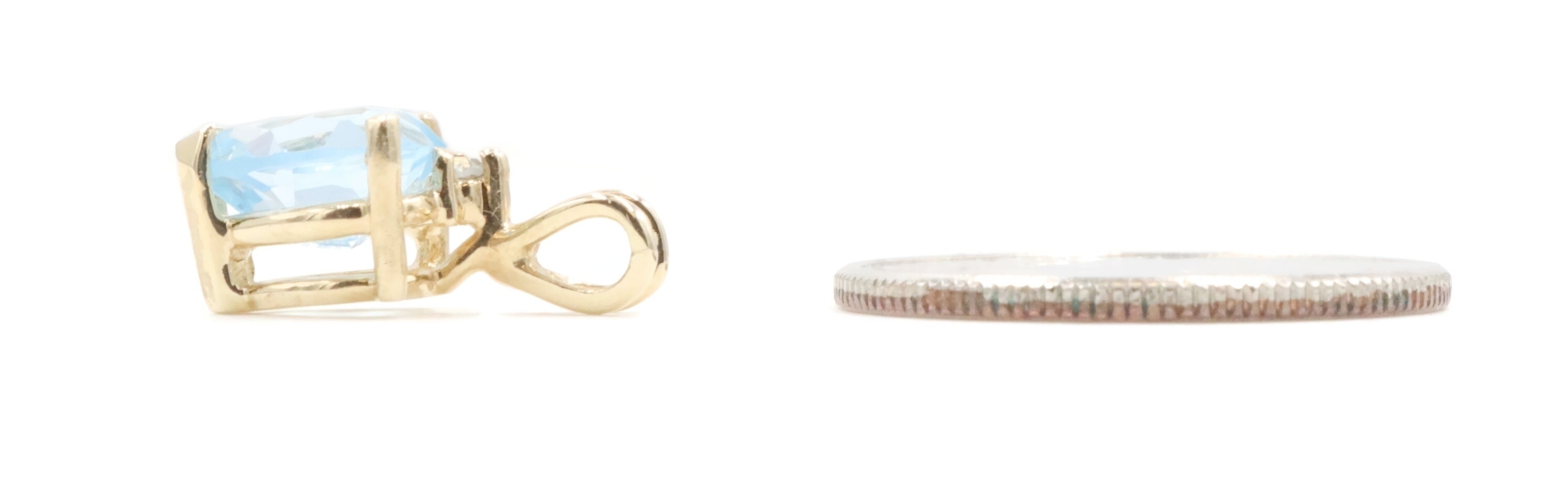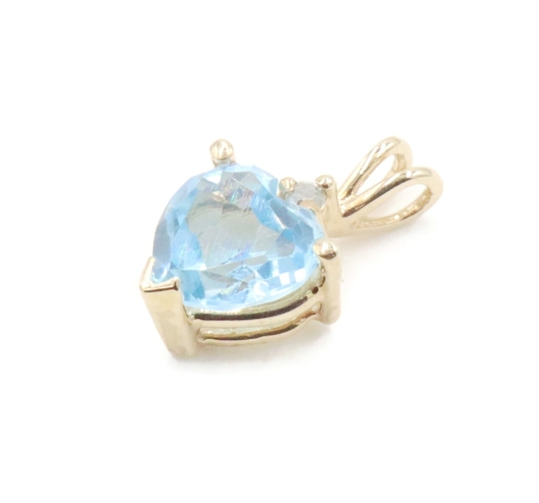 1.10 Ct Heart Cut Blue Topaz Gemstone & Diamond Accent 10KT Gold 13.9mm Pendant. This pendant is approximately 13.9mm in length (including the bail) and 7.9mm in width.