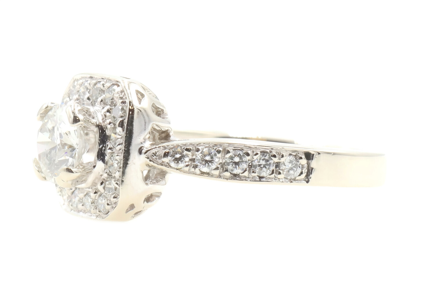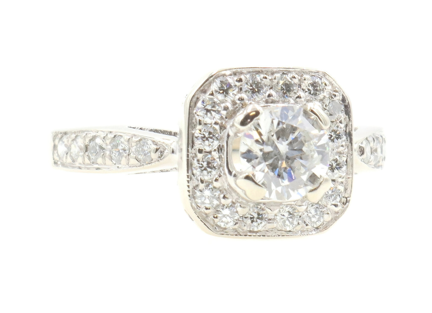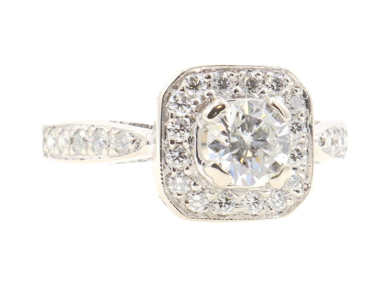 1.15 ctw Princess & Round Diamond 14KT White Gold Square Halo Engagement Ring | USA Pawn