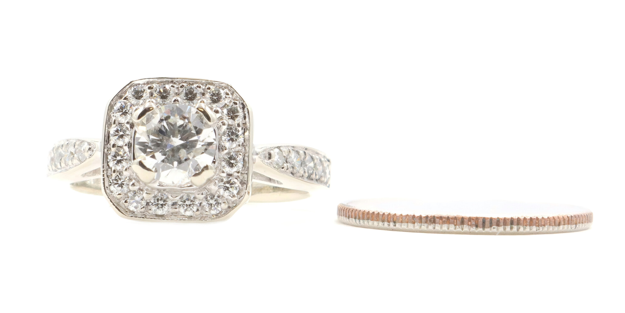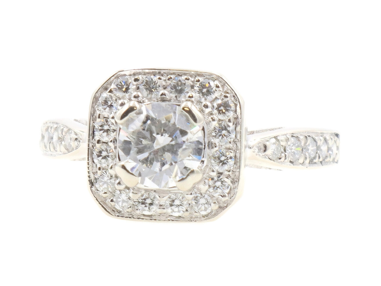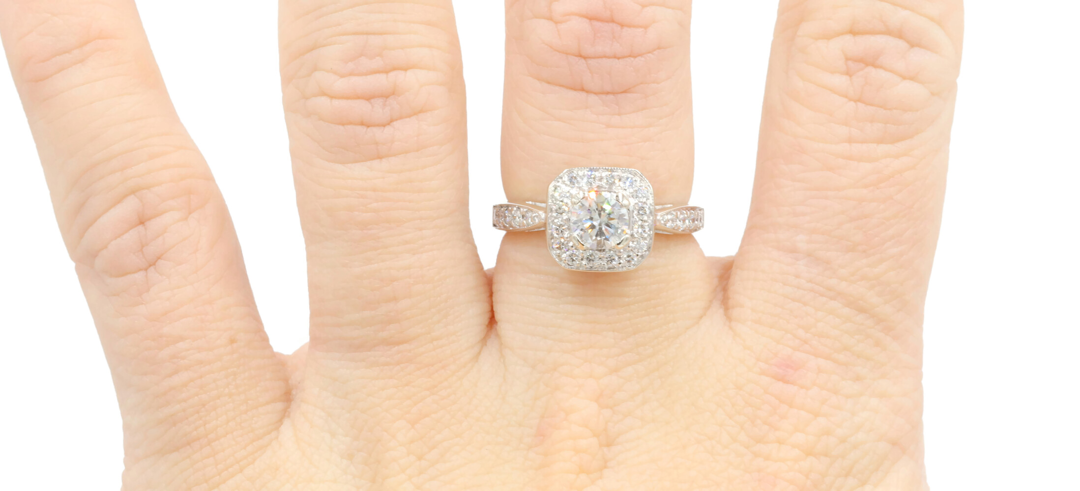 1.15 ctw Princess & Round Diamond 14KT White Gold Square Halo Engagement Ring | USA Pawn