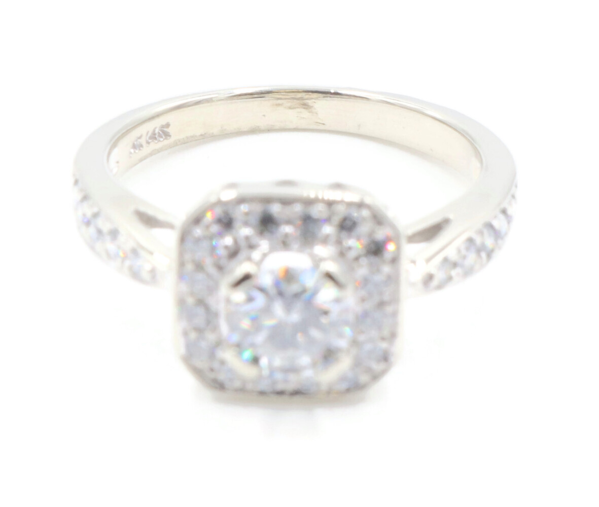 1.15 ctw Princess & Round Diamond 14KT White Gold Square Halo Engagement Ring. This ring is a size 6.5.